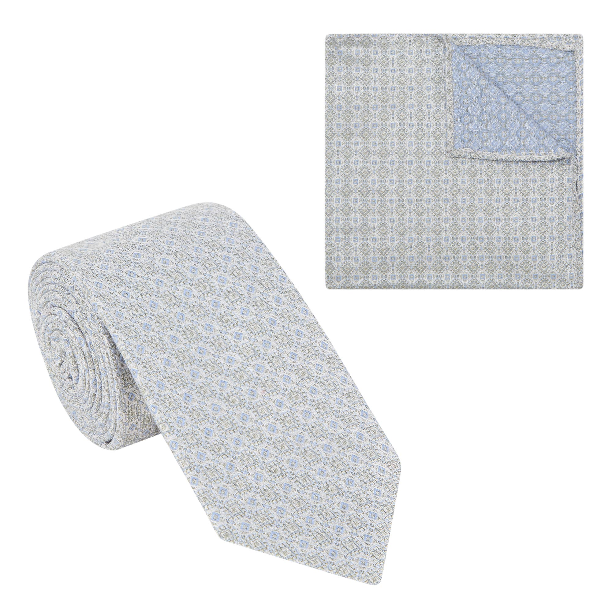 REMUS UOMO Grid Pocket Square & Tie