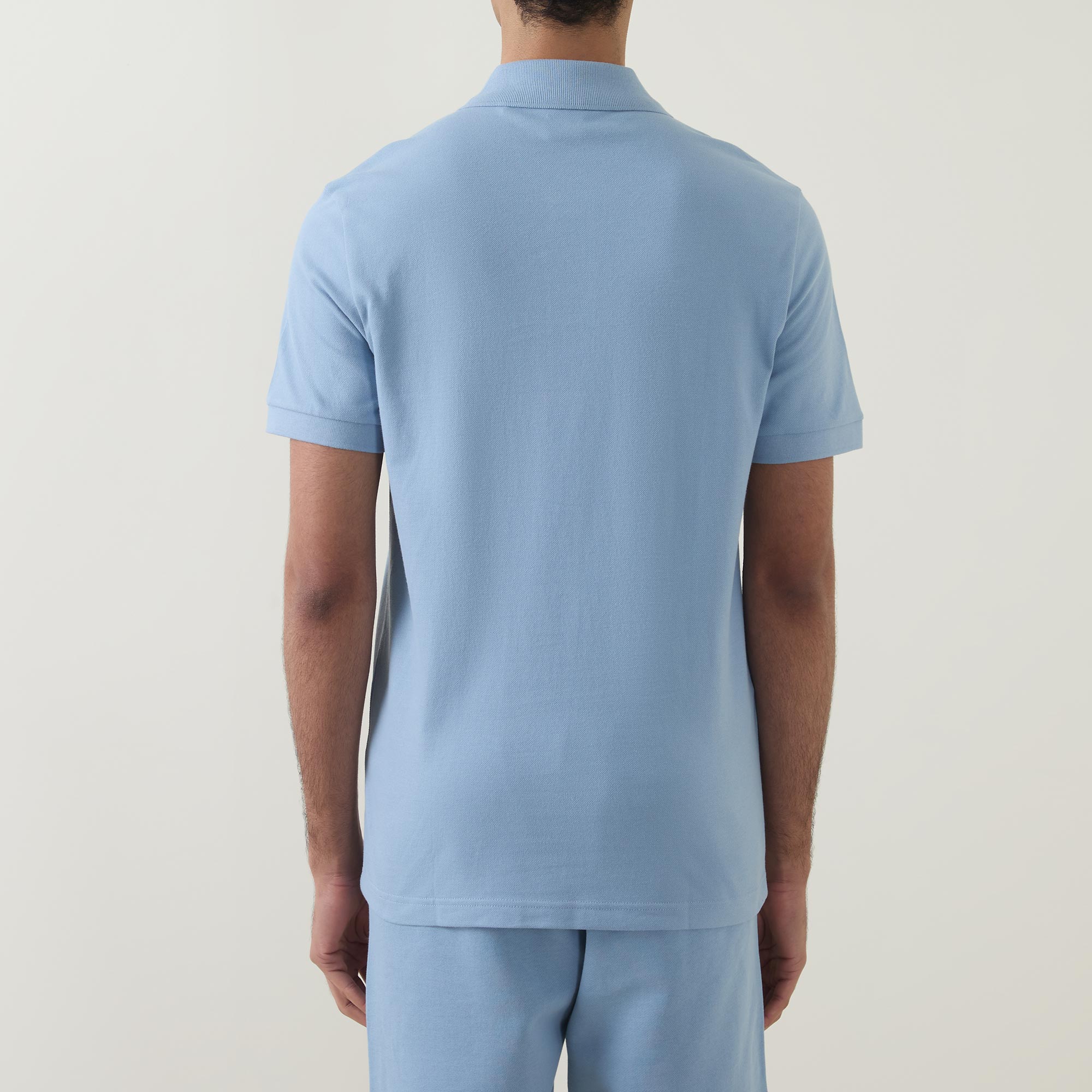 - Polo collar, short sleeves, straight hemline, button fastenings, logo patch
