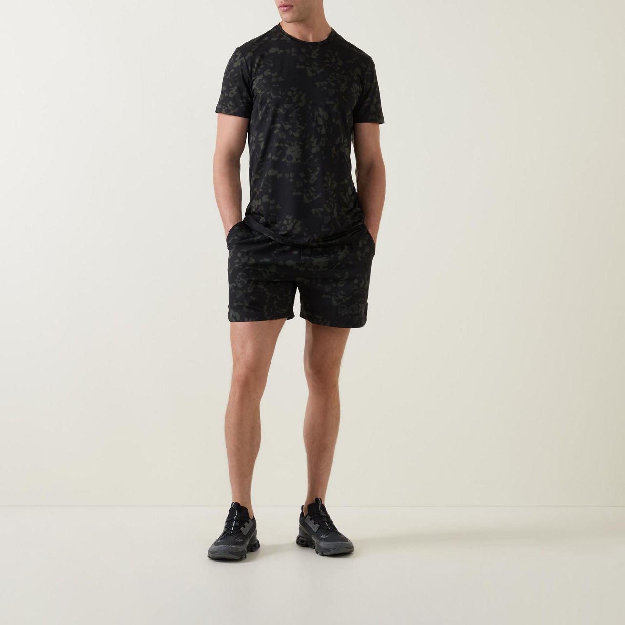 - Mid-rise, straight-leg, branded elasticated waistband, adjustable drawstring fastening, two side slit pockets, side slit detailing, tonal logo detail, all-over camo print, quick-drying, breathable material, smooth seams, recycled material, suitable for sports