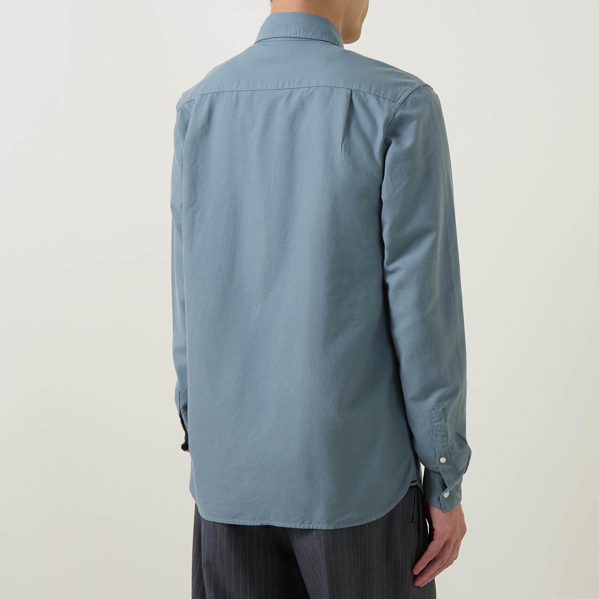 • Button-down point collar, long sleeves, buttoned cuffs, front placket, one chest patch pocket, curved hem, contrast Laurel Wreath embroidery on the chest