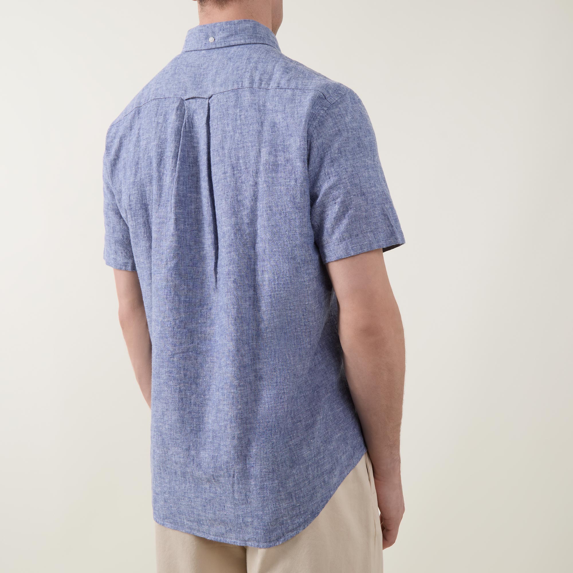 - Button down point collar, short sleeves, one chest patch pocket, front button fastening, curved hem, rear box pleat, locker loop, Shield logo embroidery on the chest, textured finish