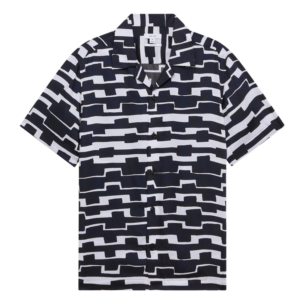 Add impact to your off-duty moments with the Oakland shirt from Reiss. Fashioned in a bold, abstract print, it works a cool silhouette with a Cuban collar and short sleeves. Style it open over a white t-shirt with chinos for a statement finish.
