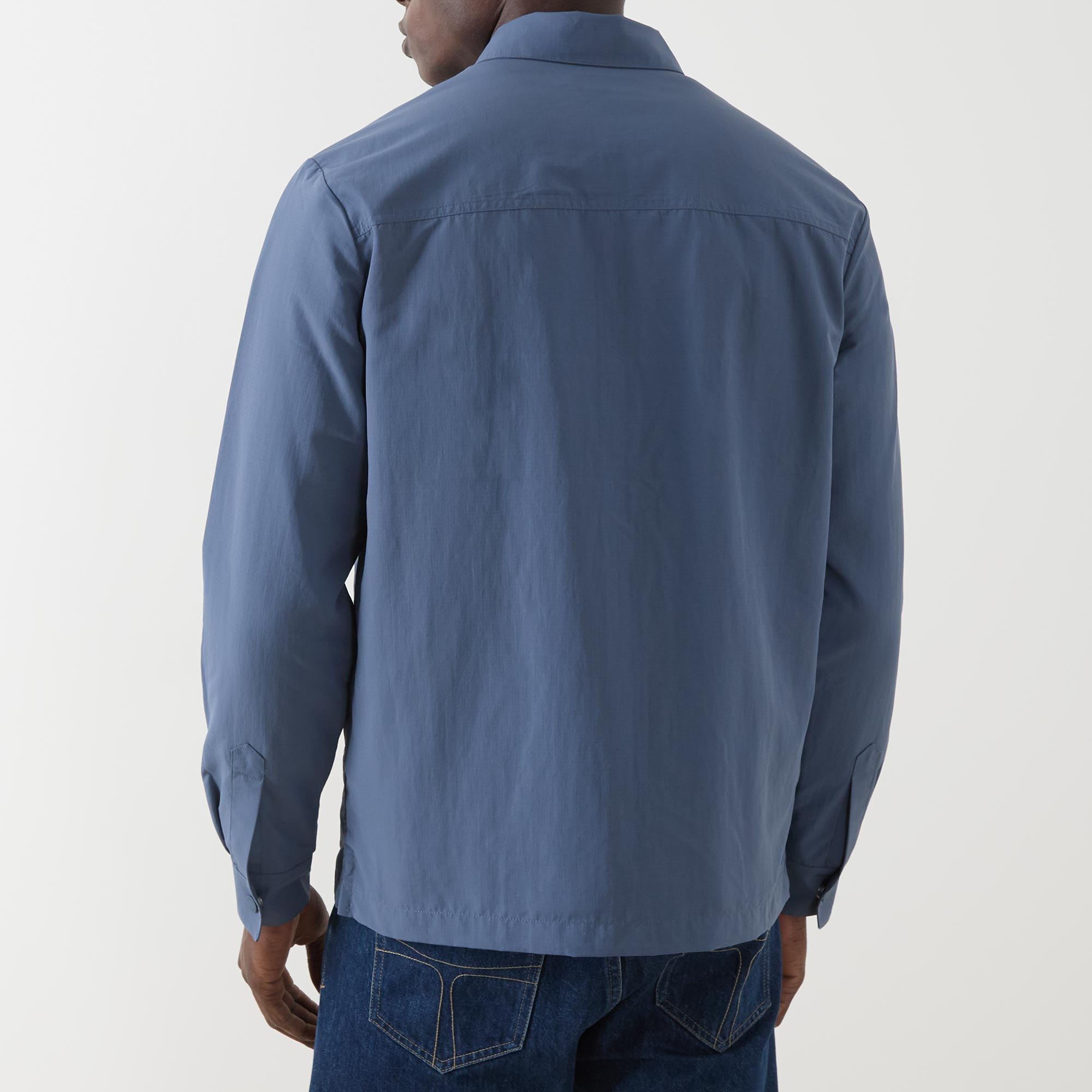 - Point collar, long sleeves, full zip-through fastening, chest patch pocket, logo embroidery, single-button cuffs, straight hemline, smooth fabric