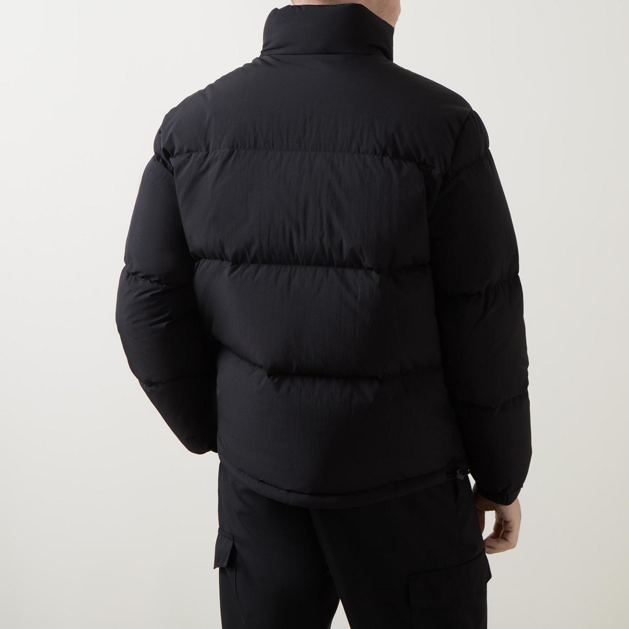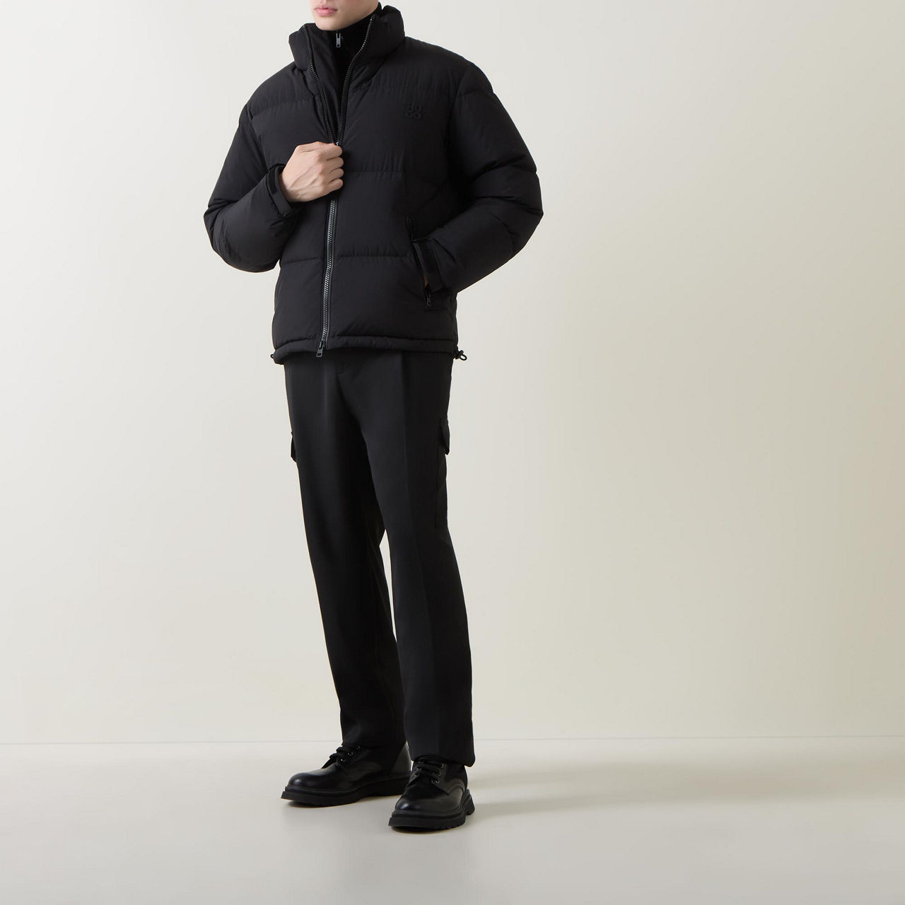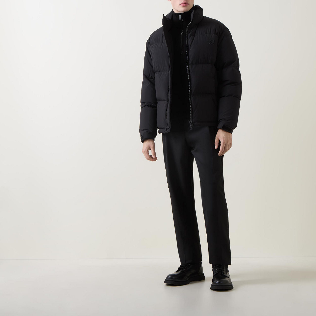 - Padded, quilted, stand collar, embroidered logo, zip fastening, two side zip pockets