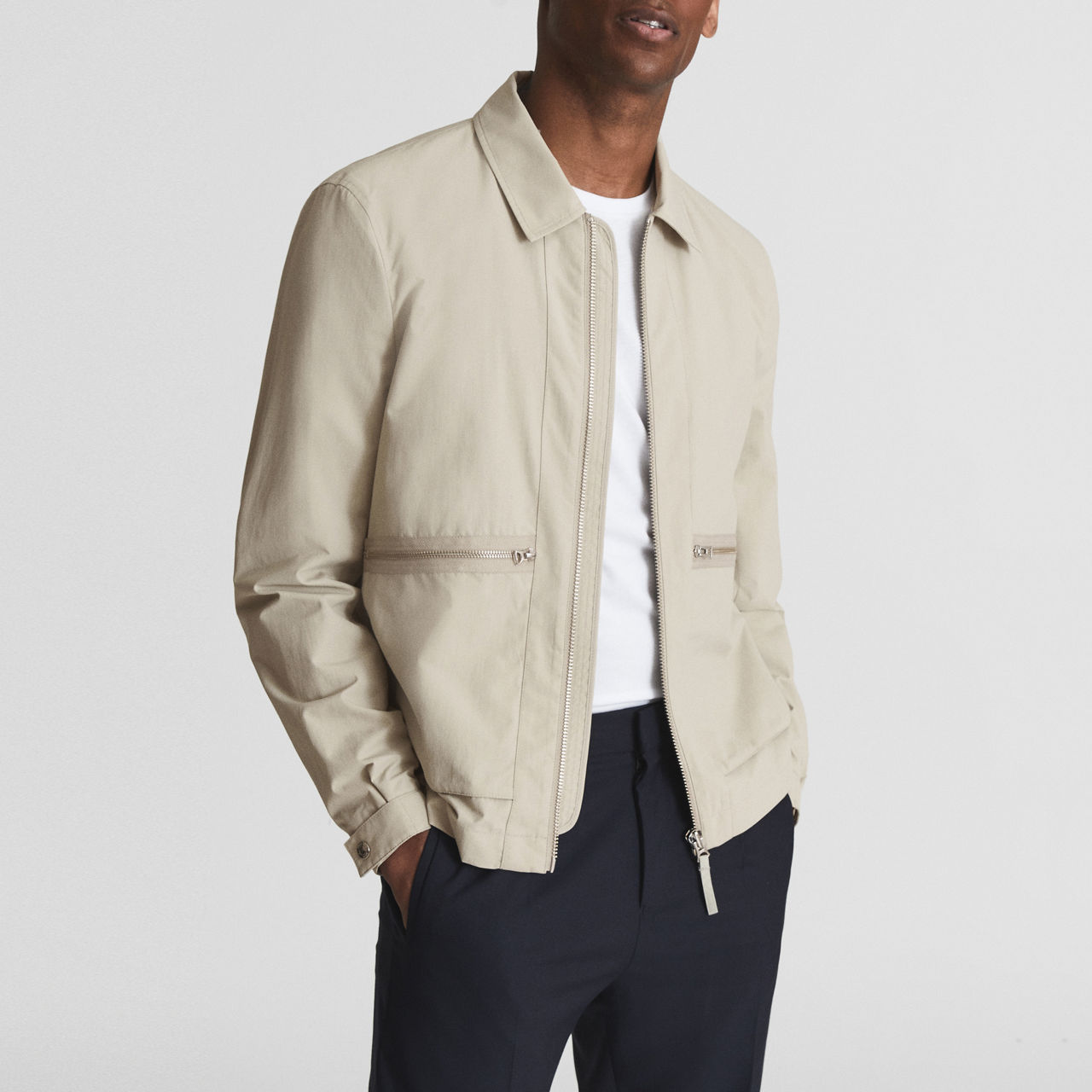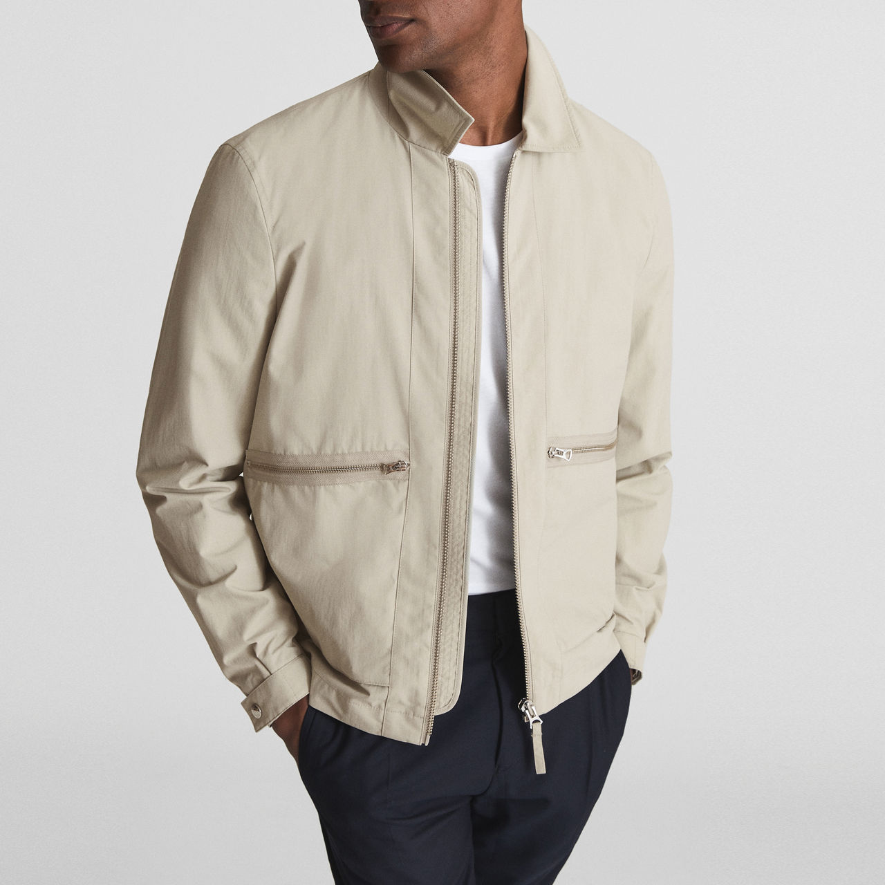 A sharp casual jacket that is perfect for cooler days, the Fival from Reiss works a box Harrington style silhouette with contemporary style zip pockets to each hip. In a neutral hue, team with everything from cotton t-shirts to graphic sweatshirts for a weekend-ready look.