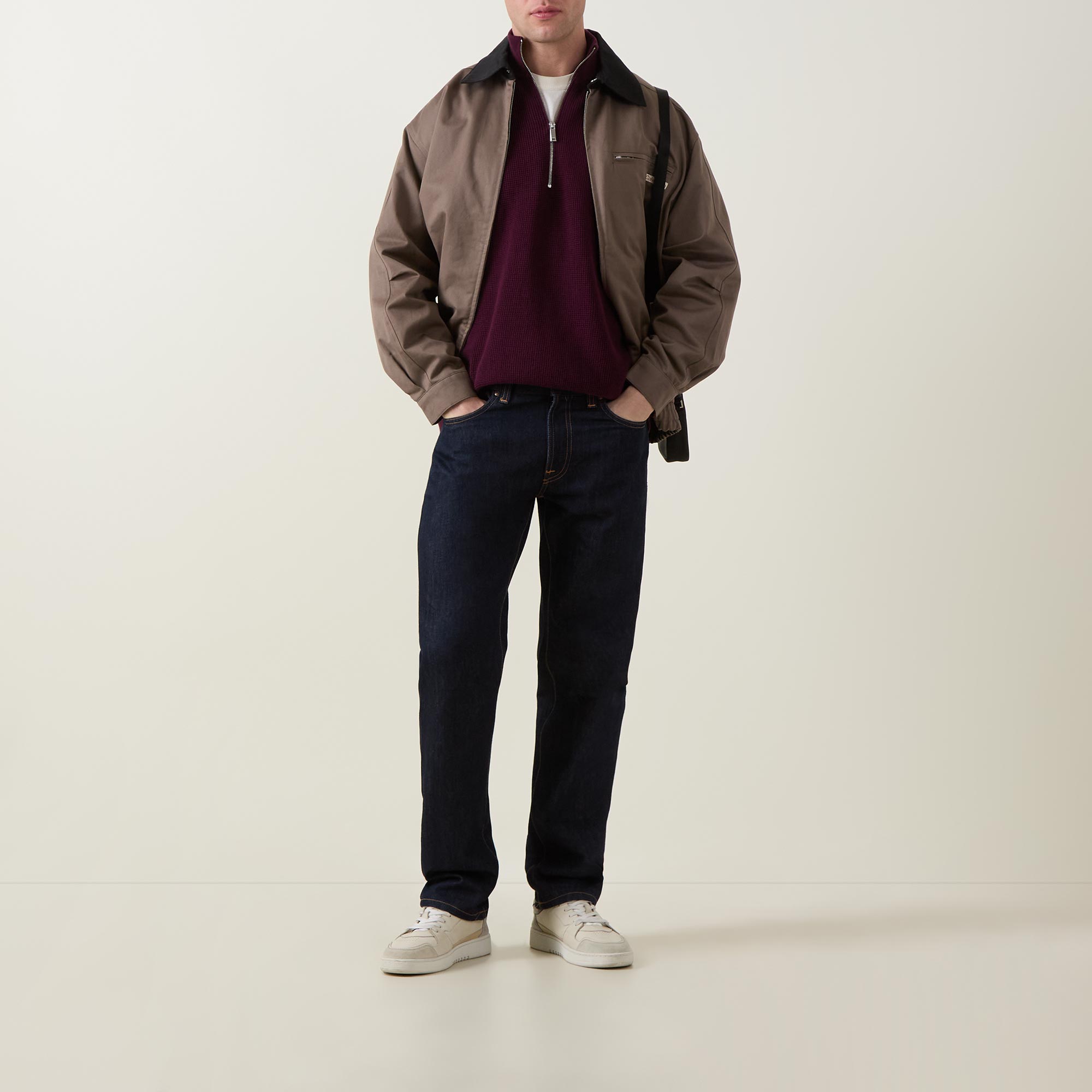 - Long sleeves, half-zip fastening, funnel neckline, ribbed trims, straight hemline, logo patch