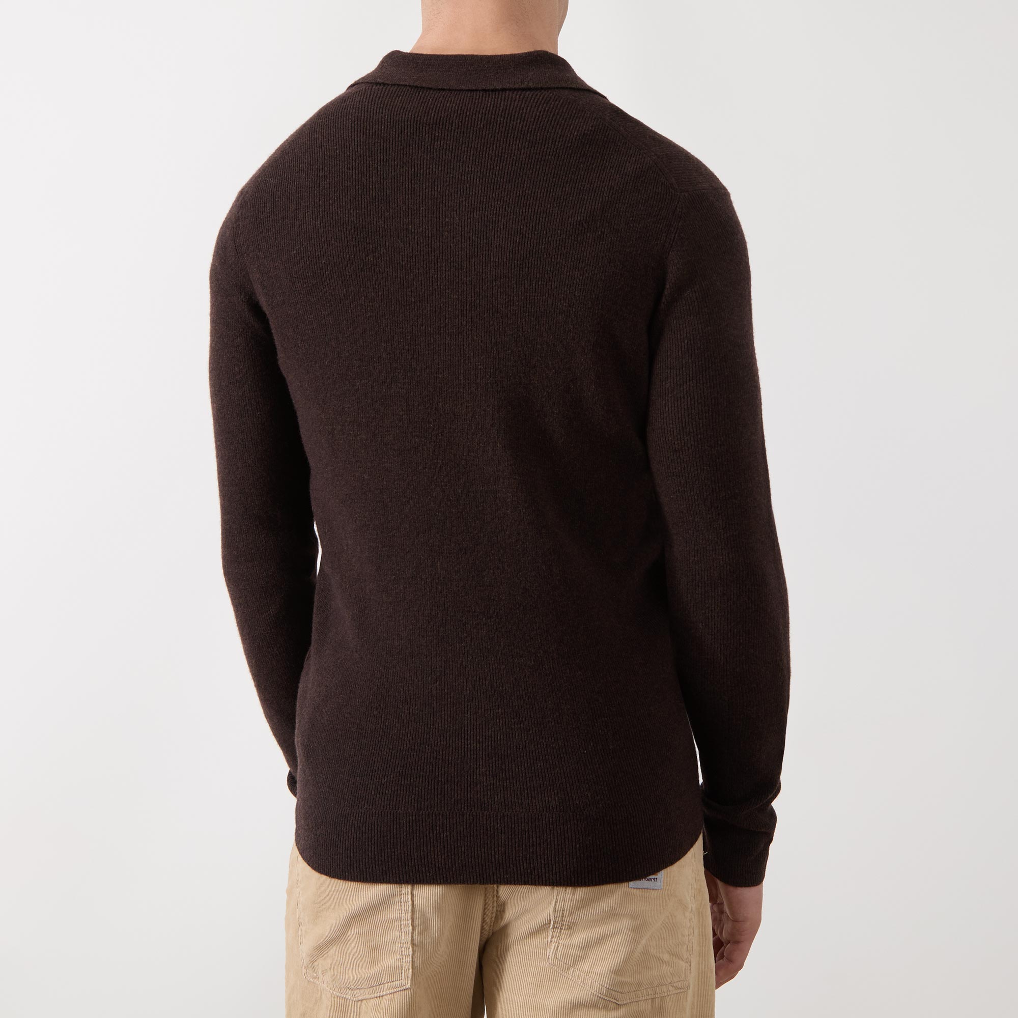 - Polo collar, two button placket, long sleeves, straight hem, Eagle logo detail on the chest, ribbed design, knit construction, soft finish