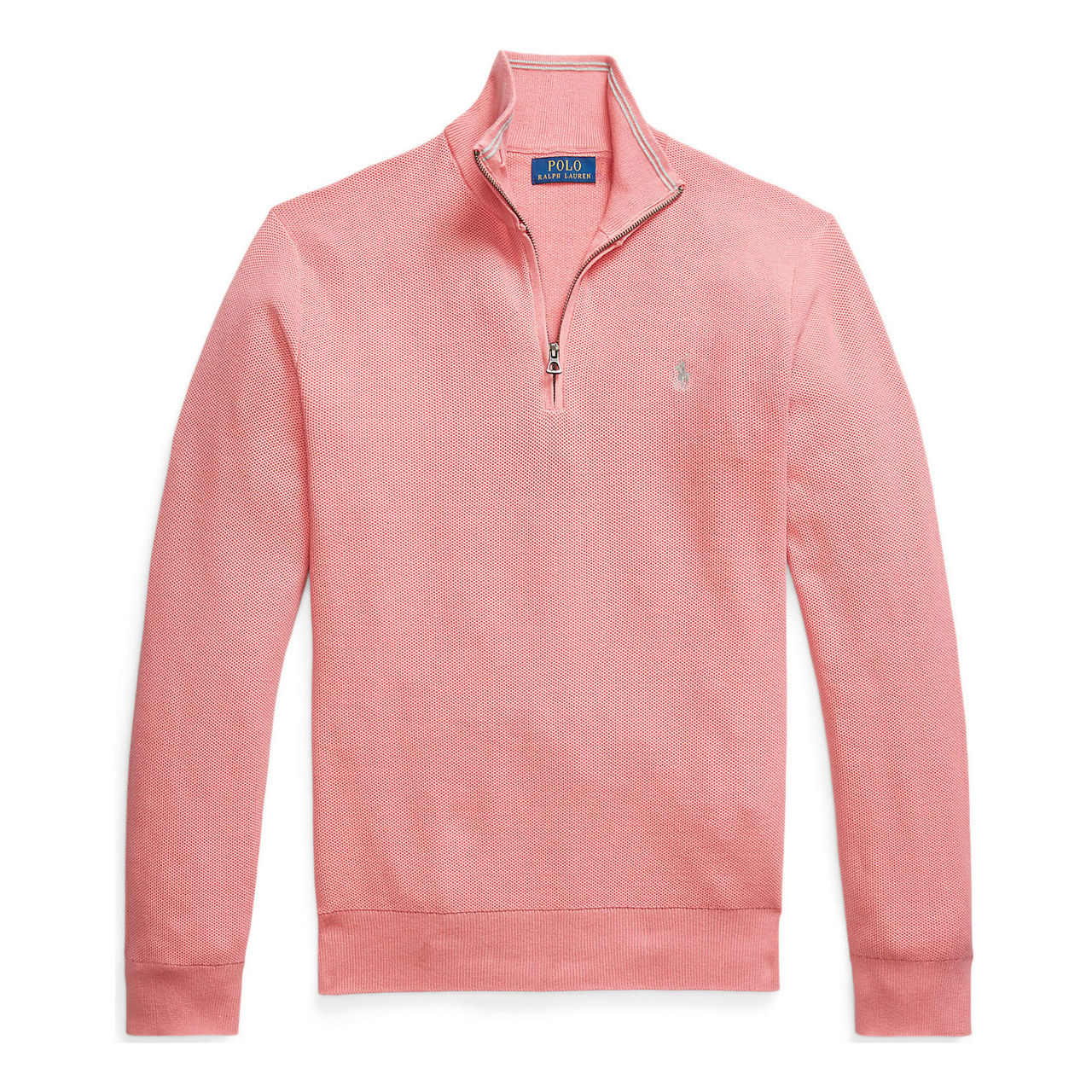 - Rib-knit mockneck, half-zip fastening, long sleeves with rib-knit cuffs, rib-knit hem, signature embroidered pony at the left chest
