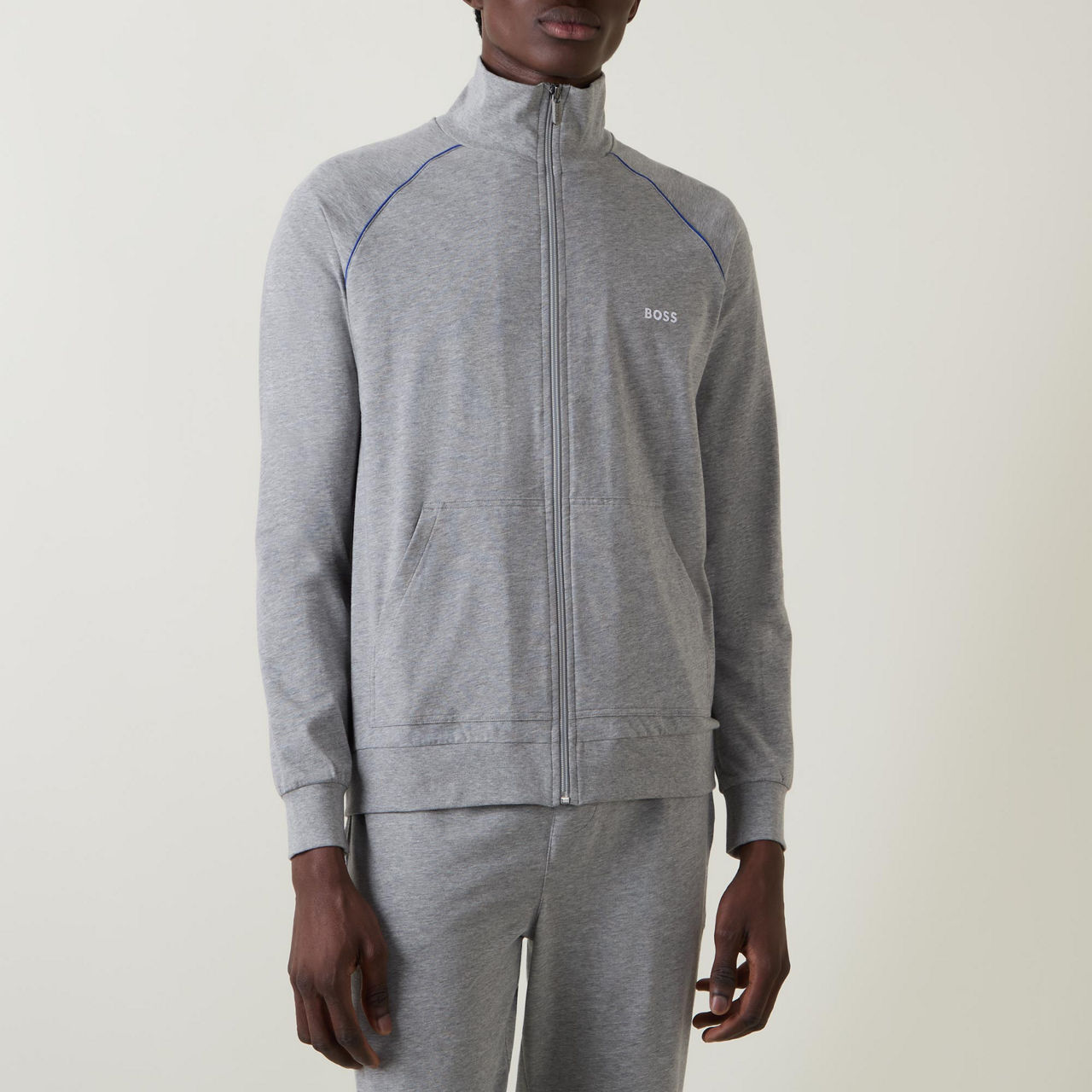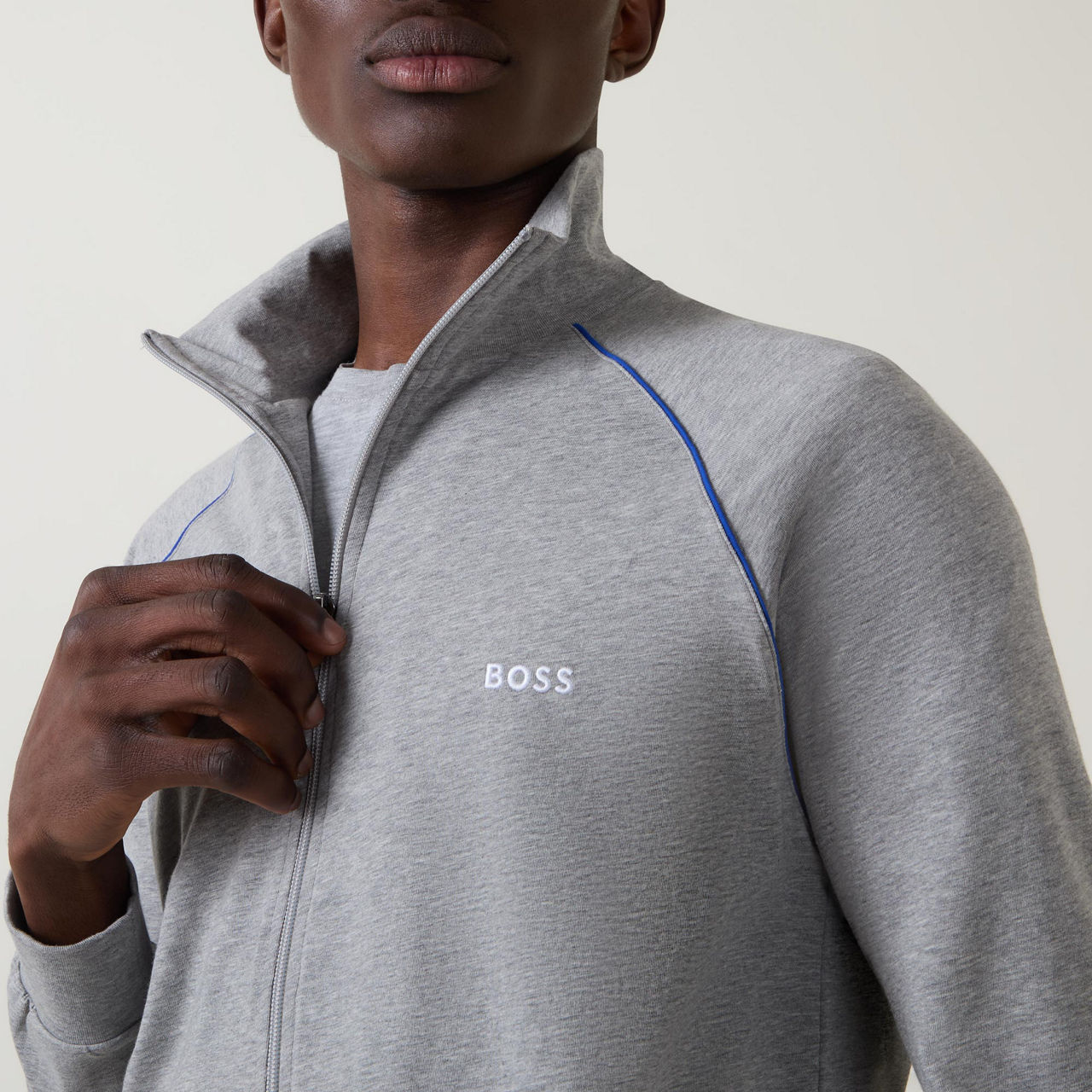 - Funnel neckline, long sleeves, ribbed trims, logo detail, zip fastening