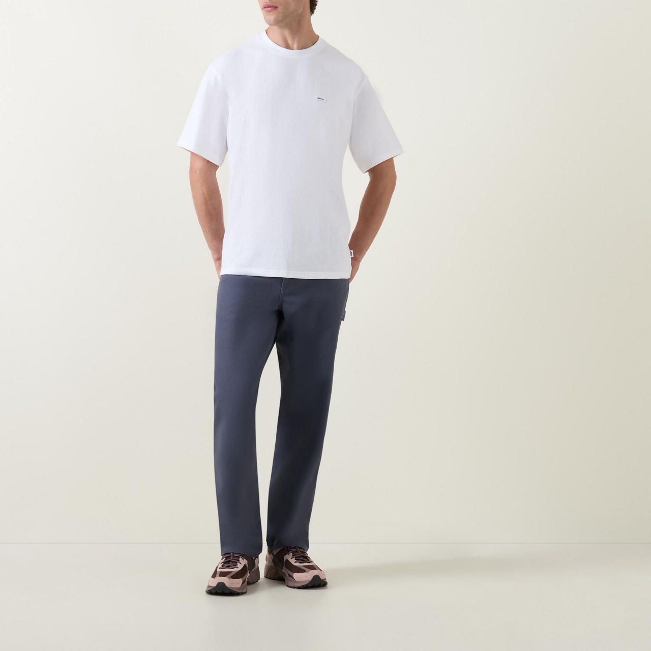 - Crew neck, dropped shoulders, short sleeves, straight hem, micro logo detail on the chest, logo tag at the hip, tonal stitch detailing, smooth finish