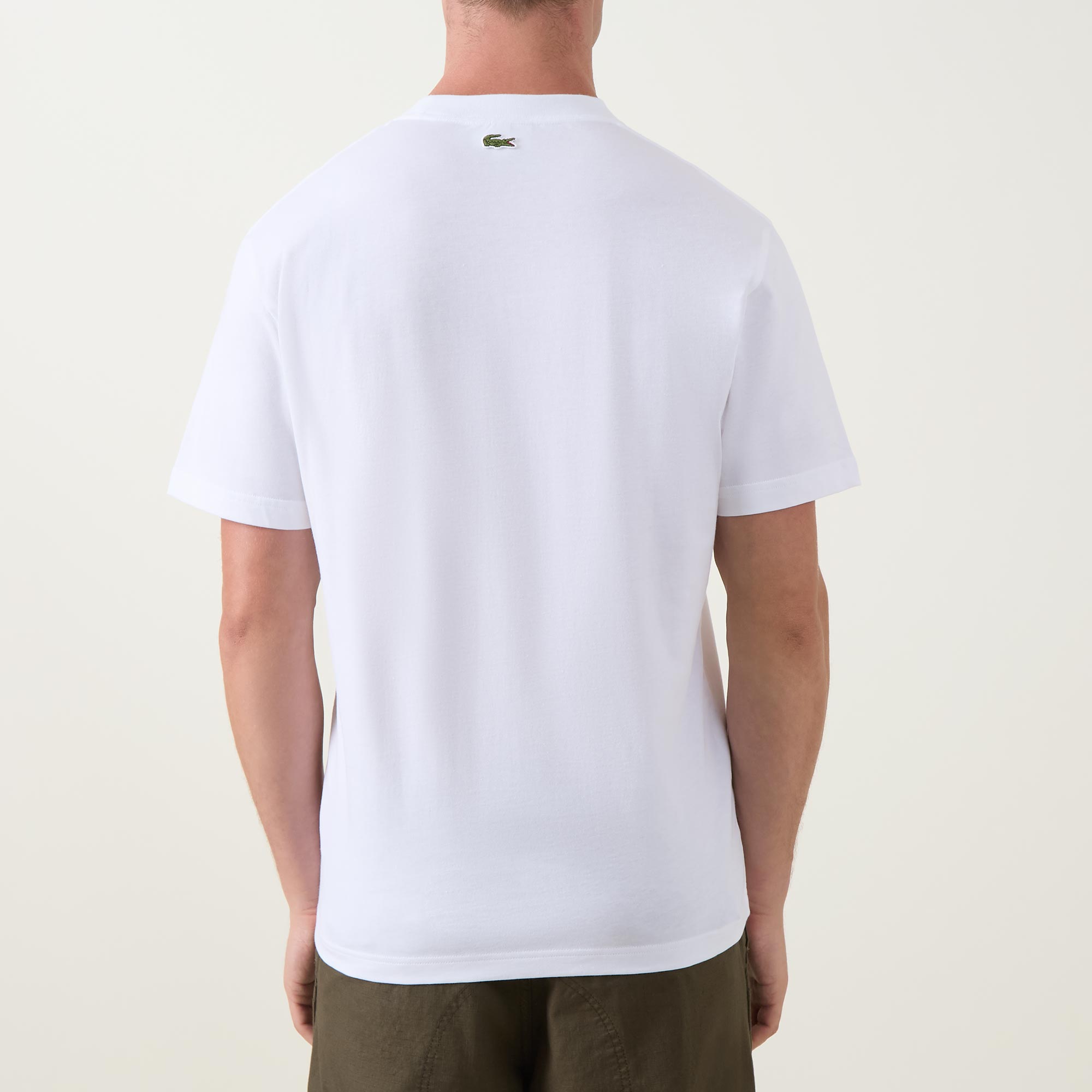 - Crew neck, short sleeves, straight hem, tonal stitching, logo graphic on the front, signature logo detail at the back of the neck