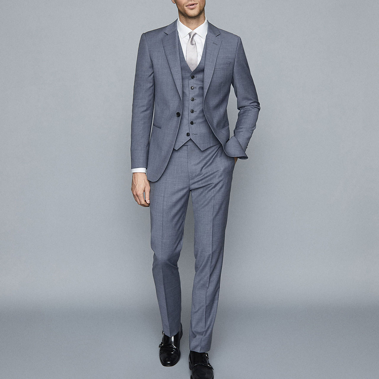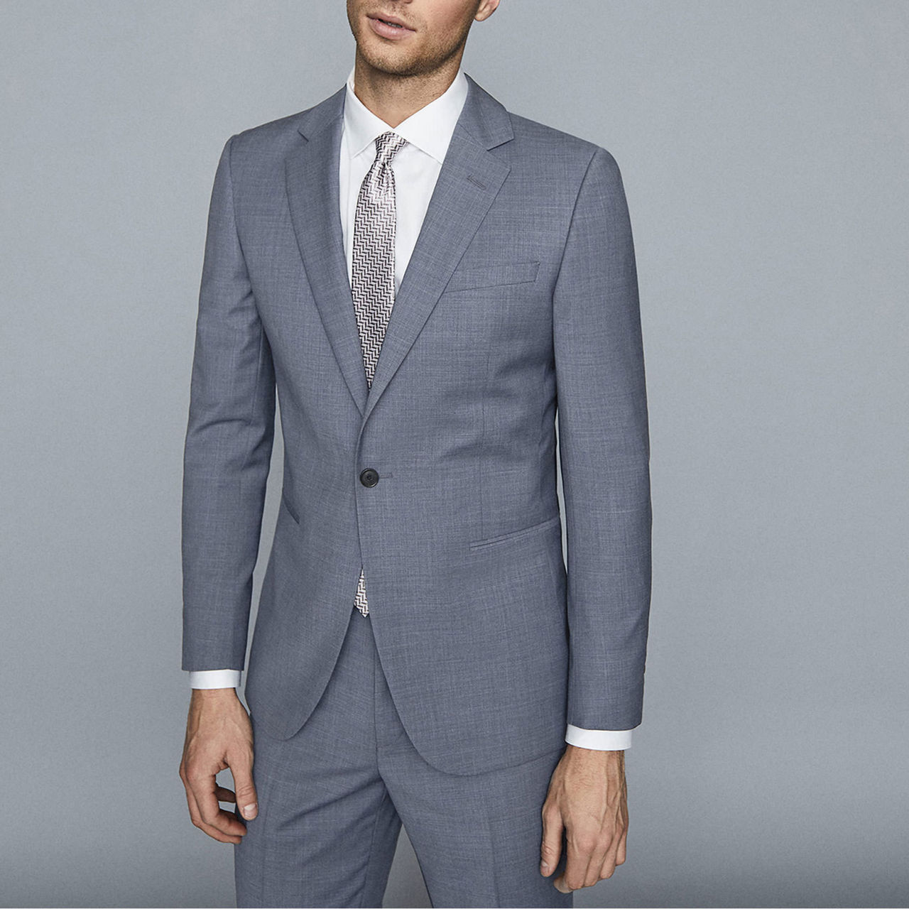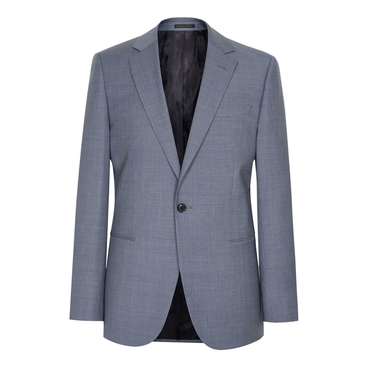 - Textured finish, notch lapels, single-breasted silhouette, single-button fastening, jetted pockets to each hip, double vent to reverse, fully lined, modern fit