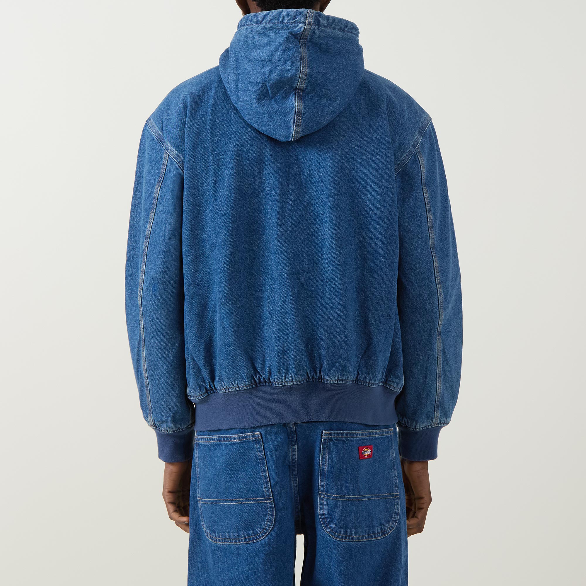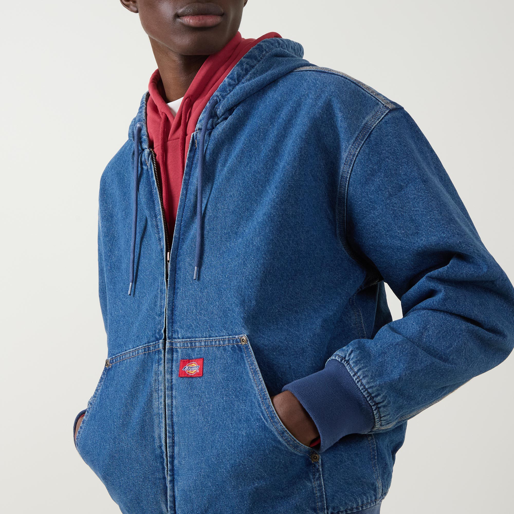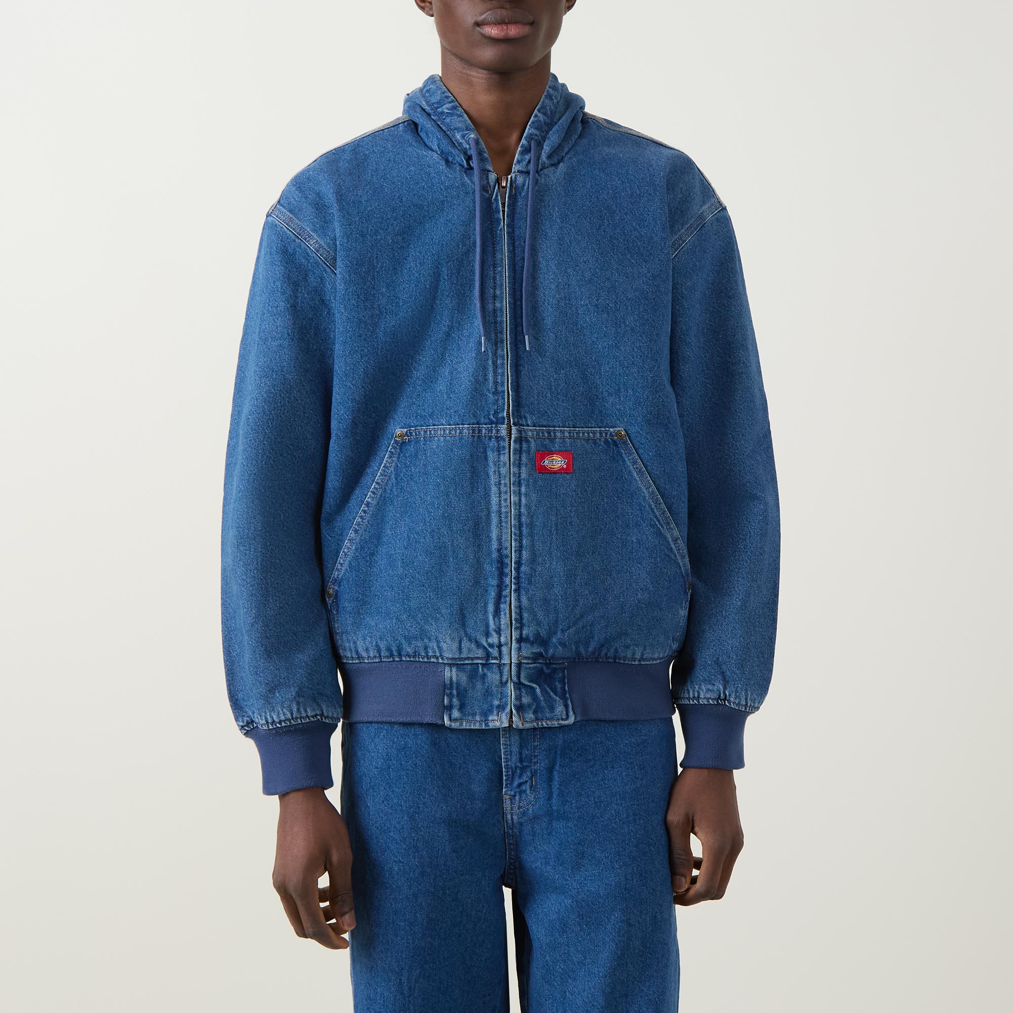 - Faded effect, hooded, long sleeves, ribbed trims, straight hemline, zip fastening, split pouch pocket, logo patch