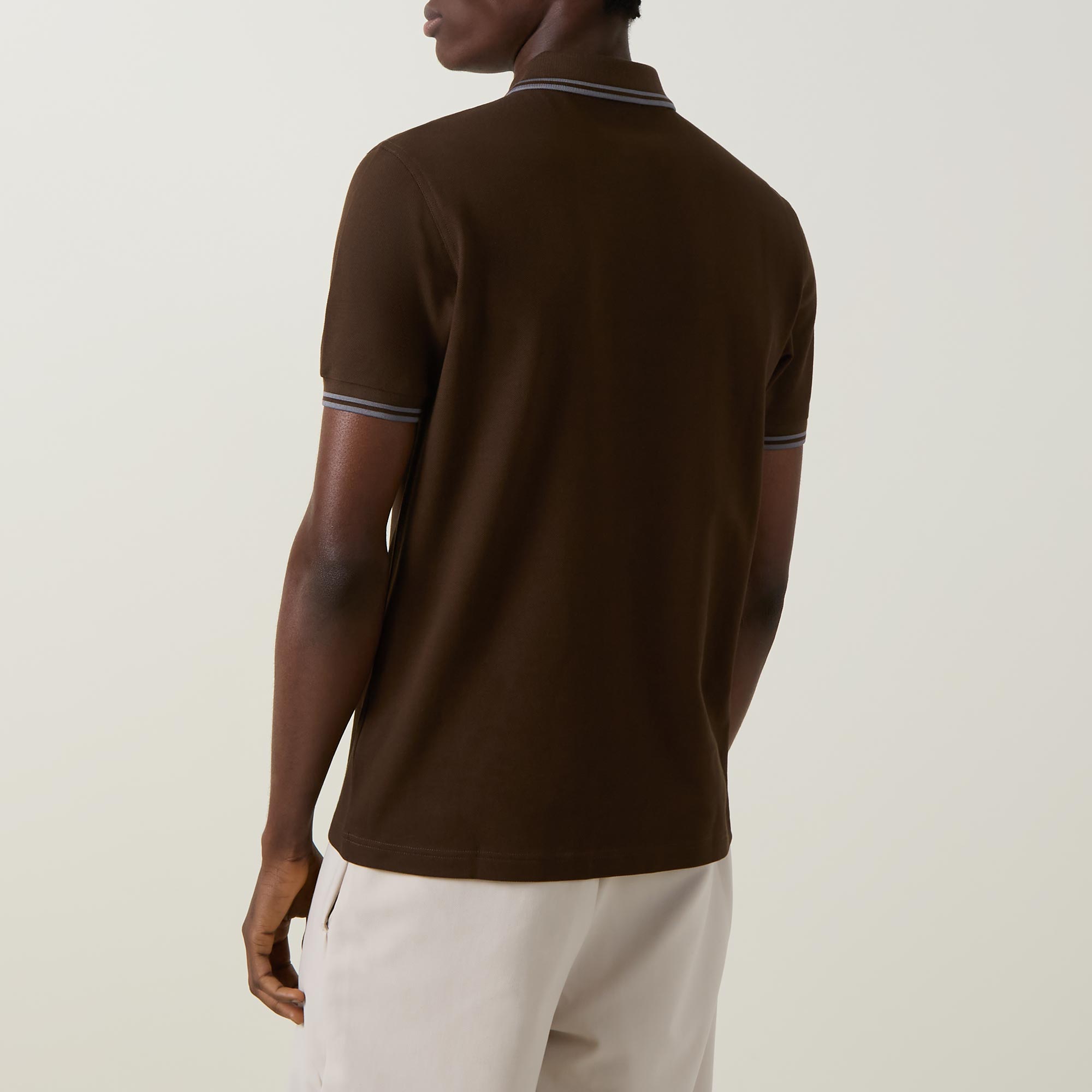 - Flat polo collar, short sleeves, two-button placket, twin tipped trims, Laurel Wreath embroidery, tonal stitching, straight hemline, smooth fabric