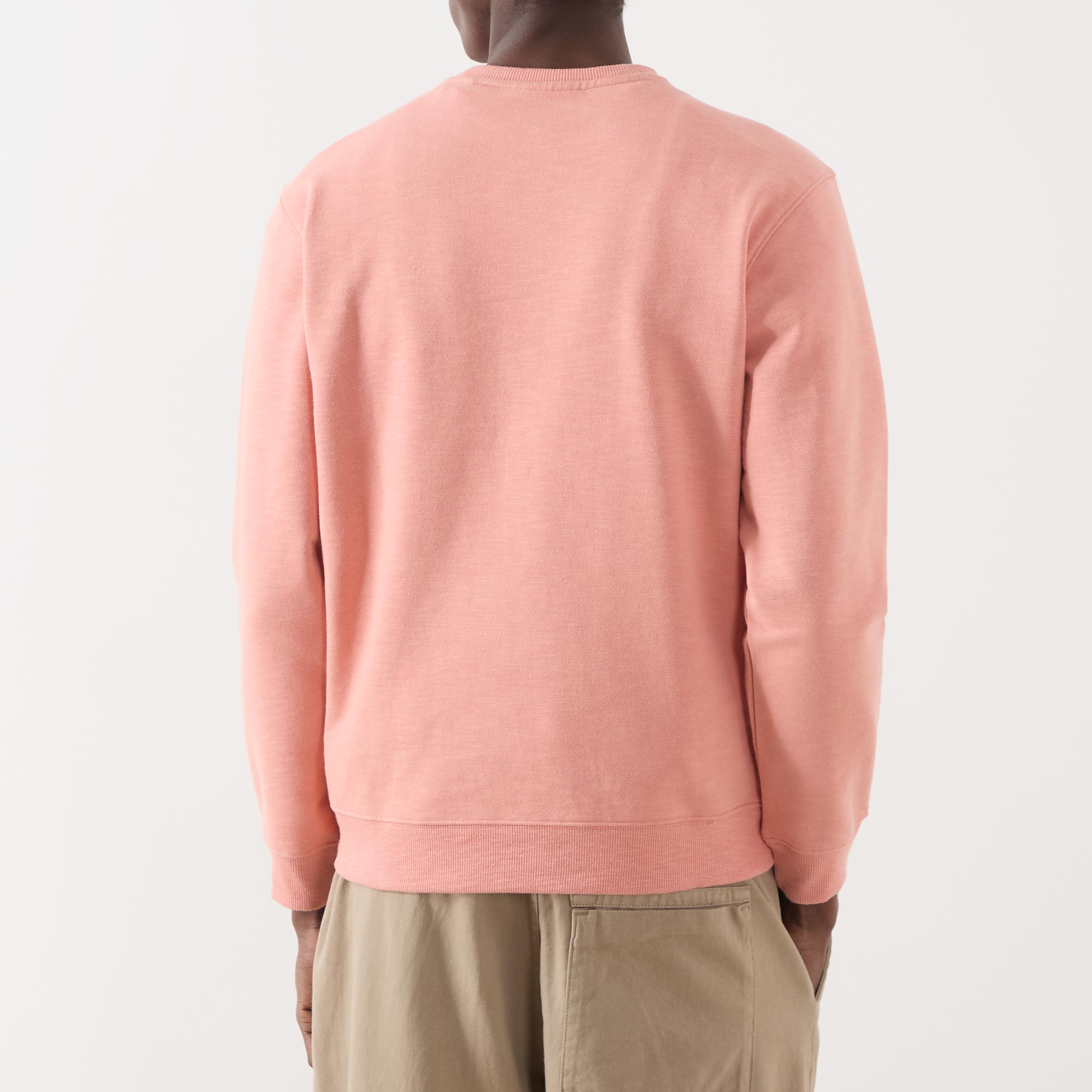 - Crew neckline, long sleeves, ribbed trims, straight hemline