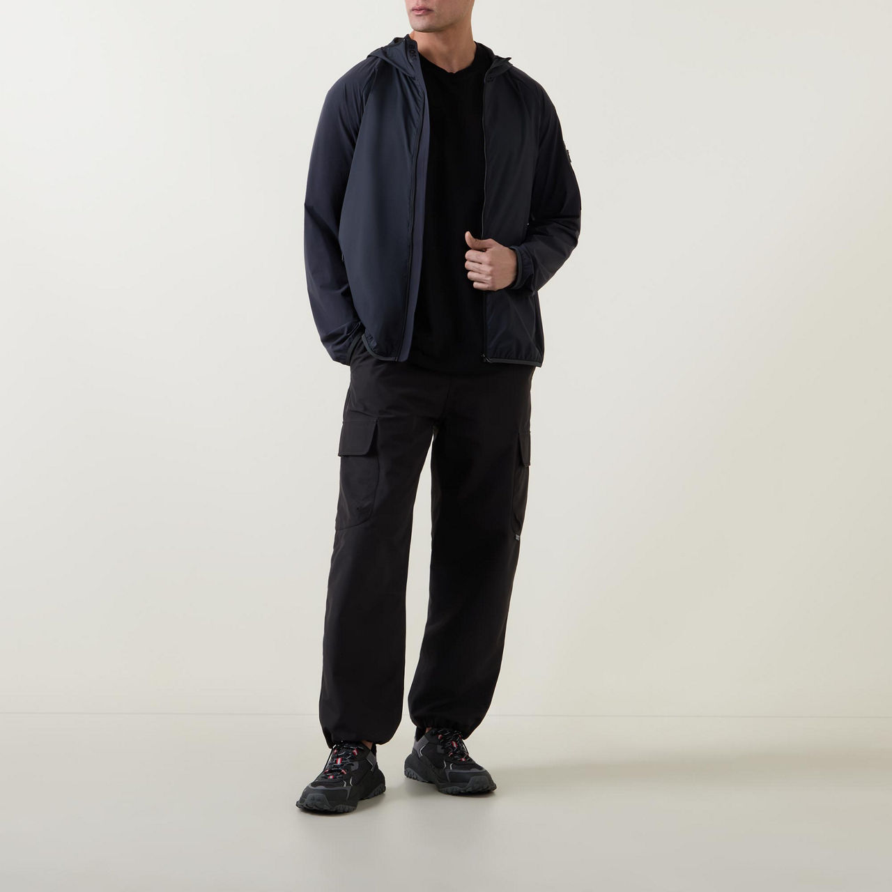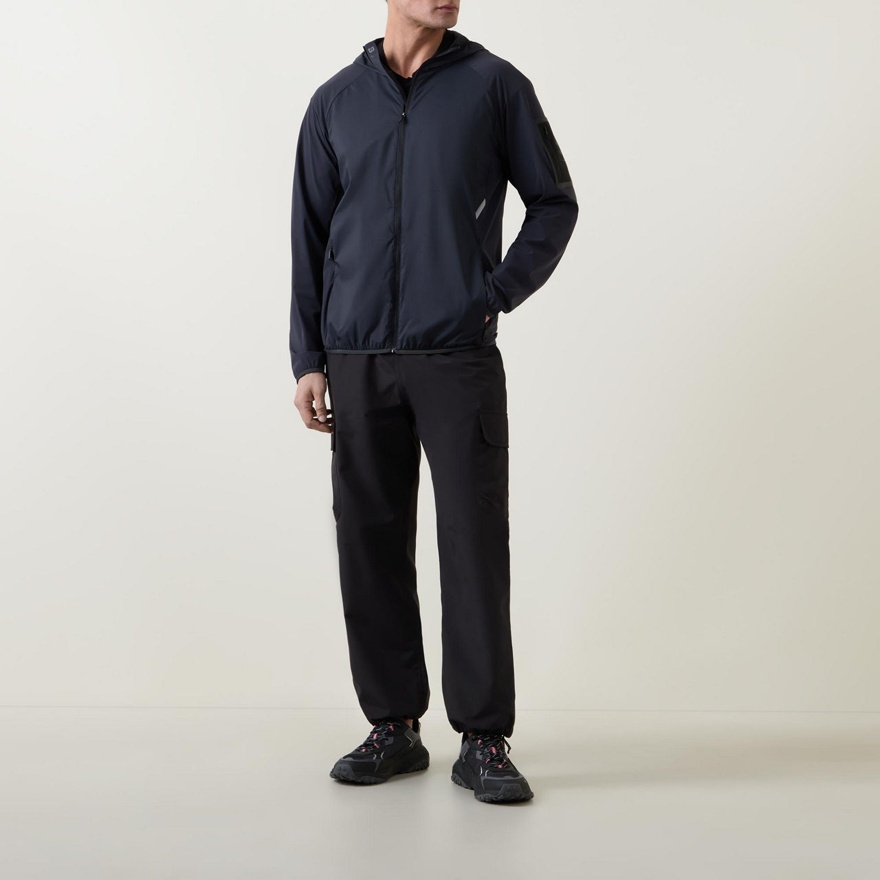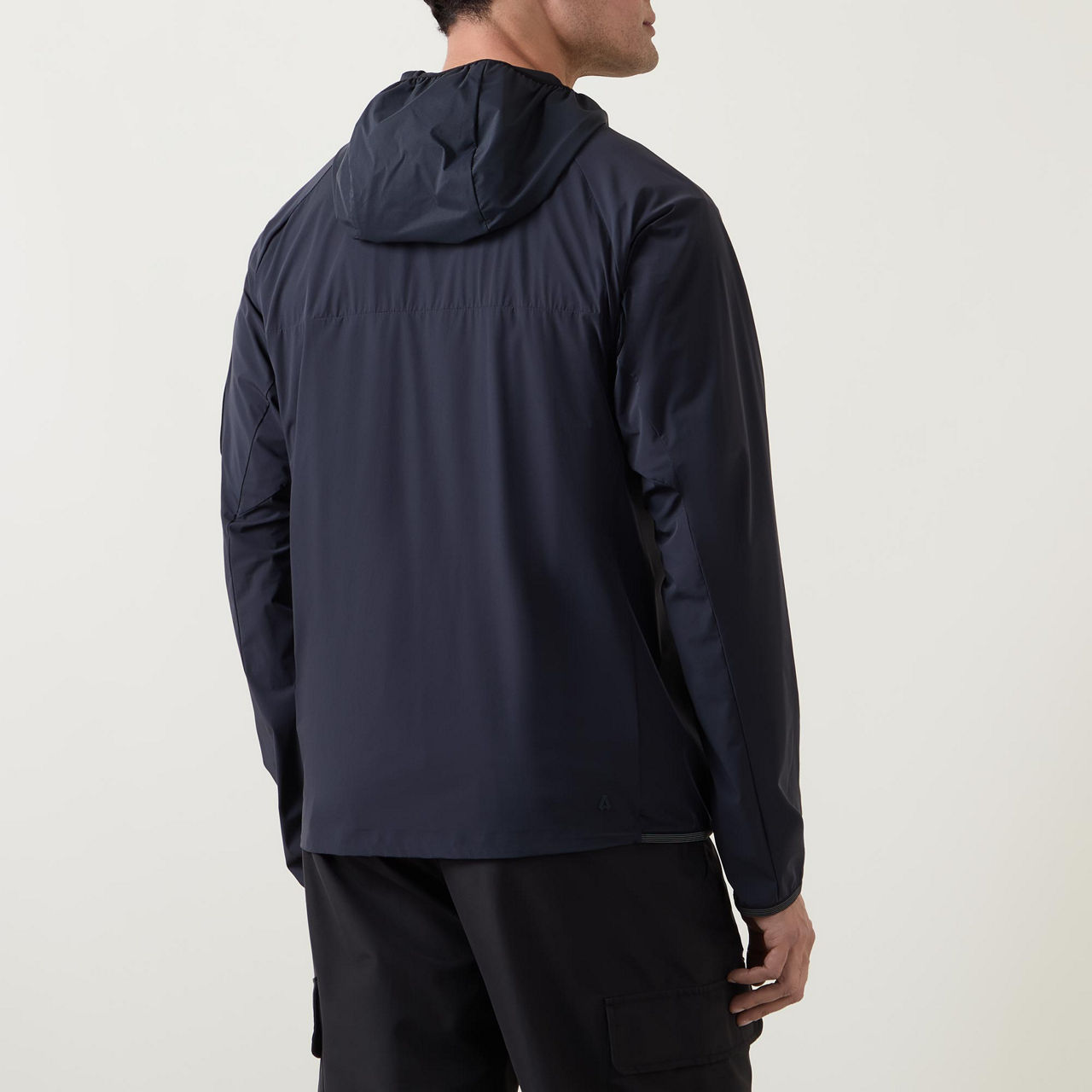 - Four-way stretch, sweat absorbent, quick dry, hood, zip fastening, elasticated trims, zipped pockets, zipped sleeve pocket with logo detail