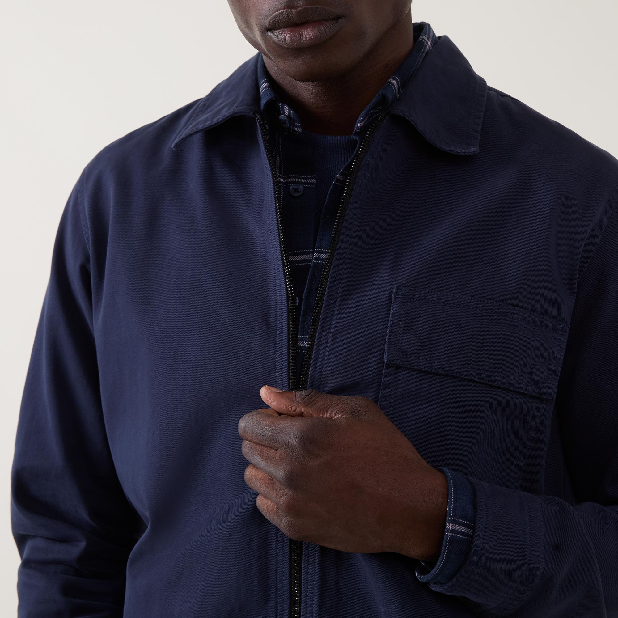 - Logo patch, long sleeves, pointed collar, zip fastening, chest pockets