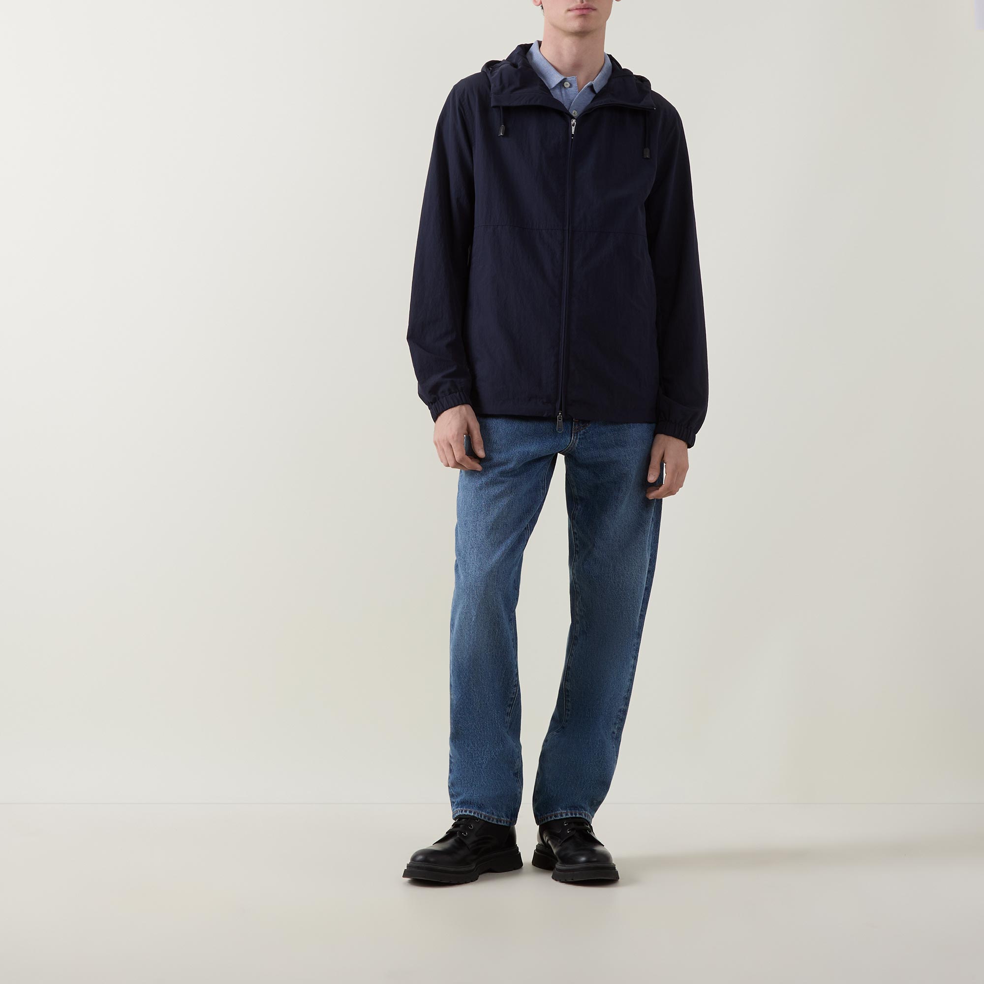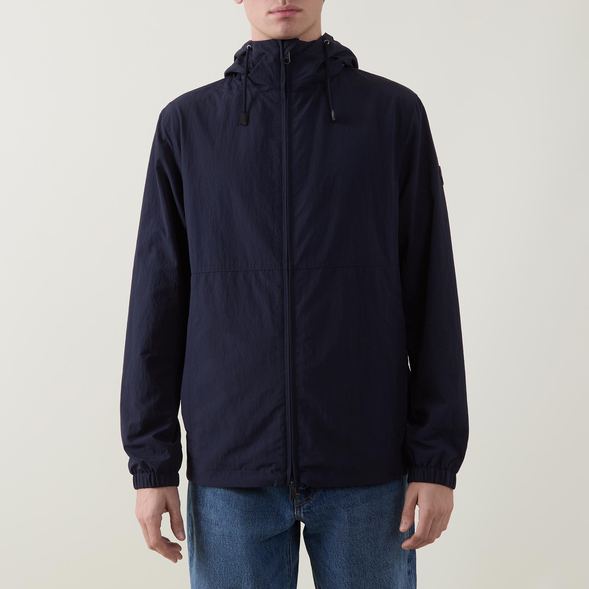 - Hood with adjustable drawcord fastening, long sleeves, elasticated cuffs, two-way front zip fastening, two side entry pockets, straight hem, logo badge on the sleeve