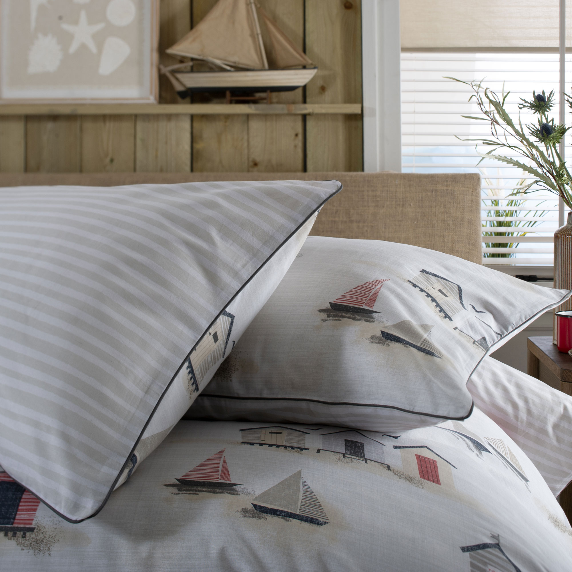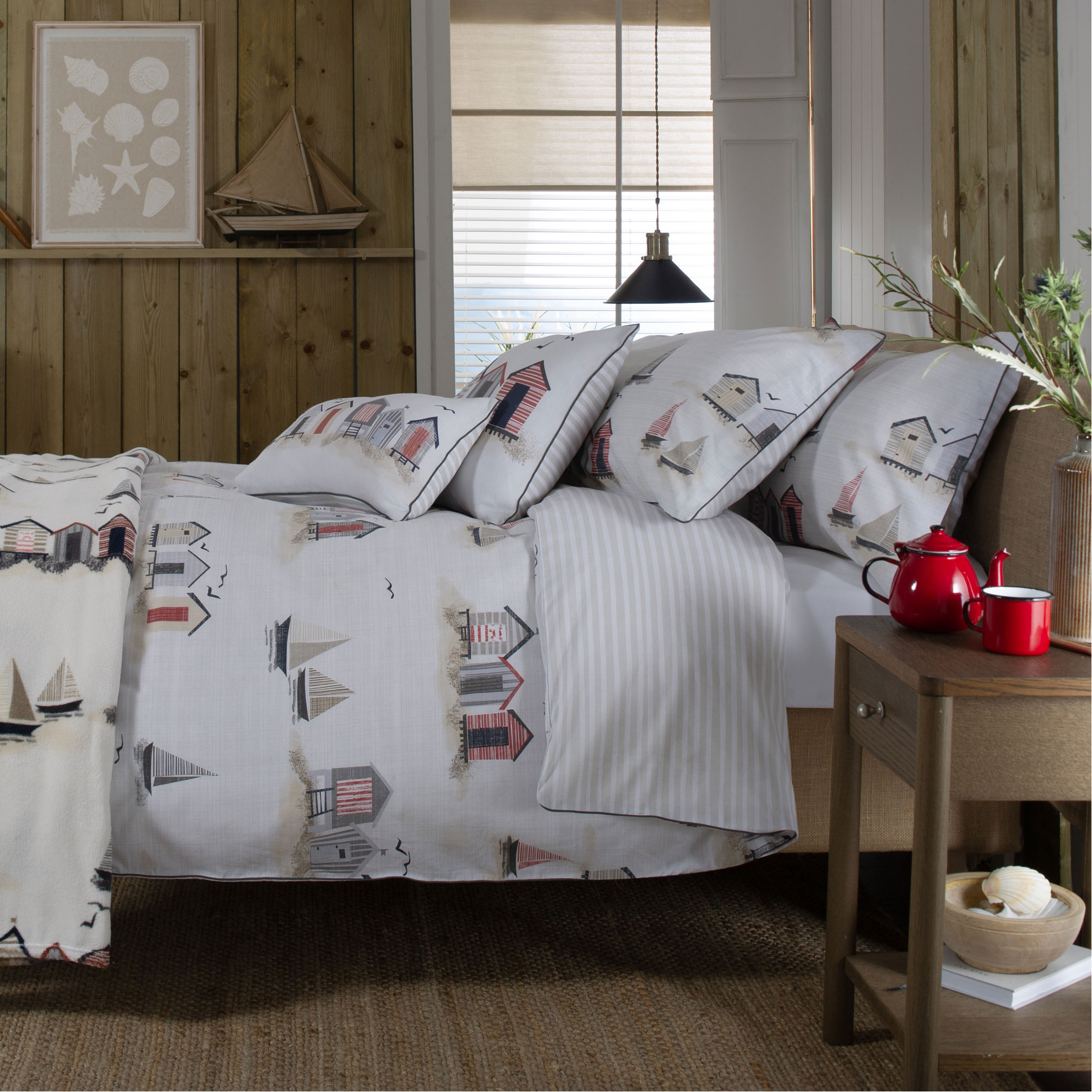 Experience timeless comfort with the Sheringham bedding set. Featuring a striking coastal inspired design in subtle natural colours bringing a sense of calm to any space. Made from 100% pure cotton giving a cool crisp finish to your bed. Duvet Set includes pillowcase(s). Complete the look with the Sheringham Cushion and Sheringham Throw.