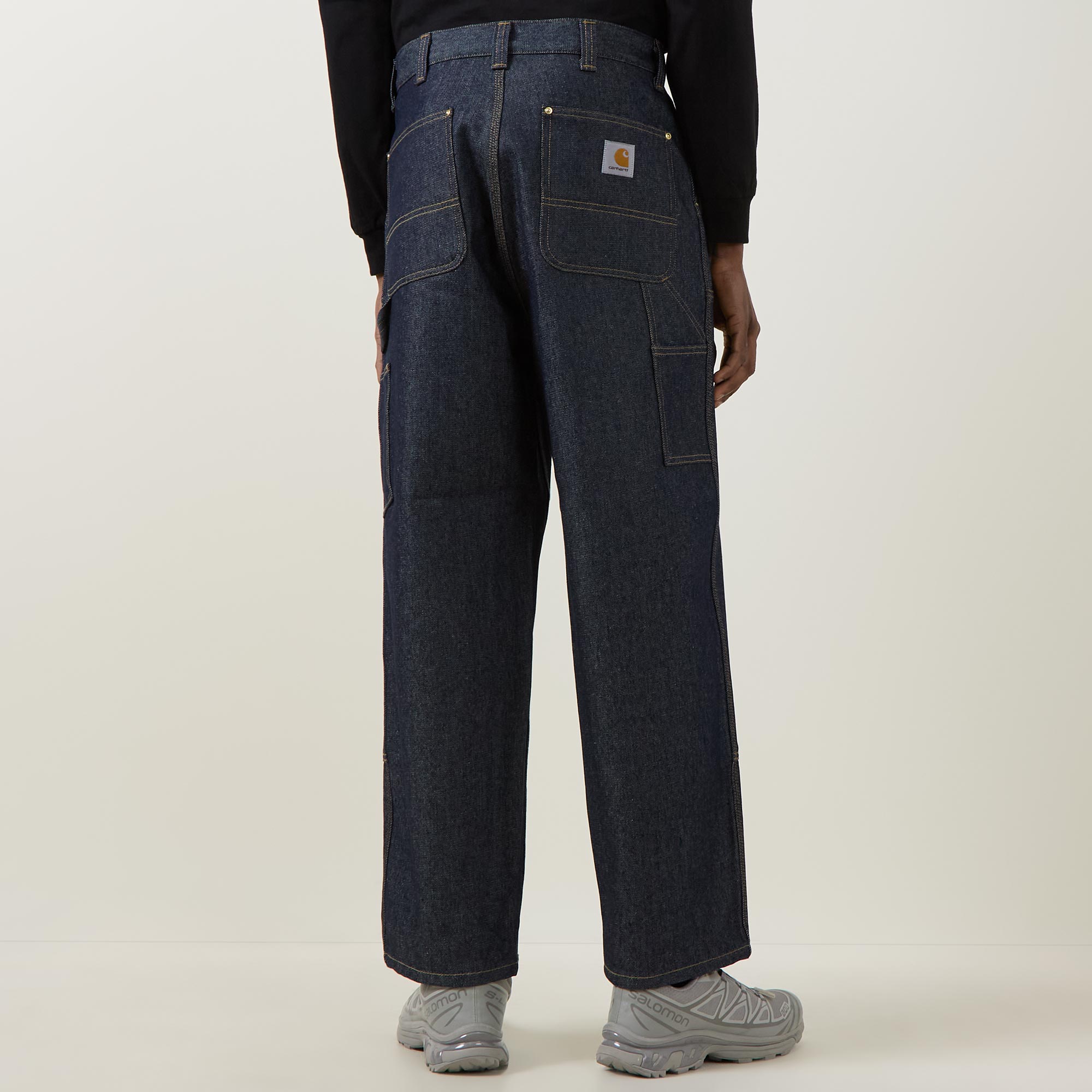 - Heavyweight denim, loose straight fit, double-layer knees, bartack stitching, tool pockets, hammer loop, woven square label logo, belt loops, five pocket styling