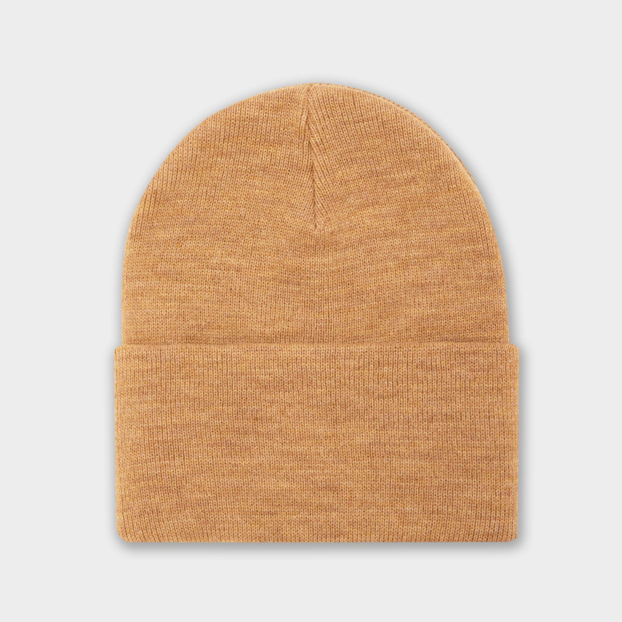 - Beanie style, turned-up cuff, logo badge, knit structure, heathered finish