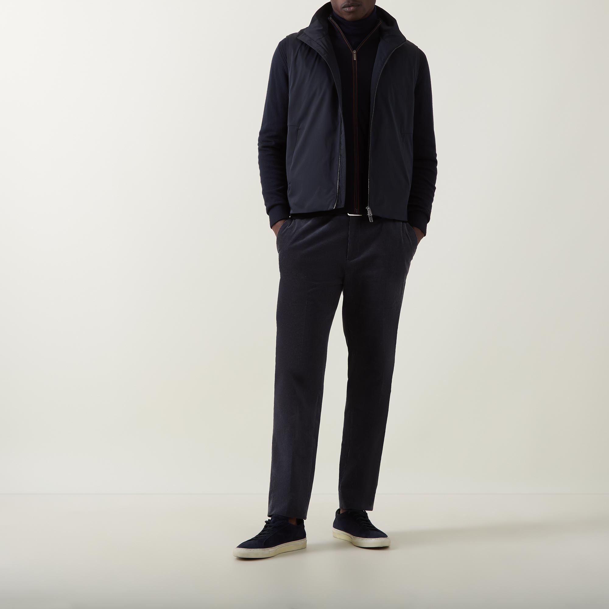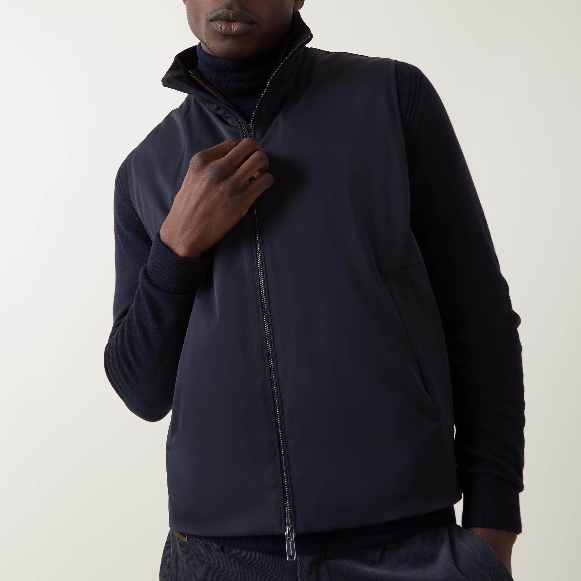 • Standing collar, two-way zip fastening, side entry pockets with magnetic closure, interior pocket