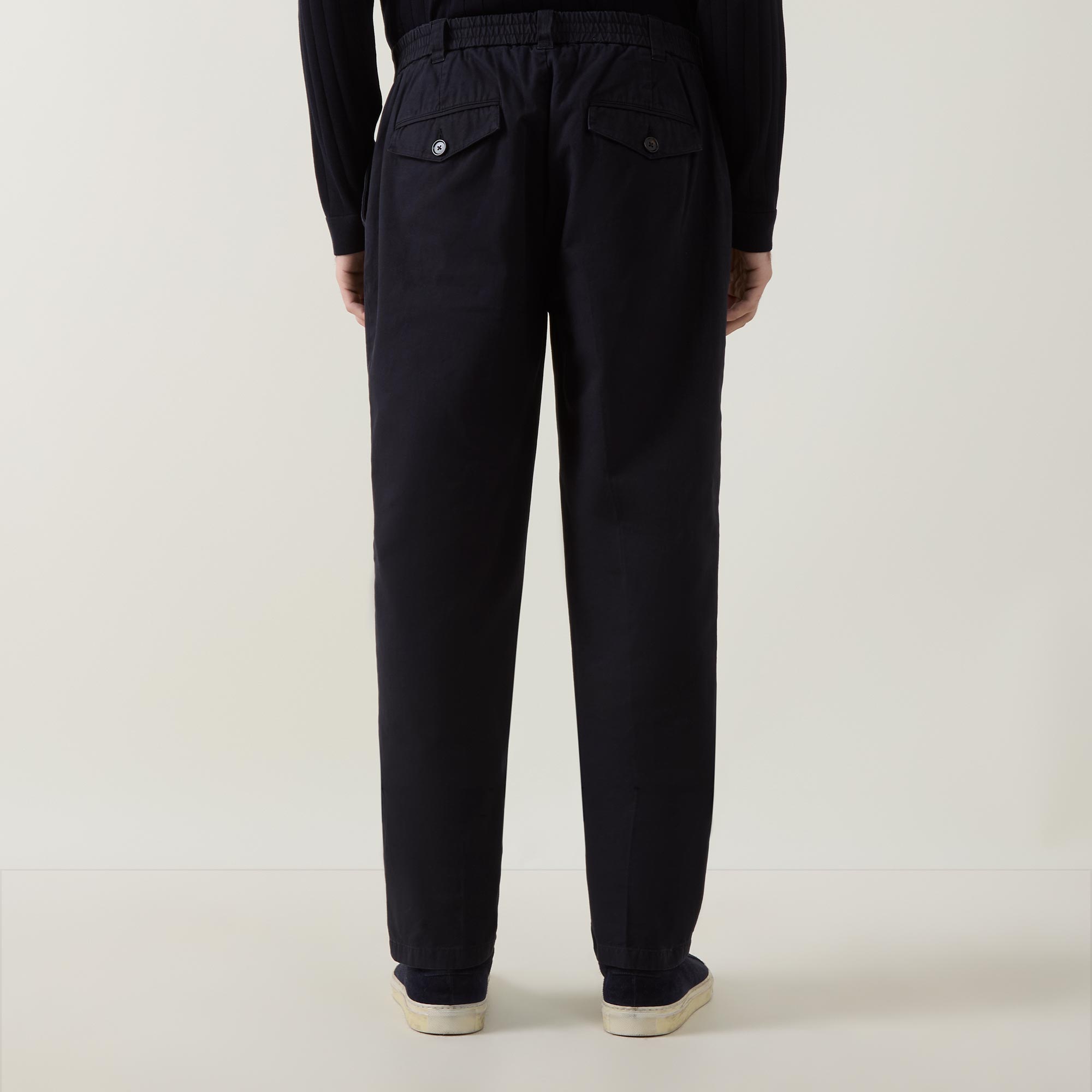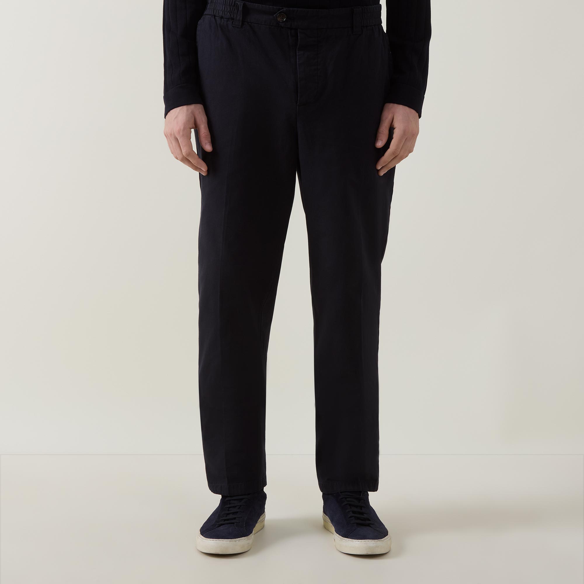• Elasticated waistband with button fastening, belt loops, side entry pockets, buttoned rear pockets, pressed creases