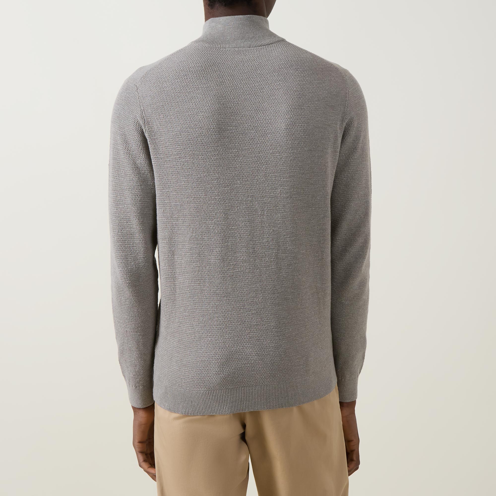 • Funnel neckline, long sleeves, straight hemline, half-zip fastening, ribbed trims