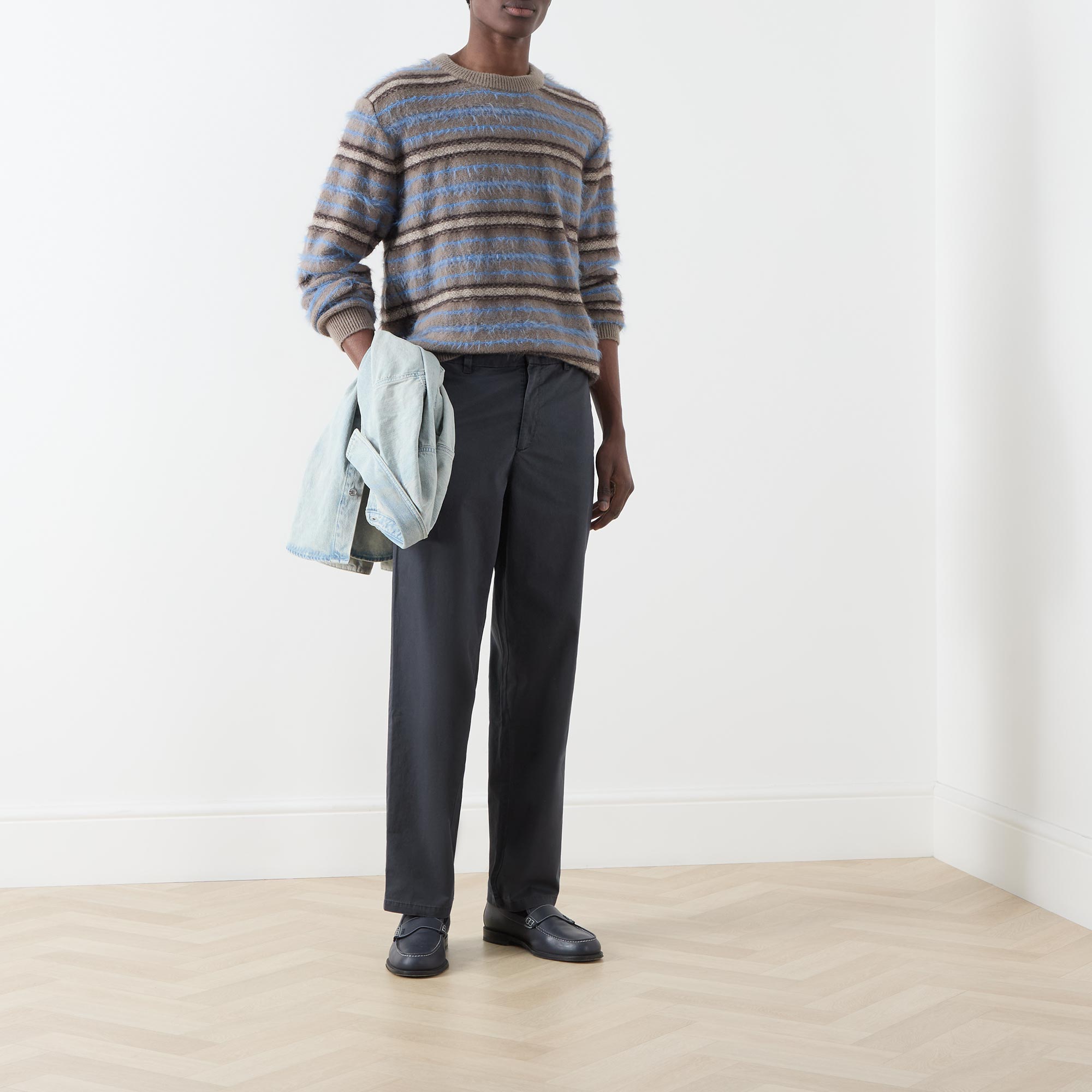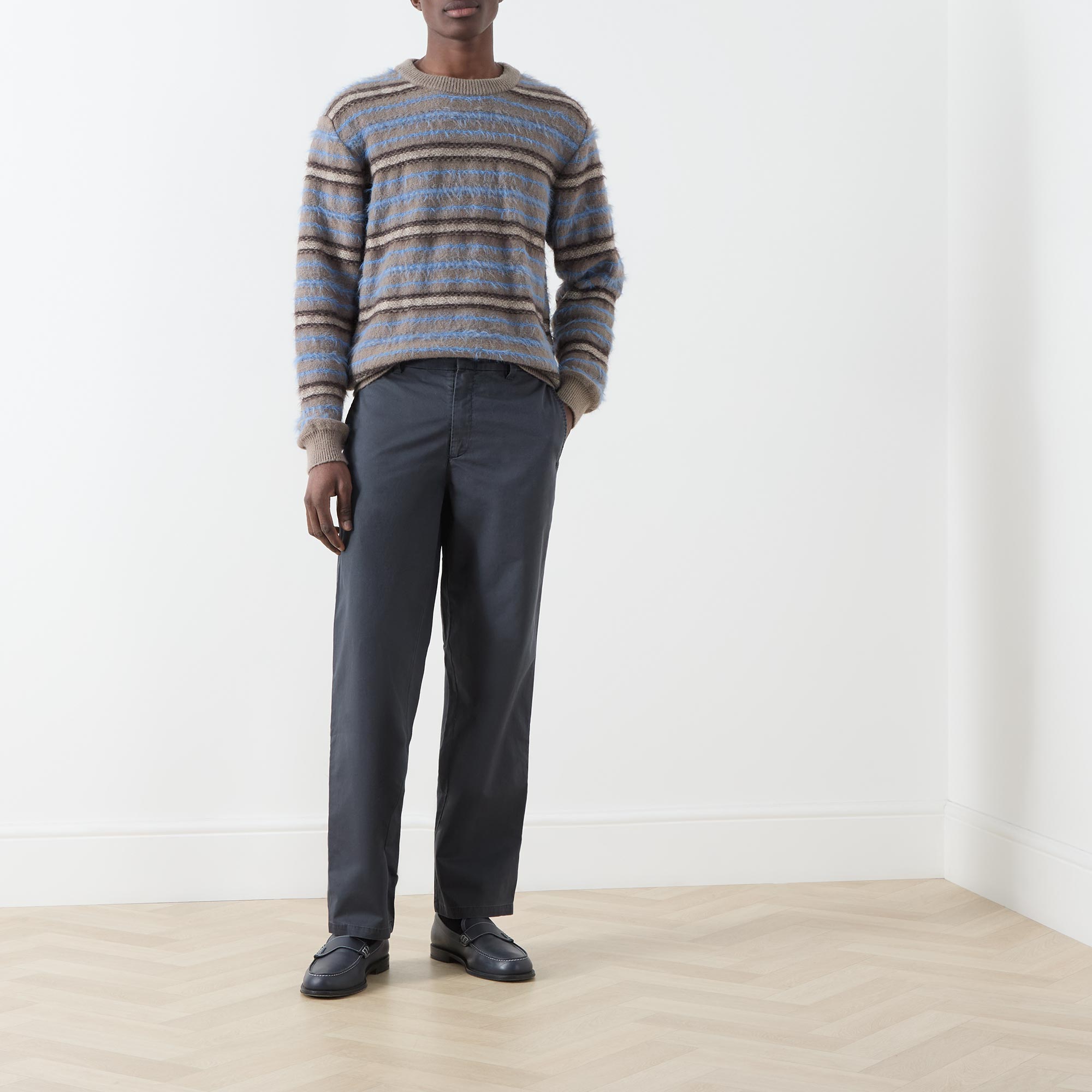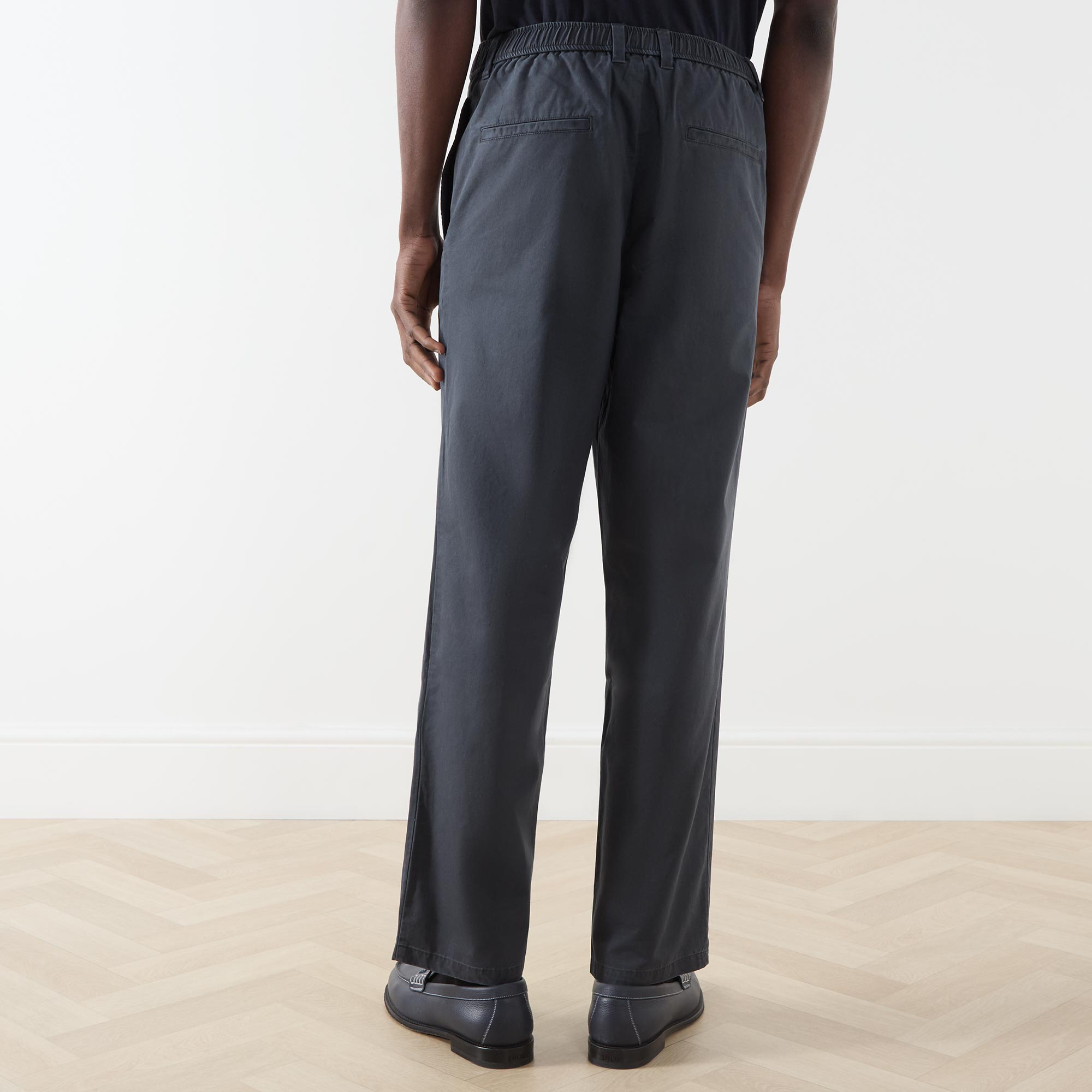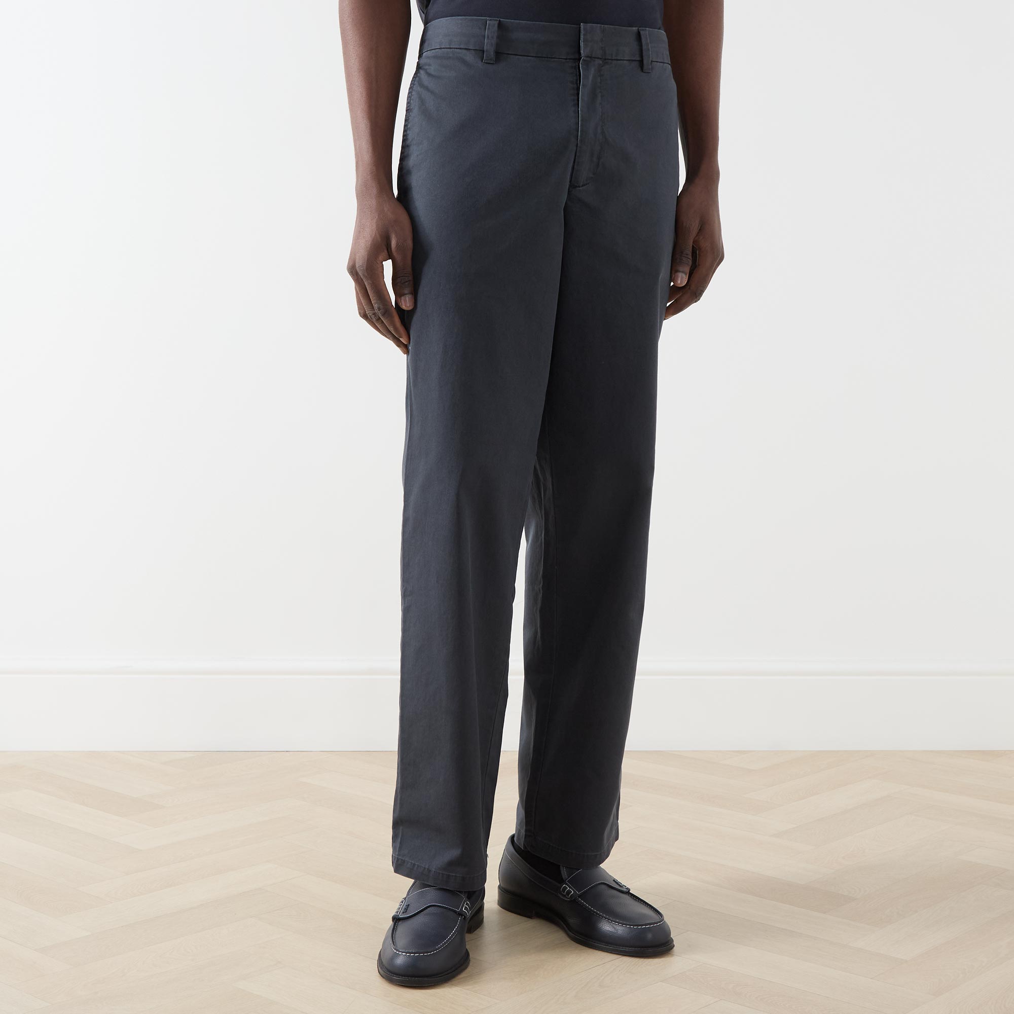 • Straight-leg silhouette, button and zip fly fastening, front side slit pockets, rear welt pockets, semi-elasticated waistband, belt loops