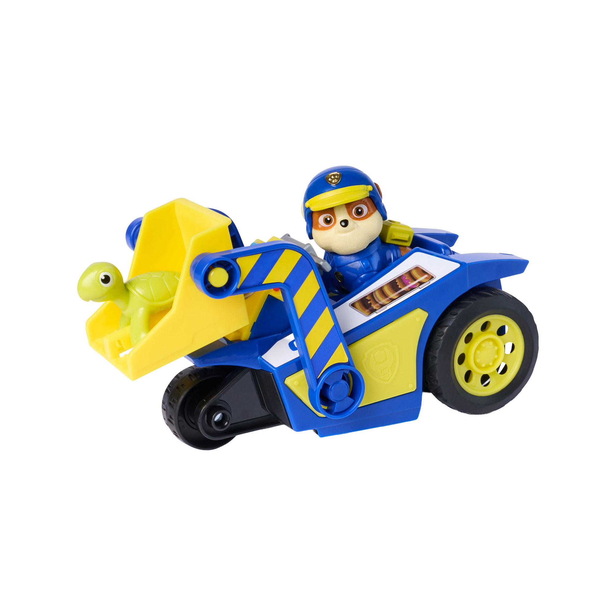 - One vehicle, one Rubble figure, one Turtle figure, pull-back action
