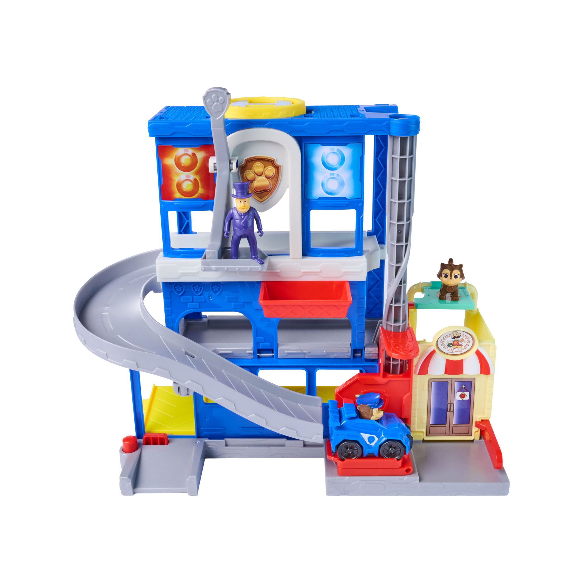 Race to the rescue with the PAW Patrol Search & Rescue HQ Playset! Standing over 30.4cm tall, this action-packed set comes with Pup Squad Racer Chase, Mayor Humdinger, and Kitty for endless rescue missions. Kids can take Chase up the rotating lift to stop Humdinger, then roll down the slide to save Kitty with the rescue cart that attaches to Chase’s vehicle. Launch Chase into action with the built-in launcher and have fun! The back of the HQ doubles as convenient storage, keeping all the pups and pieces neatly organized between playtimes.