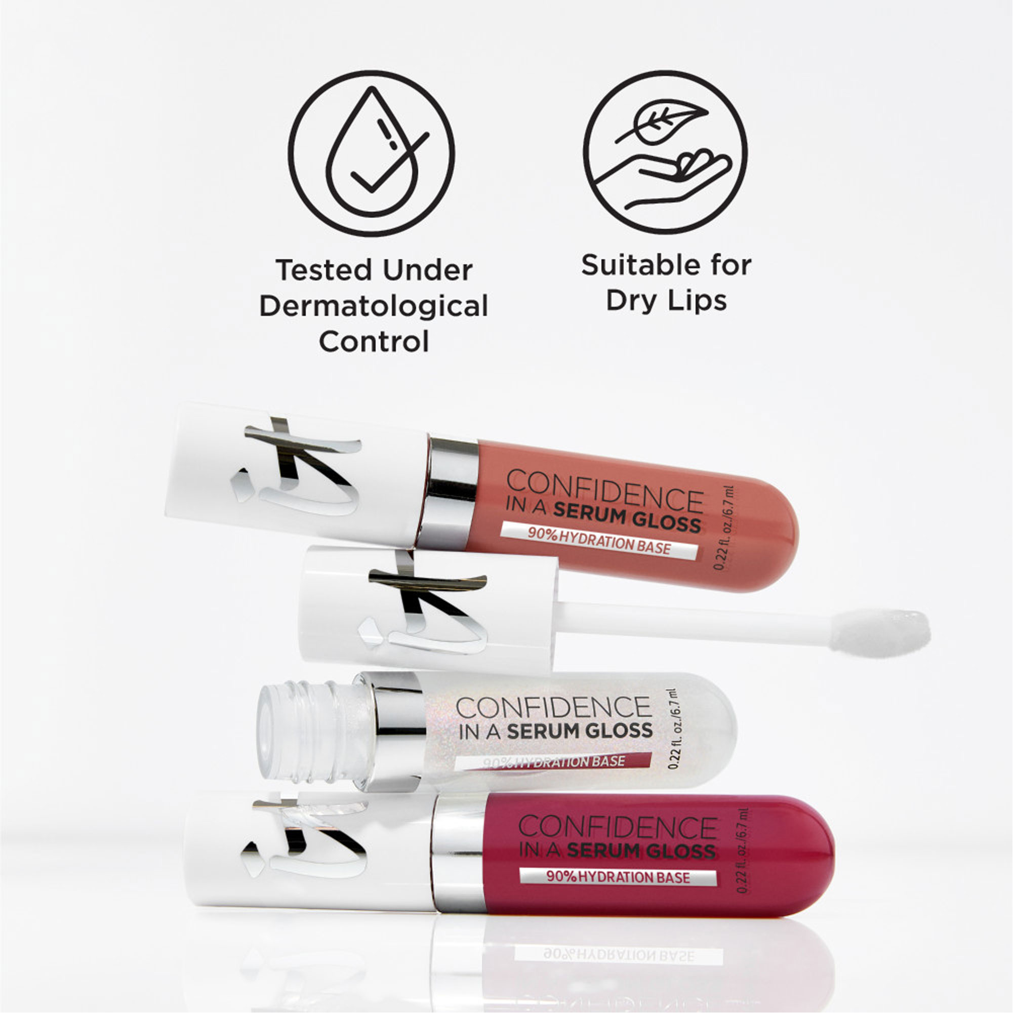 Description: Confidence in a Serum Lip Gloss is a hydrating lip gloss and serum in one, delivering sheer colour and up to 8 hours of hydration.