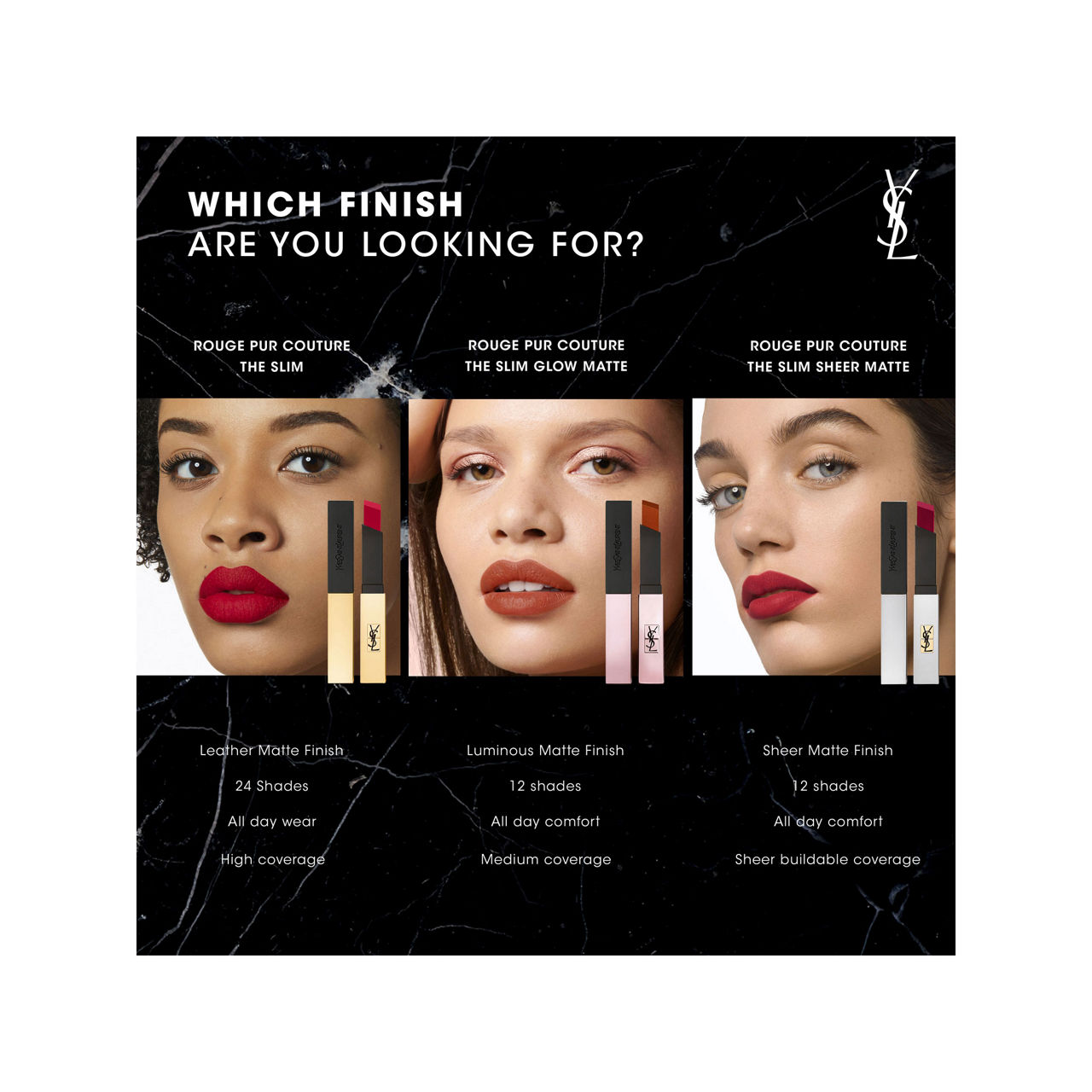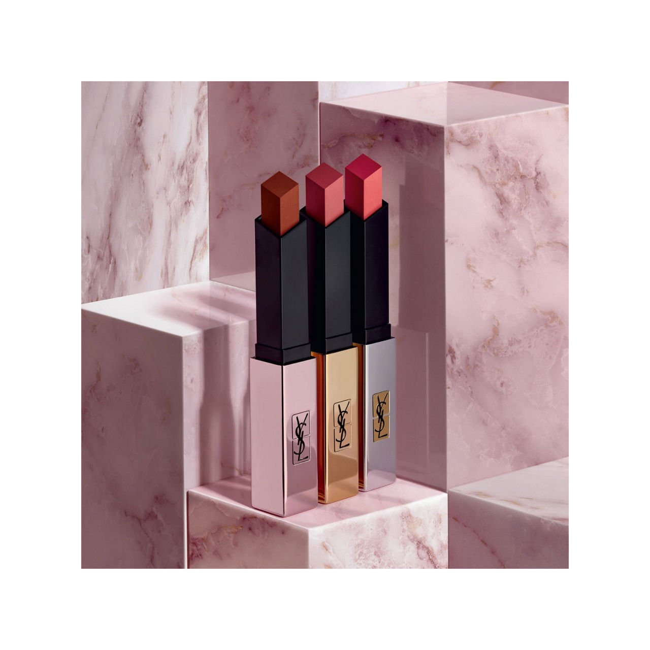 This lipstick offers a unique luminous matte look, reinventing our coveted Rouge Pur Couture The Slim Lipstick with a new radiant finish.