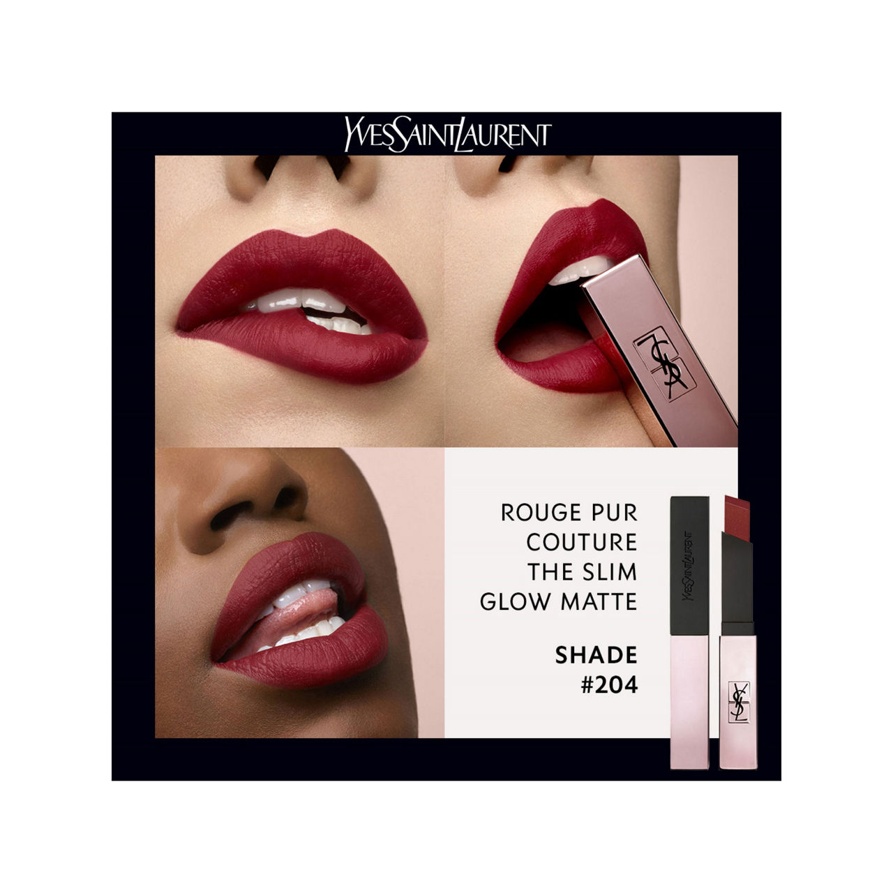ROUGE PUR COUTURE THE SLIM GLOW MATTE LIPSTICK, YSL’s first luminous-matte lipstick with our signature square bullet for precise application.