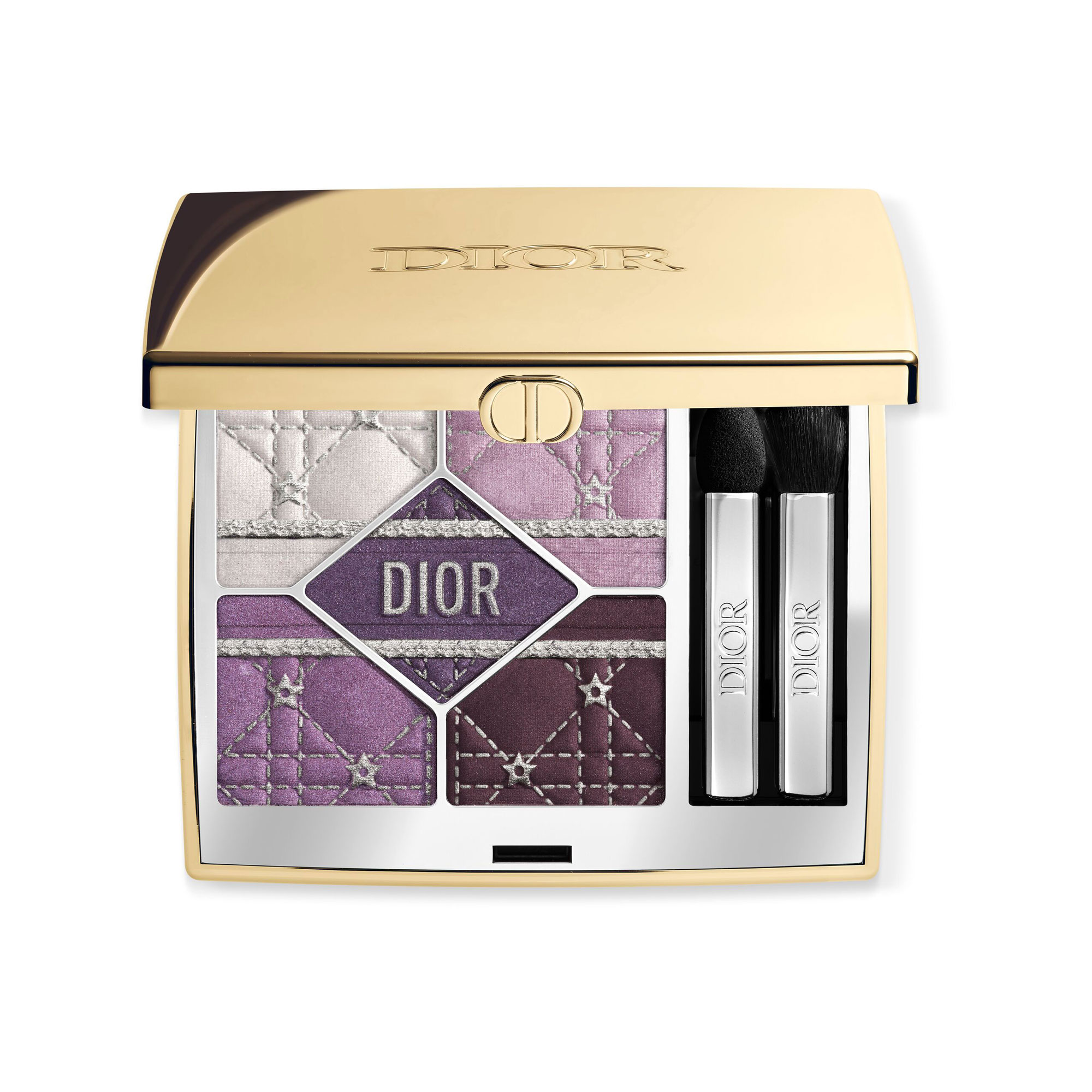 Description: For the holiday season, Diorshow 5 Couleurs, the iconic Dior eyeshadow palette, comes in a limited-edition golden case adorned with a starry cannage motif. It features pearlescent pigments that highlight the intricate details of the design and two new harmonies for festive looks.