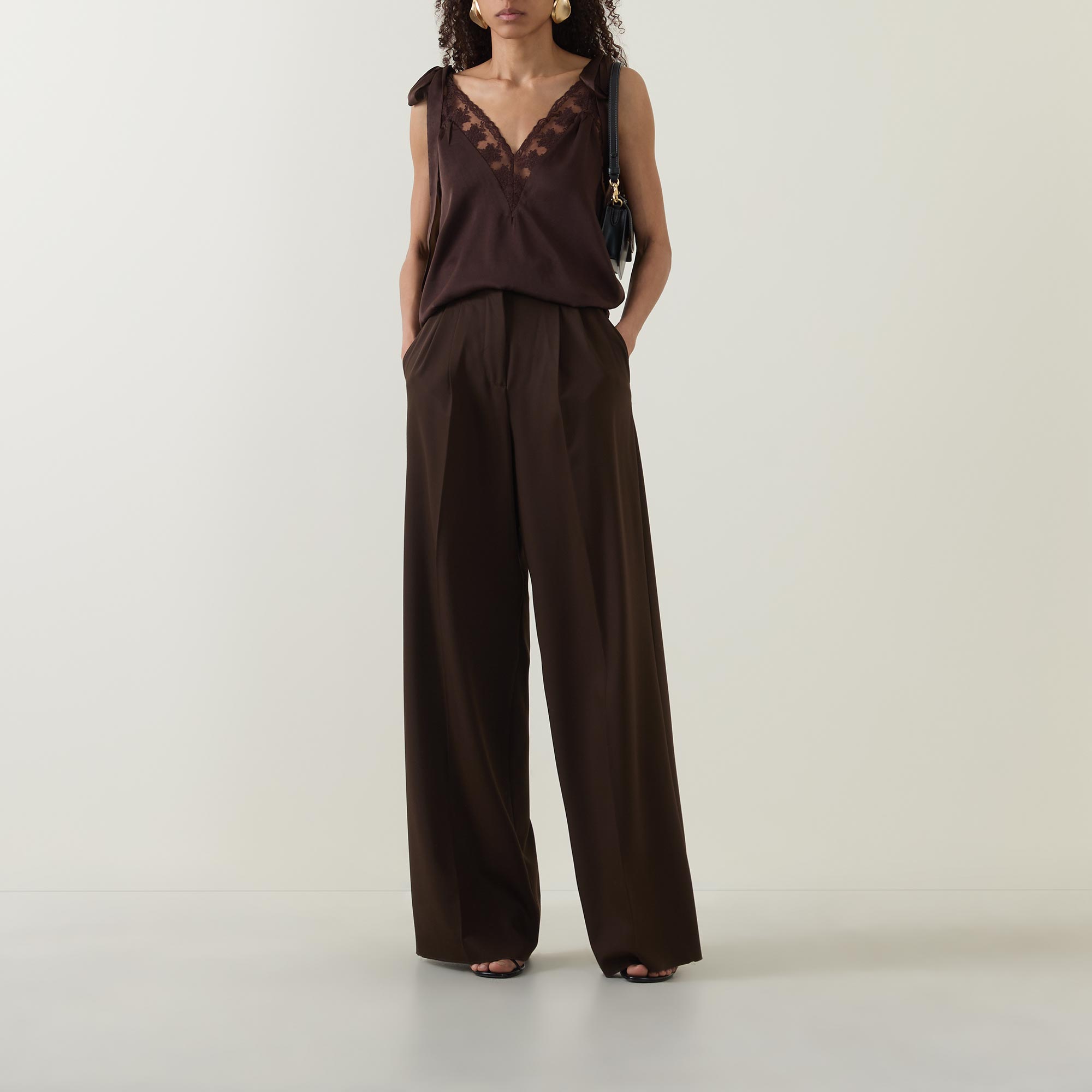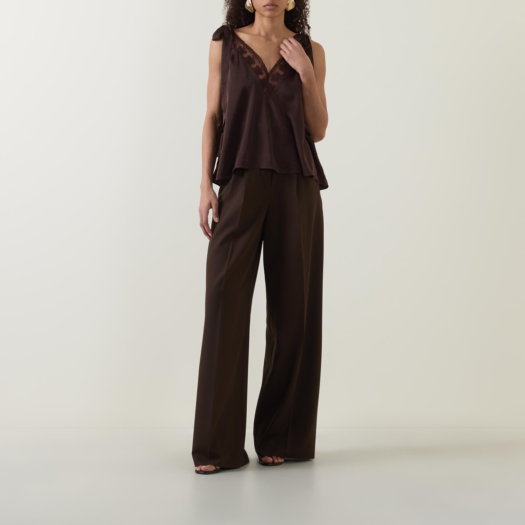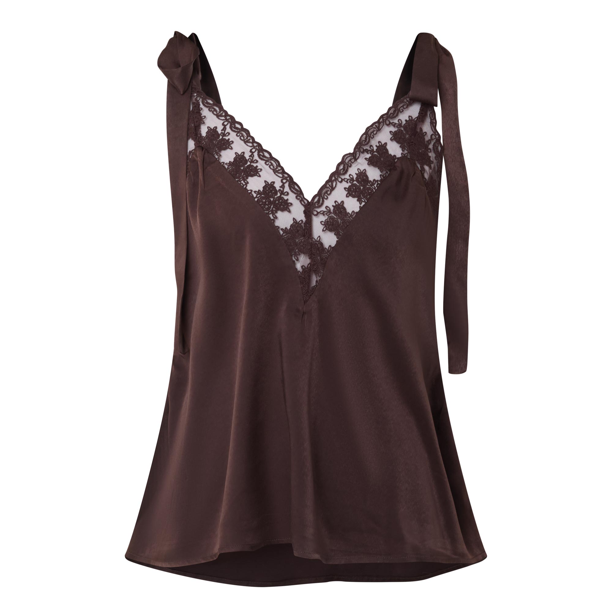 • V-neckline and back, lace embellished trim, self-tie adjustable straps, unlined