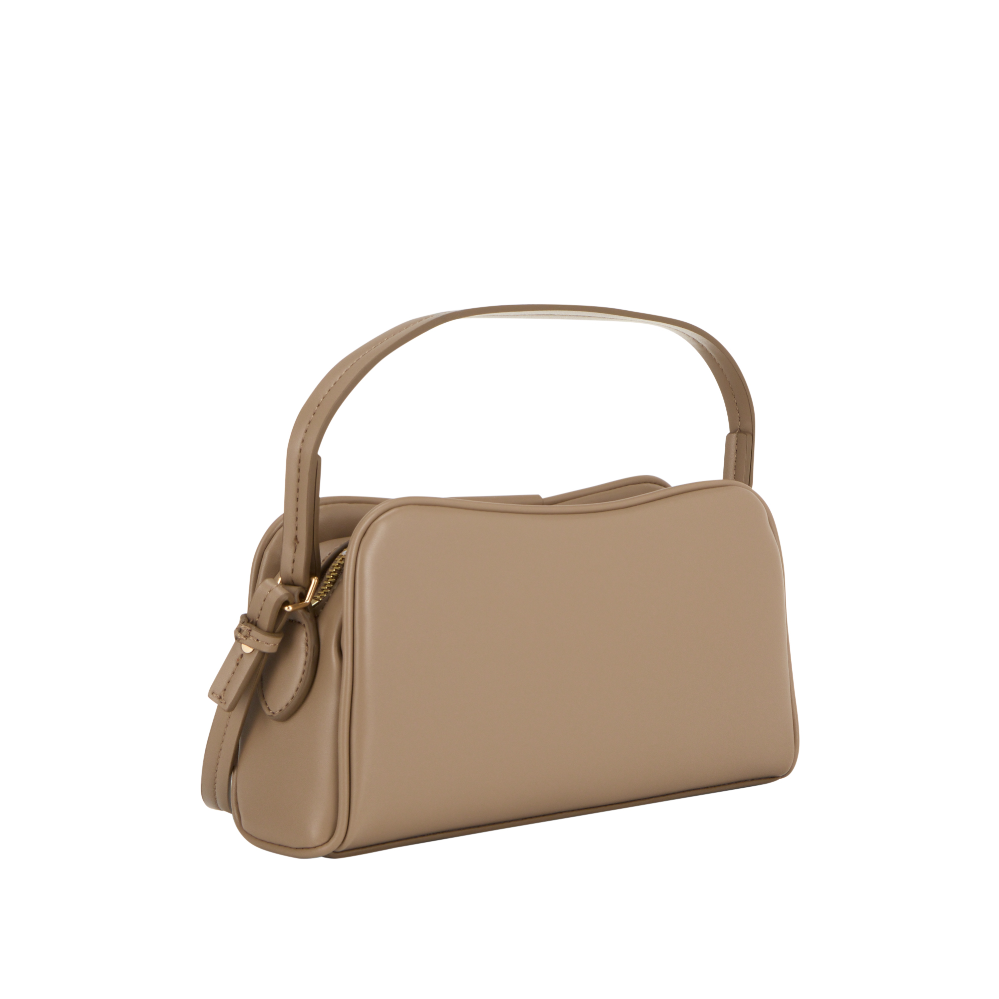 • Top handle, top zip fastening, detachable and adjustable crossbody strap, tonal piping, detachable logo key tag, logo lettering, gold-tone hardware, smooth finish
