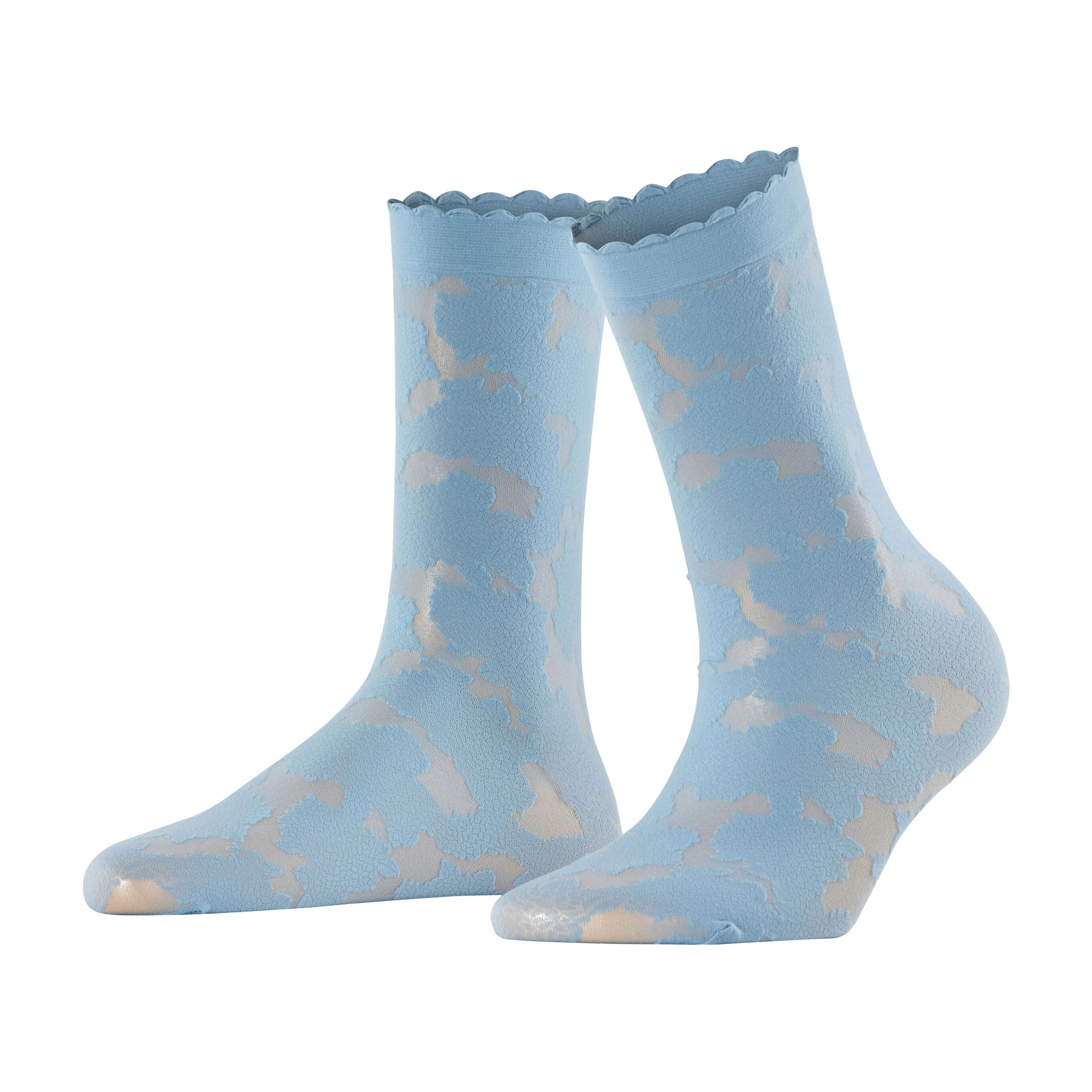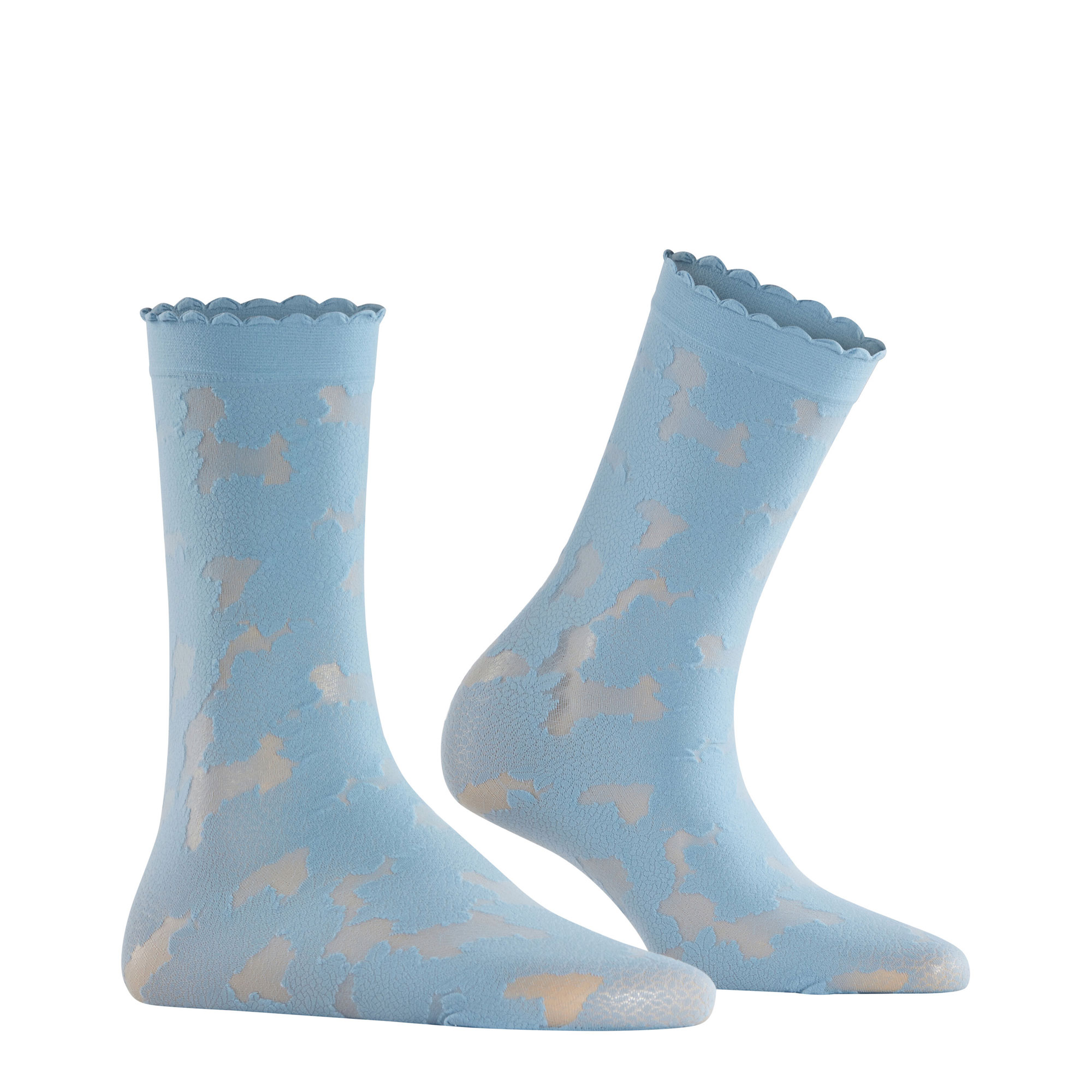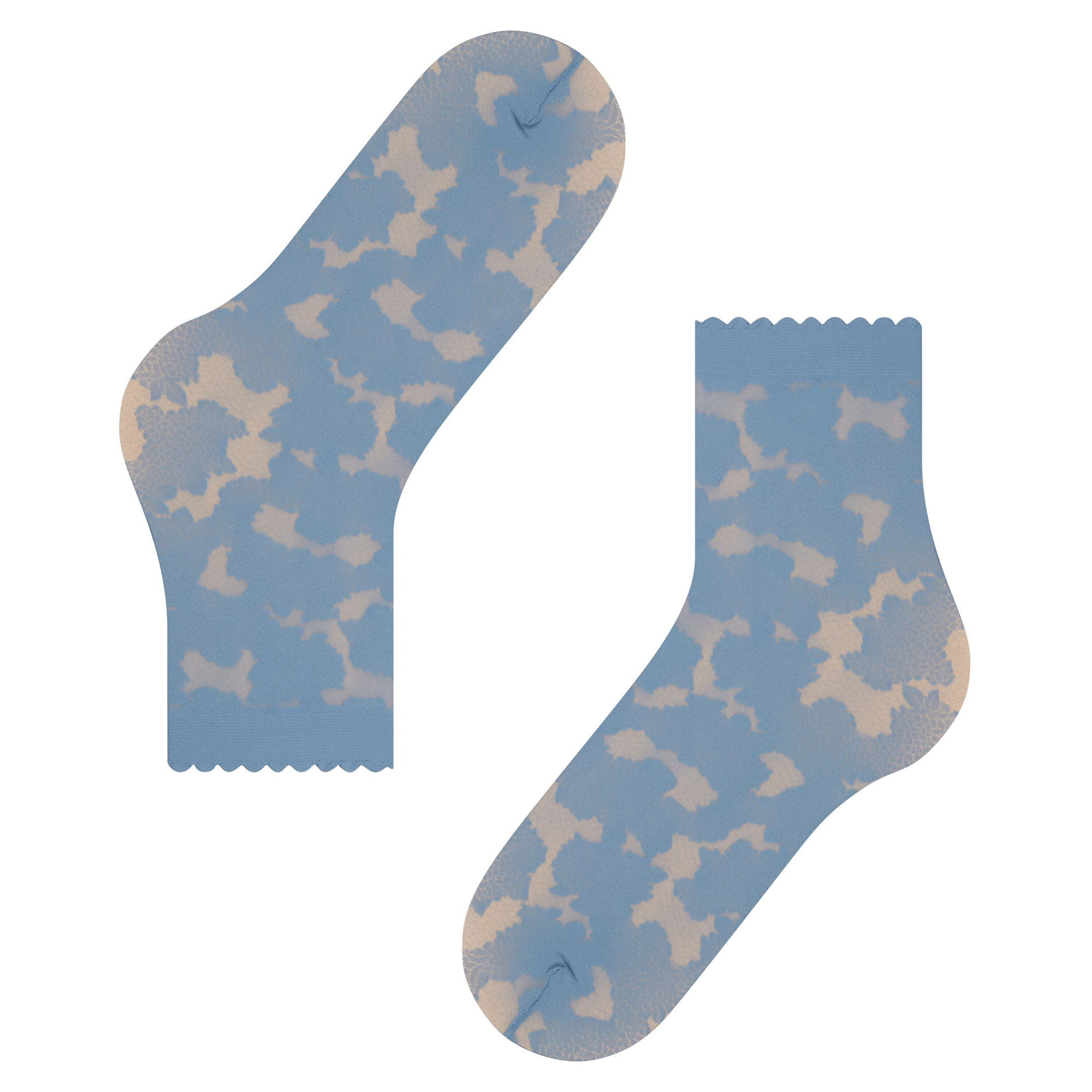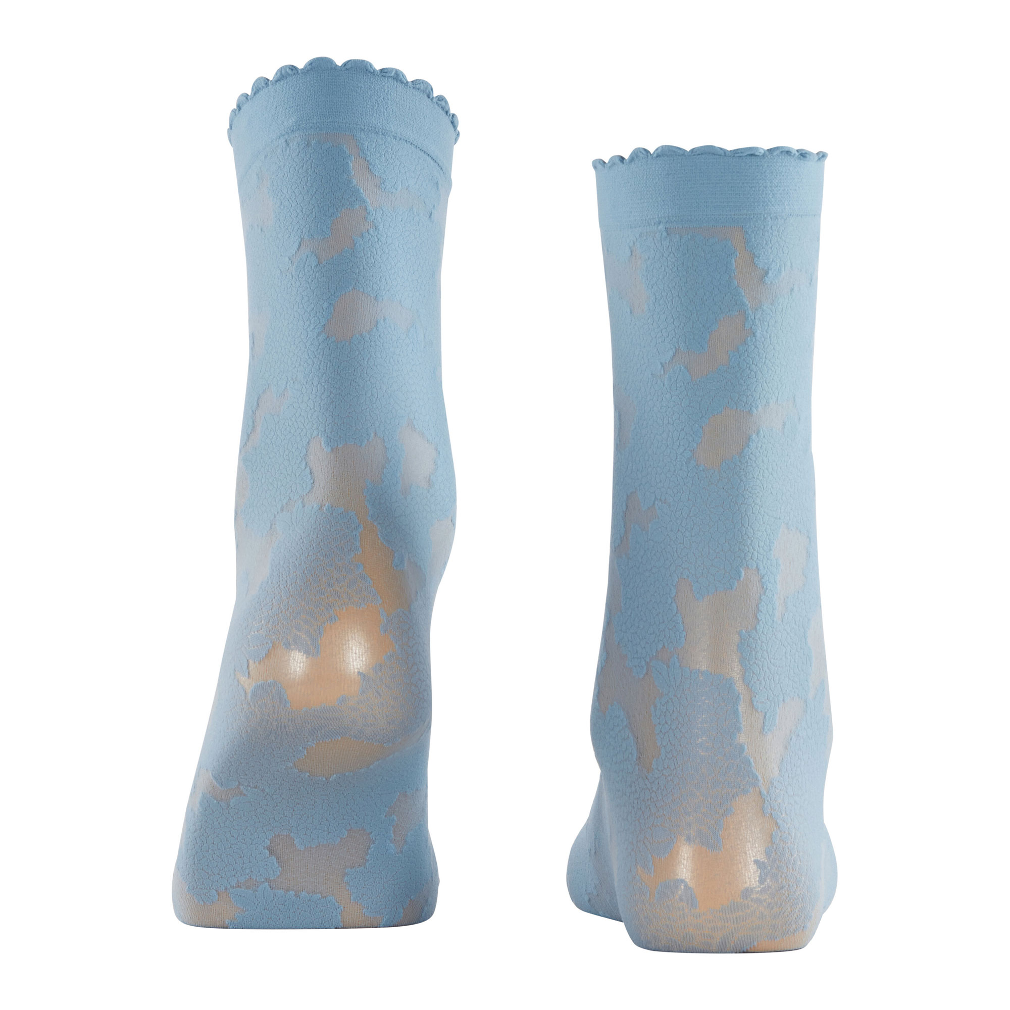 • 20 denier, floral all-over pattern inspired by the Riviera, scalloped edge cuffs, ankle style, 3D knitting technology
