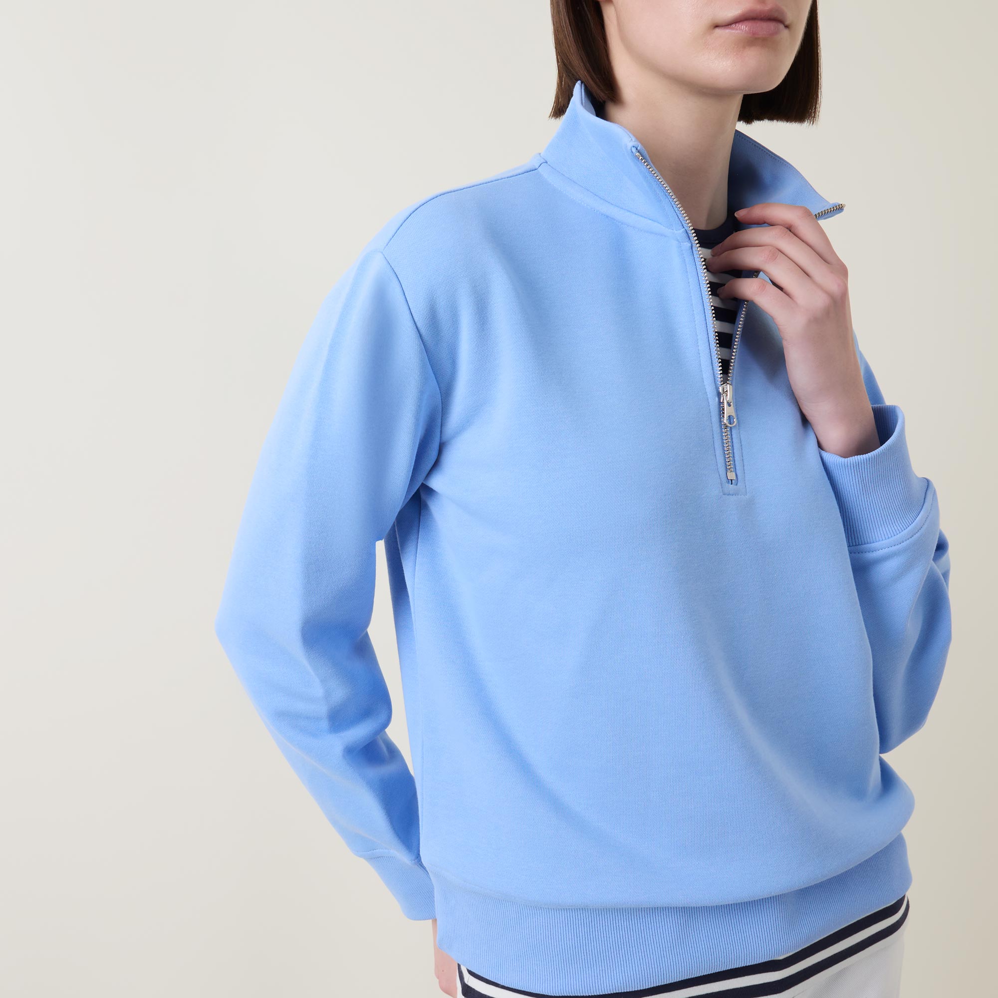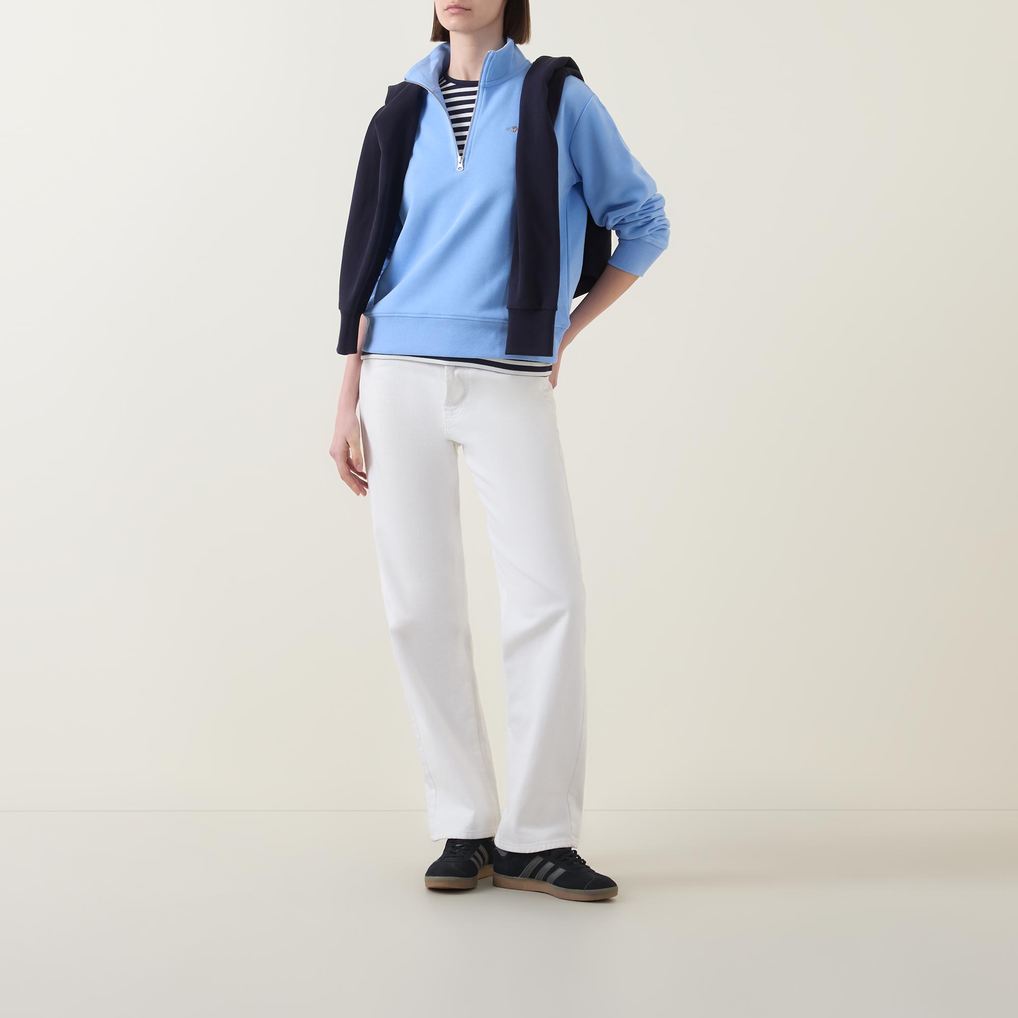 - Funnel neck, half zip placket, dropped shoulders, long sleeves, straight hem, ribbed trims, Shield logo embroidery on the chest, smooth finish