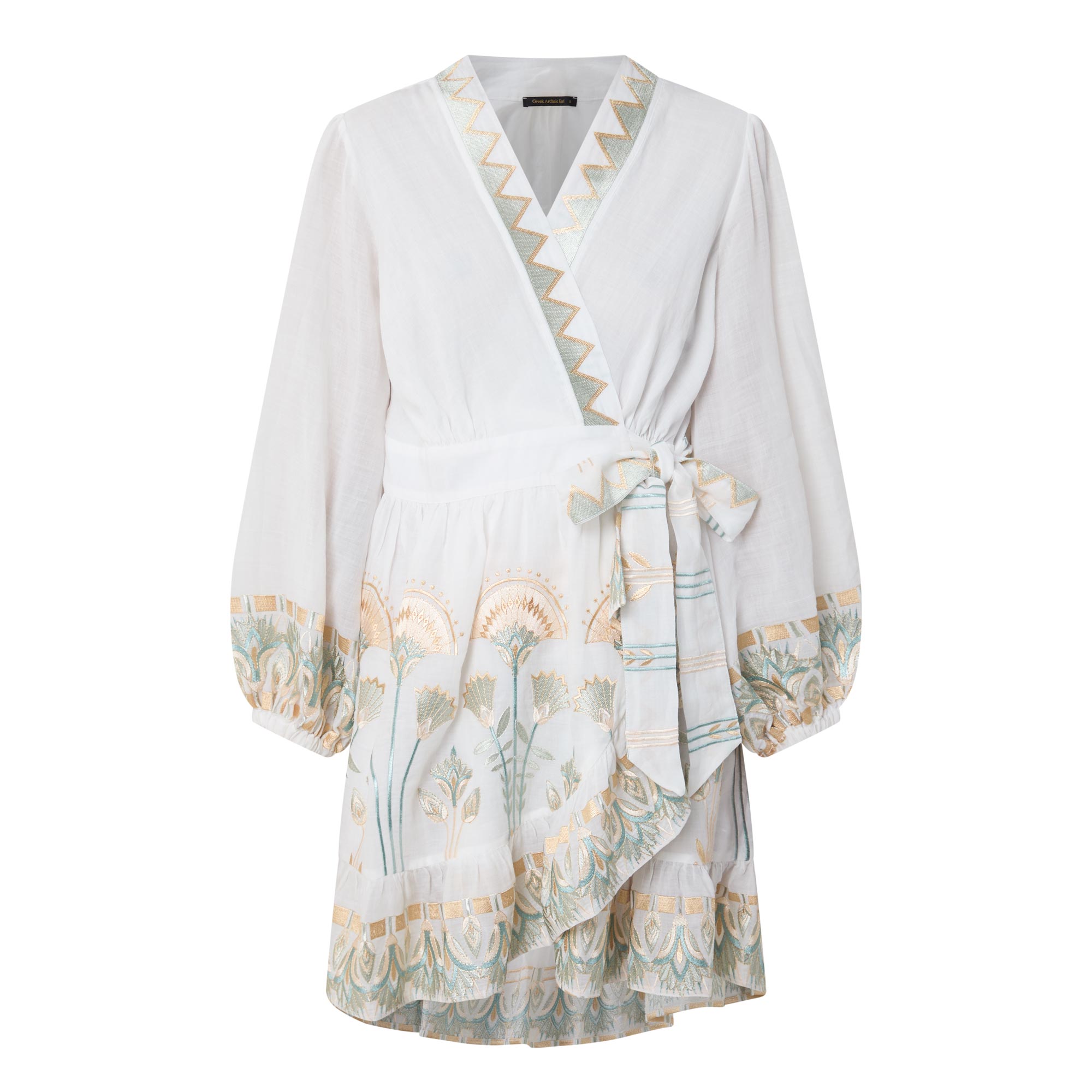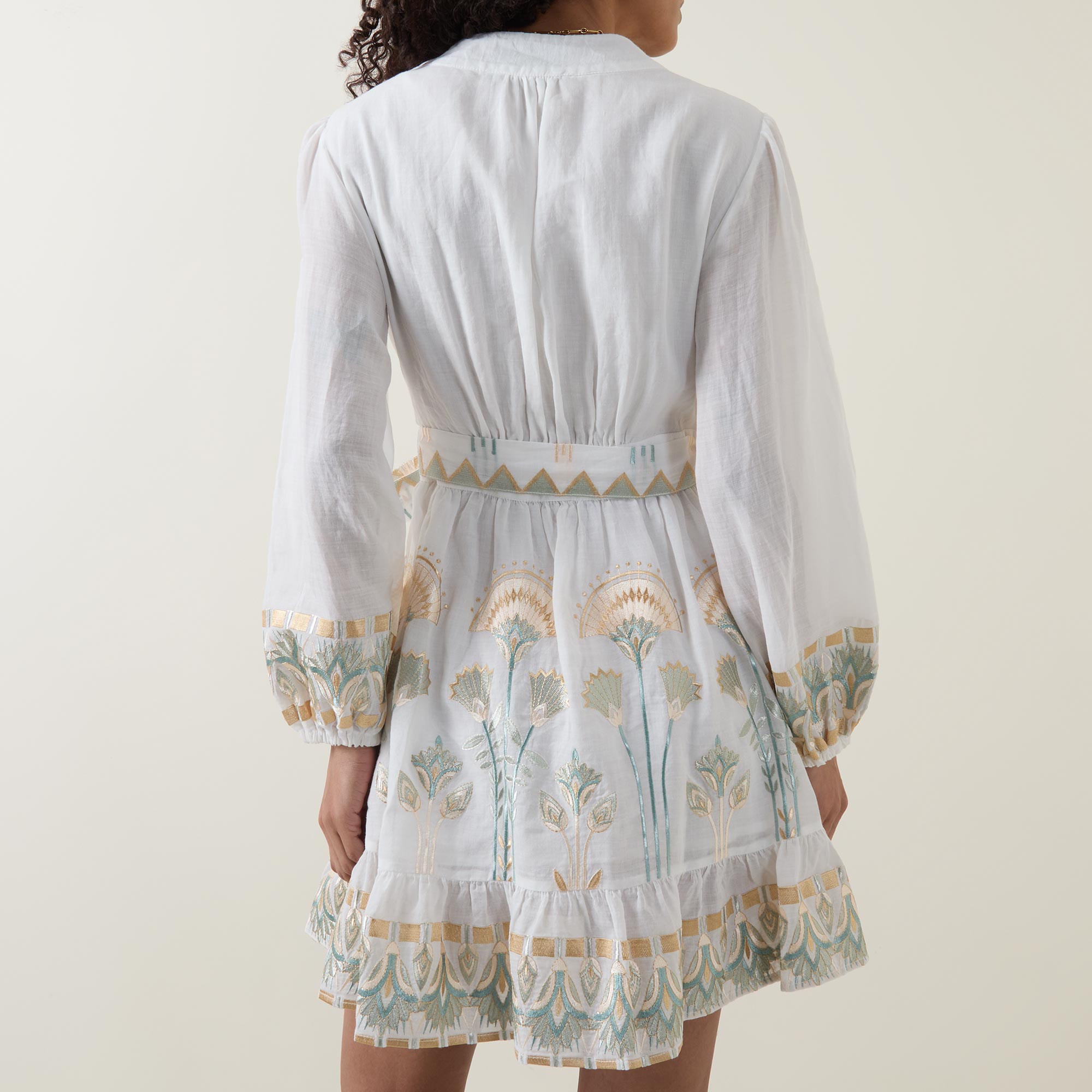 GREEK ARCHAIC KORI Papyrus Embroidered Belted Mini Dress