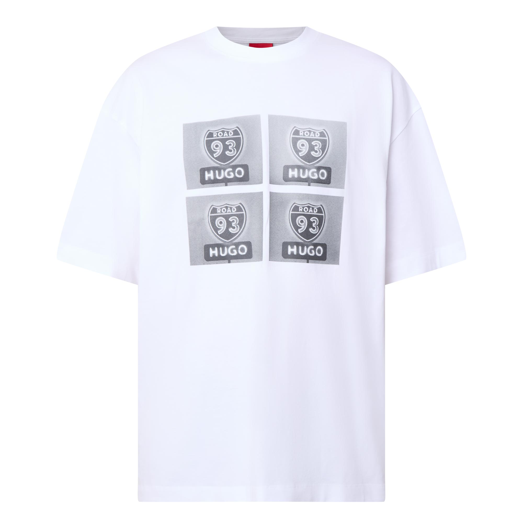 - Biker logo, round neck, short sleeves, straight hemline