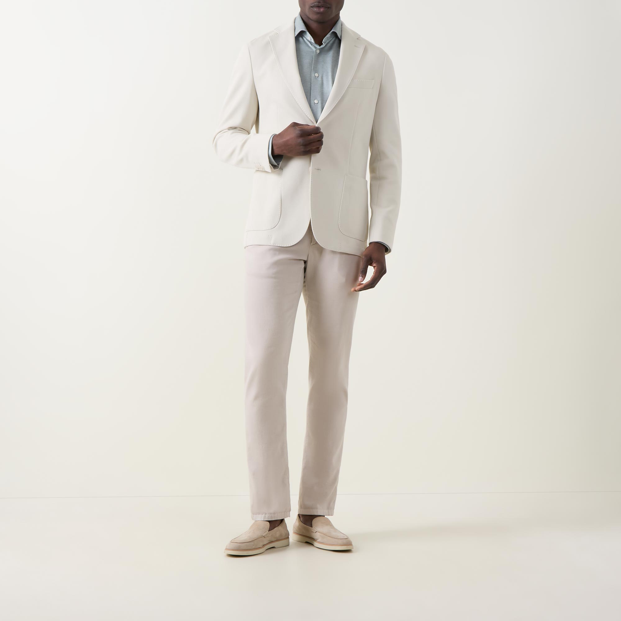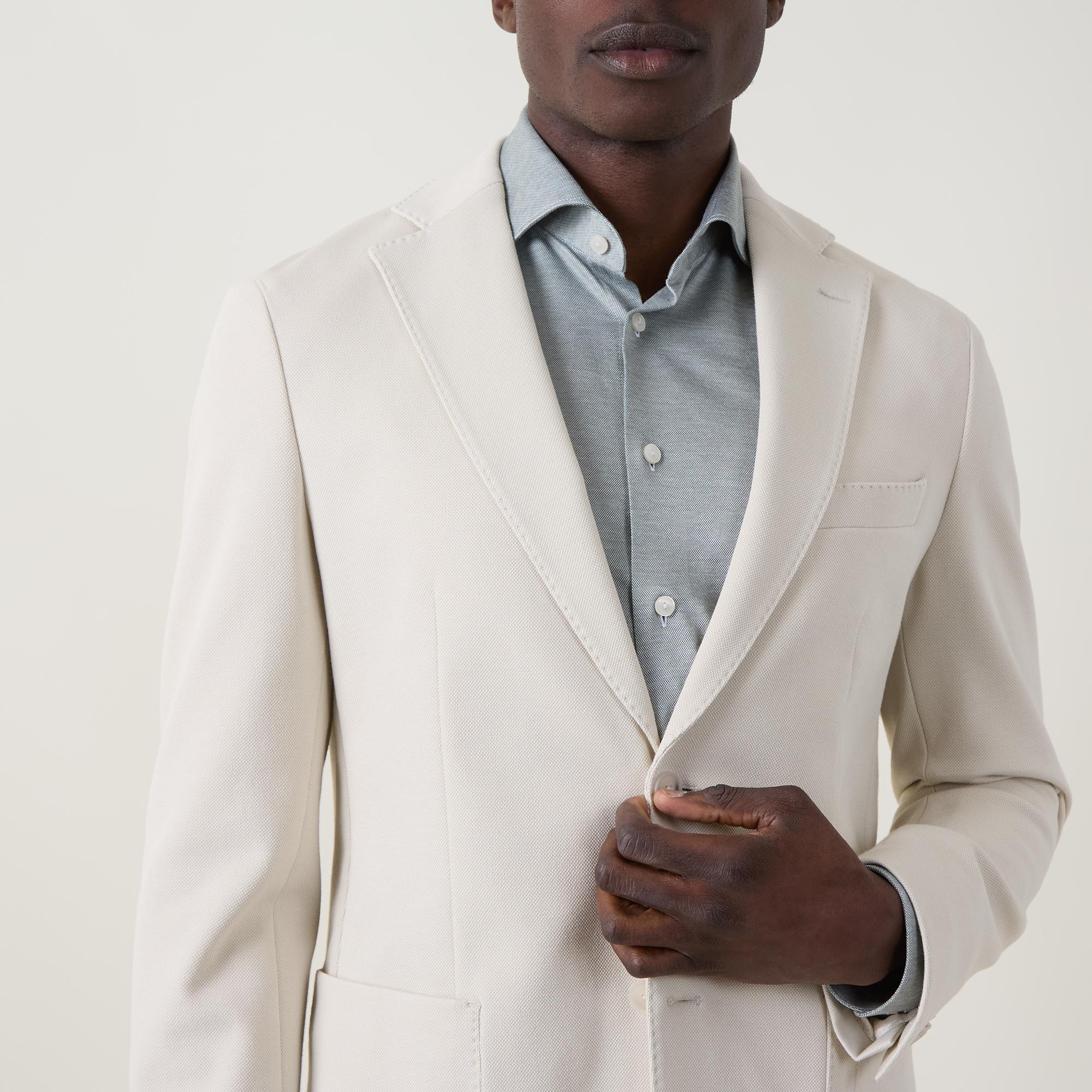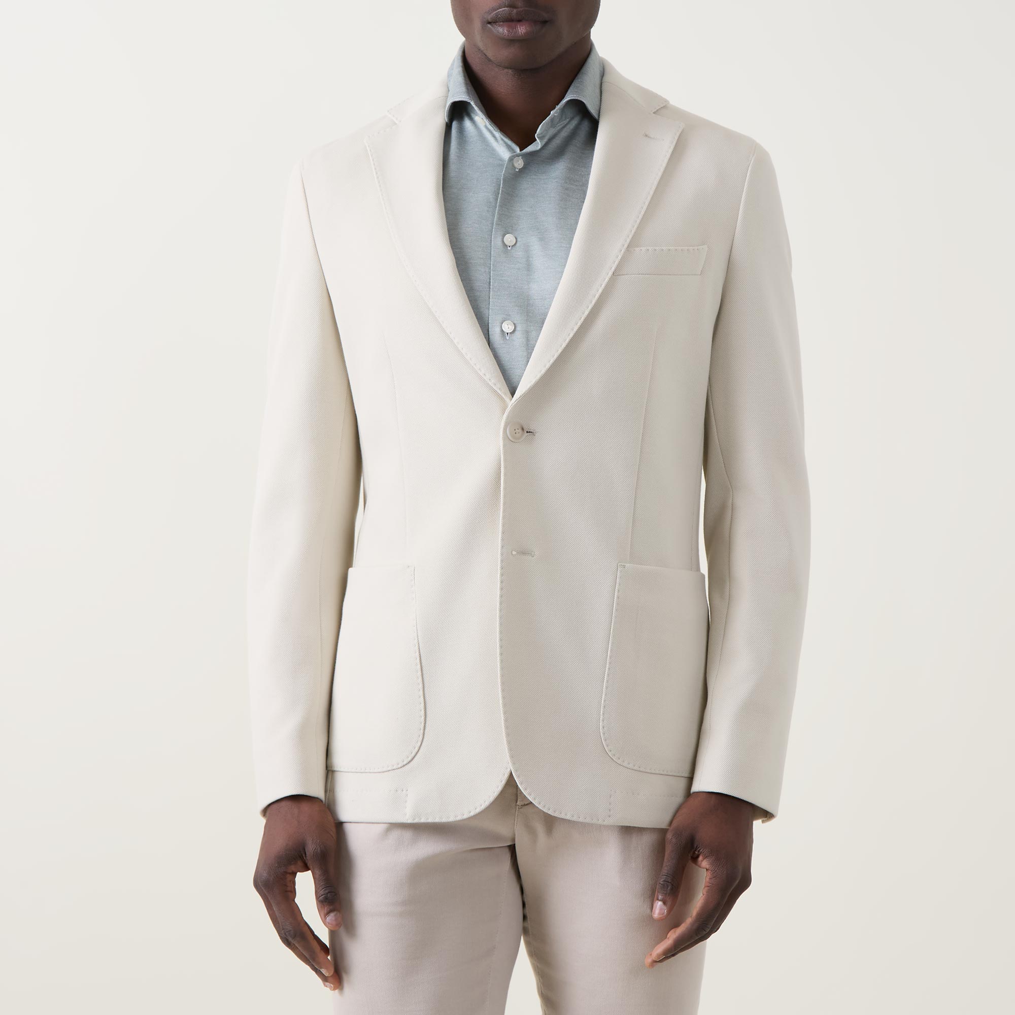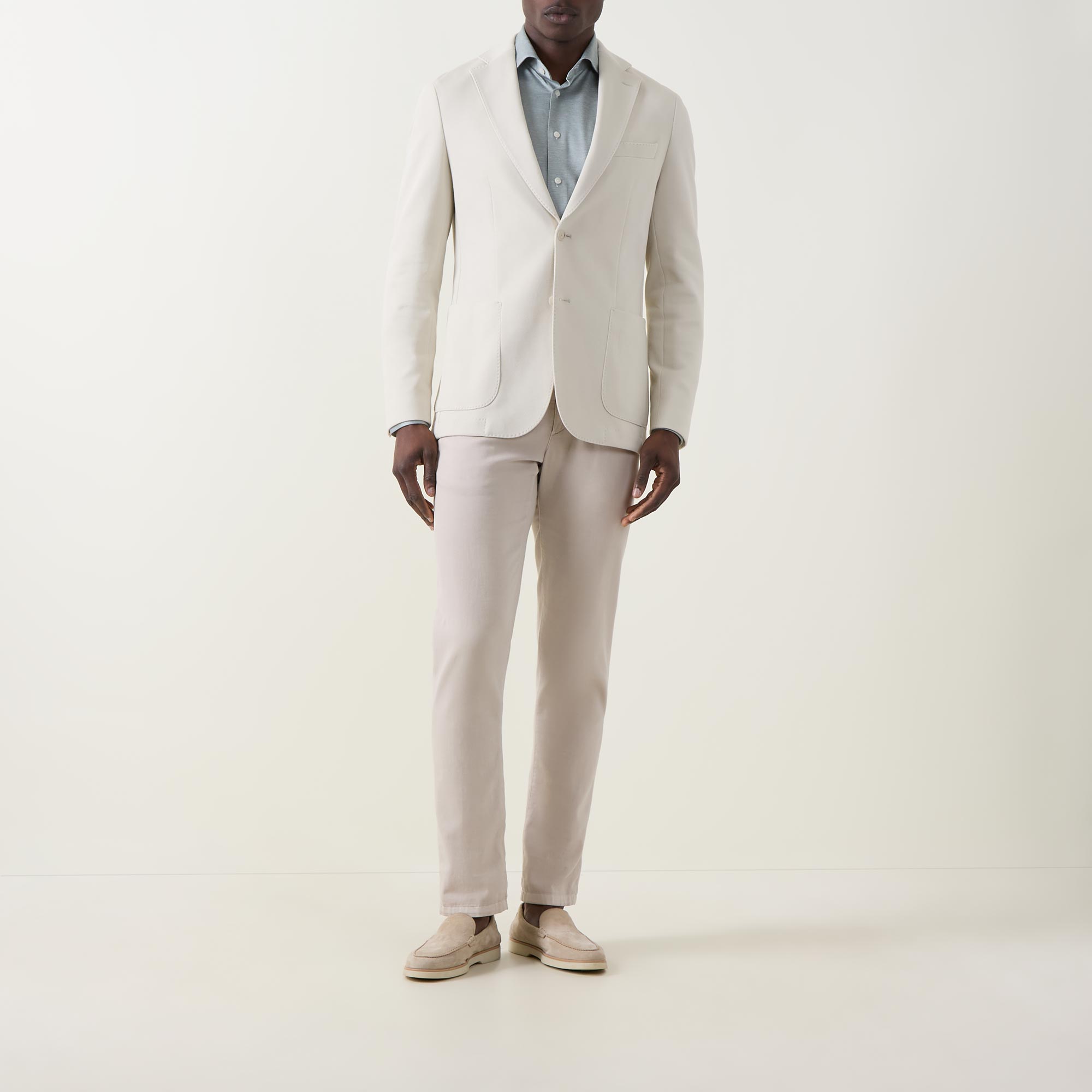 - Single-breasted, button fastening, peaked lapels, chest pocket, patch pockets, buttoned cuffs, double vented to the rear