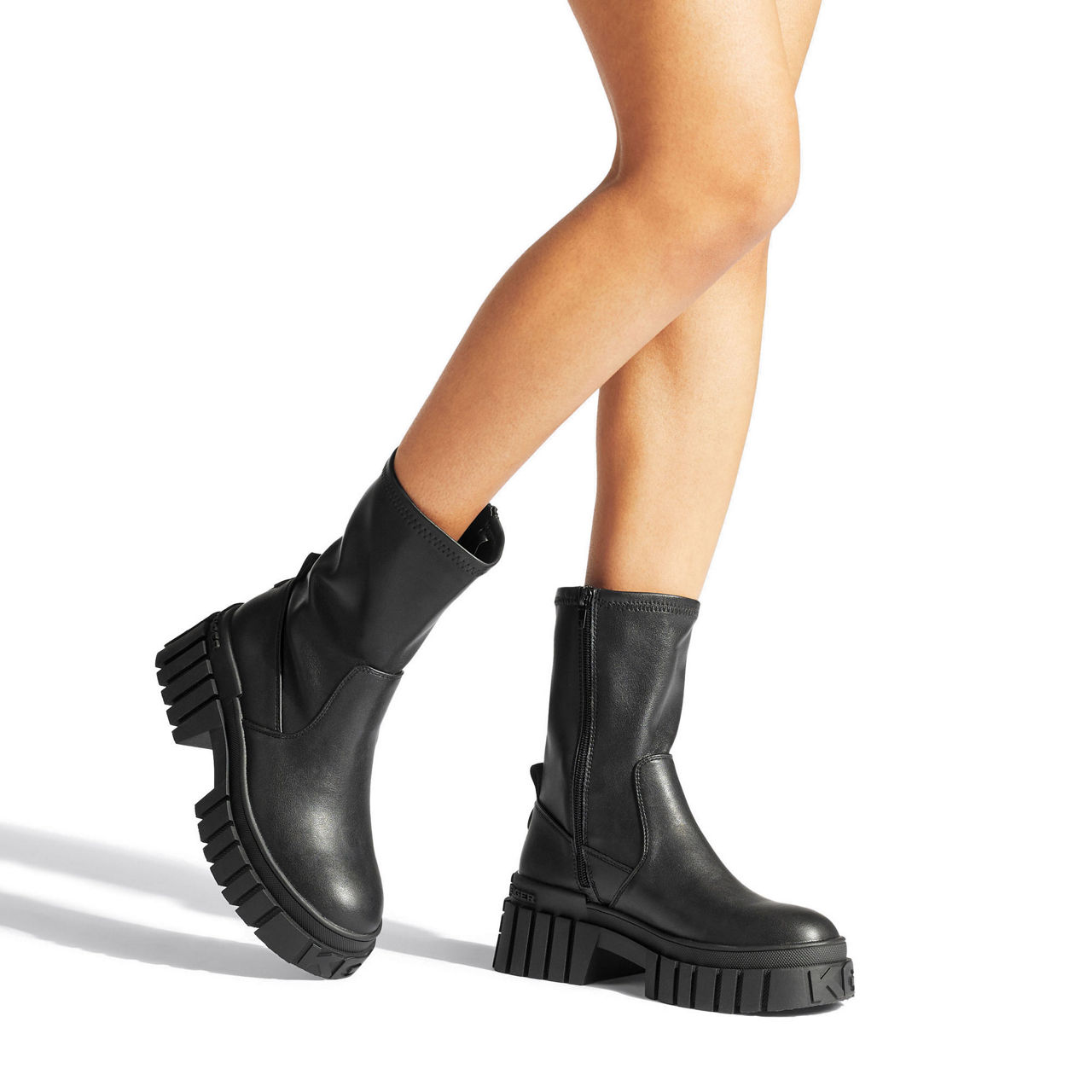 • Sock boot style, soft ankle for slip on ability, moulded sole, brand logo details, side zip fastening, chunky sole, round toe
