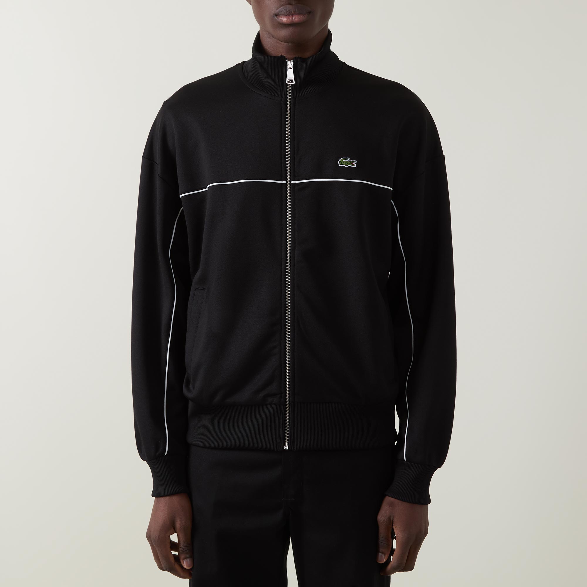 LACOSTE Croc Logo Trim Accent Zipped Sweatshirt