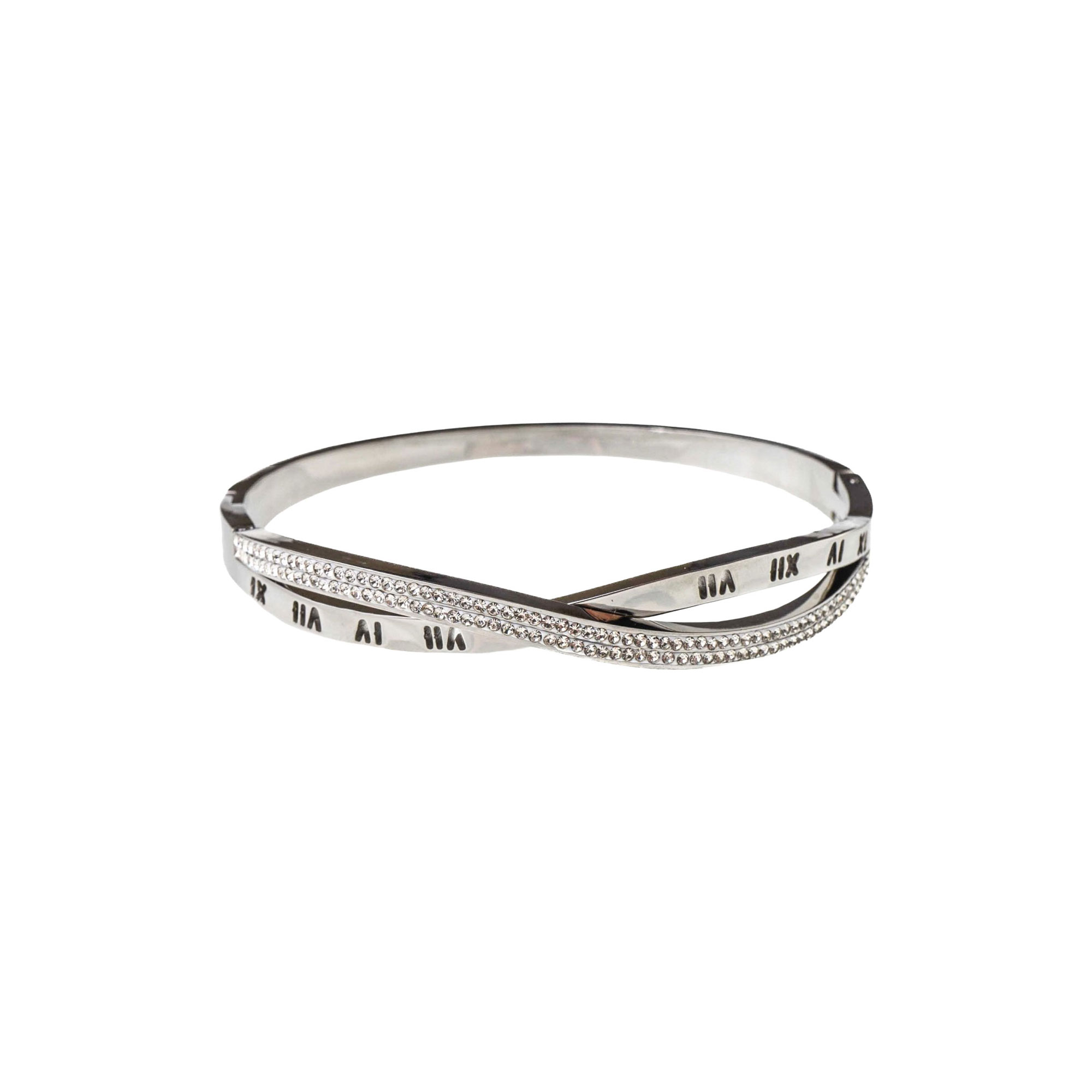 - Durable, bangle design, cubic zirconia stones, roman numeral detailing, hypoallergenic, tarnish-resistant, water-resistant