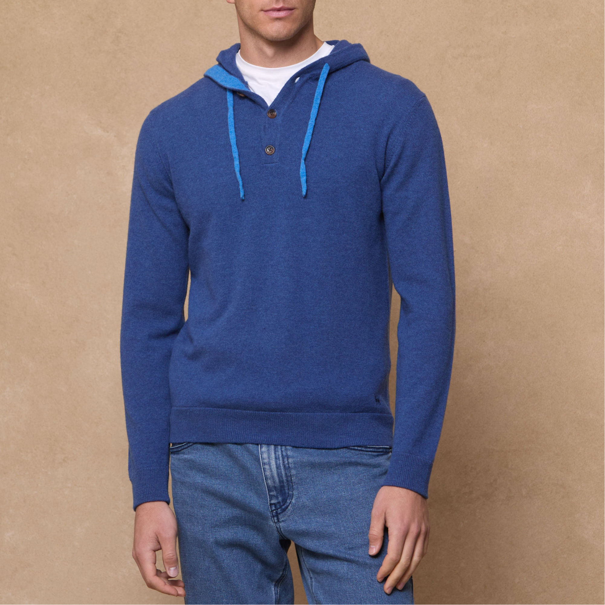 - Plain hoodie, plain knit, button neck, contrast detailing on placard, contrast Wolfhound
