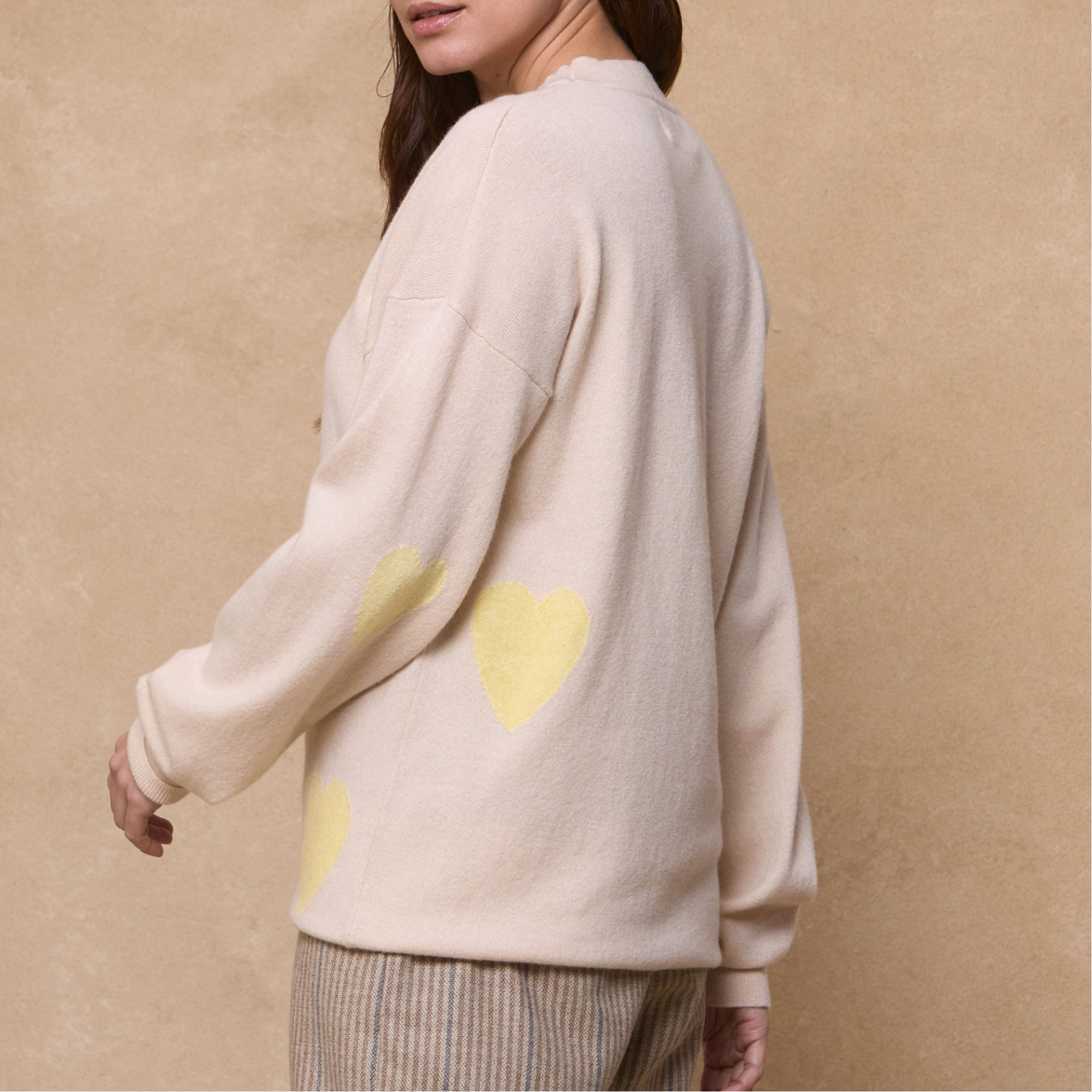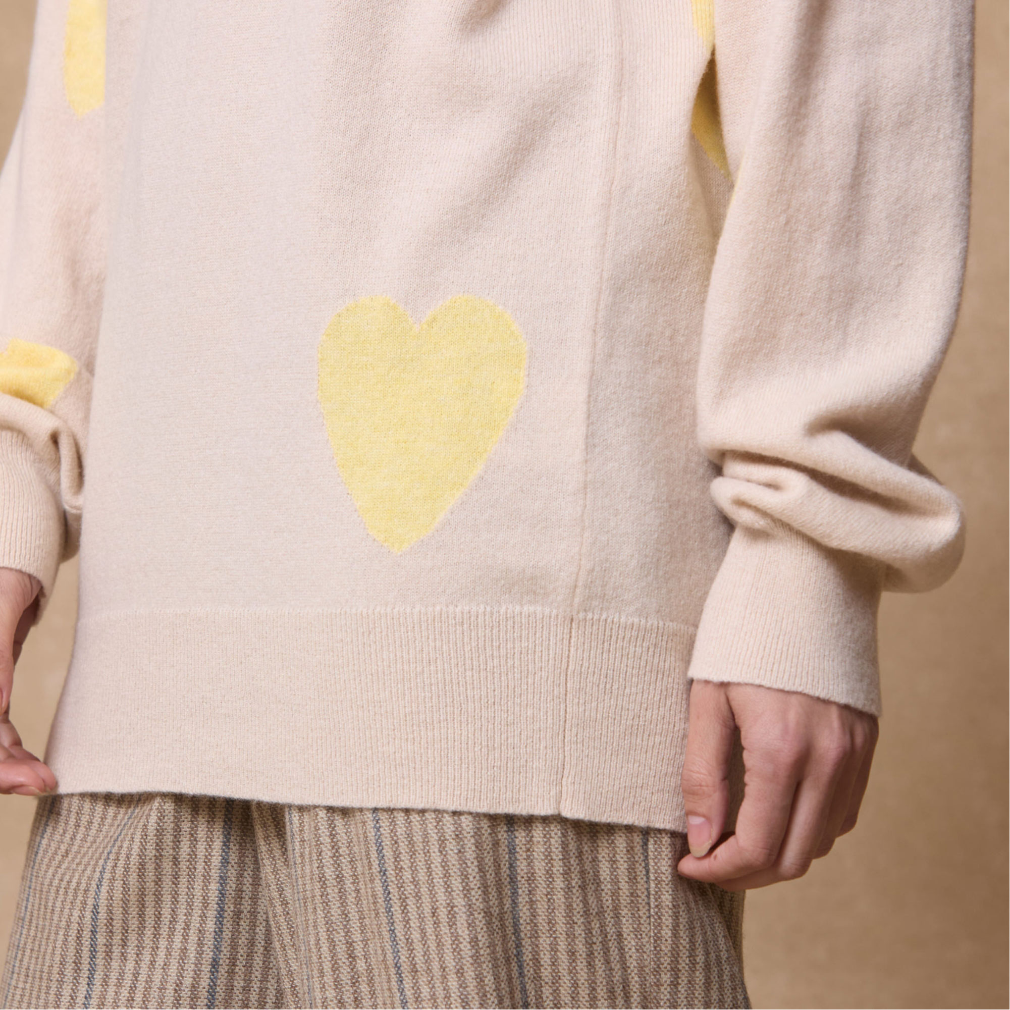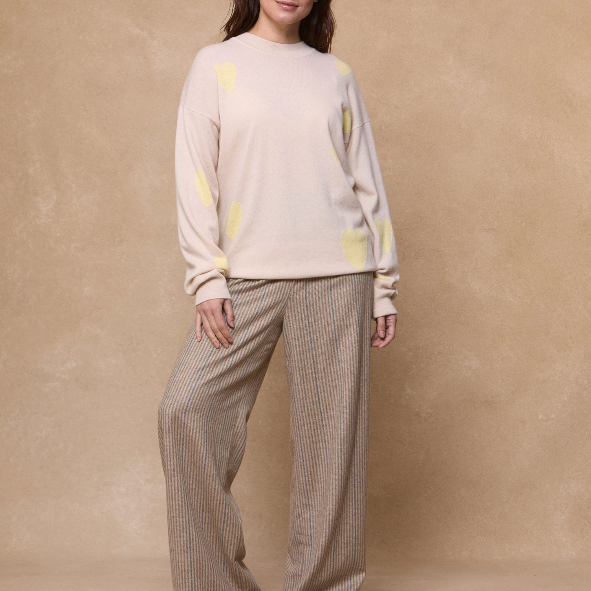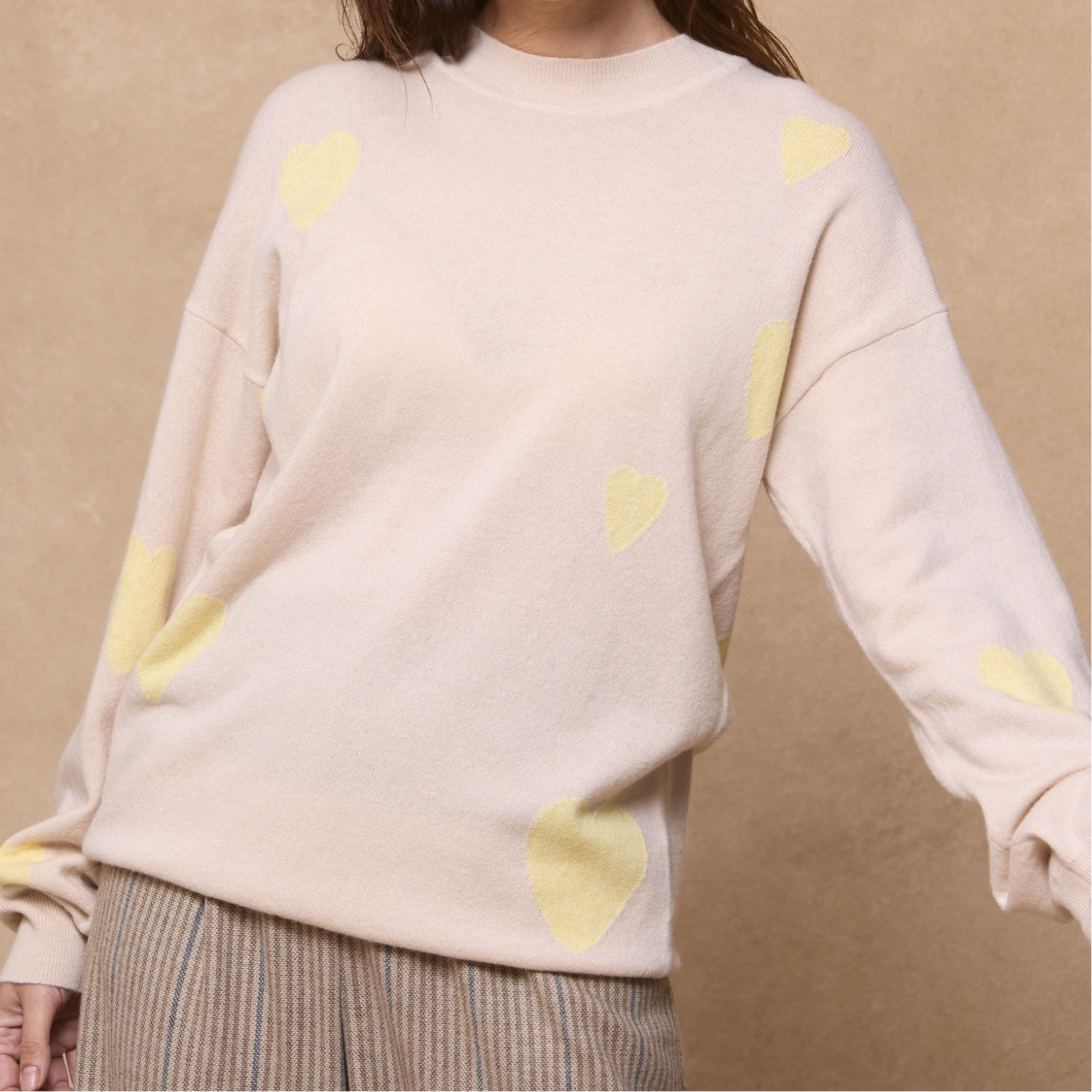 - Crew neck, scattered hearts, plain Knit