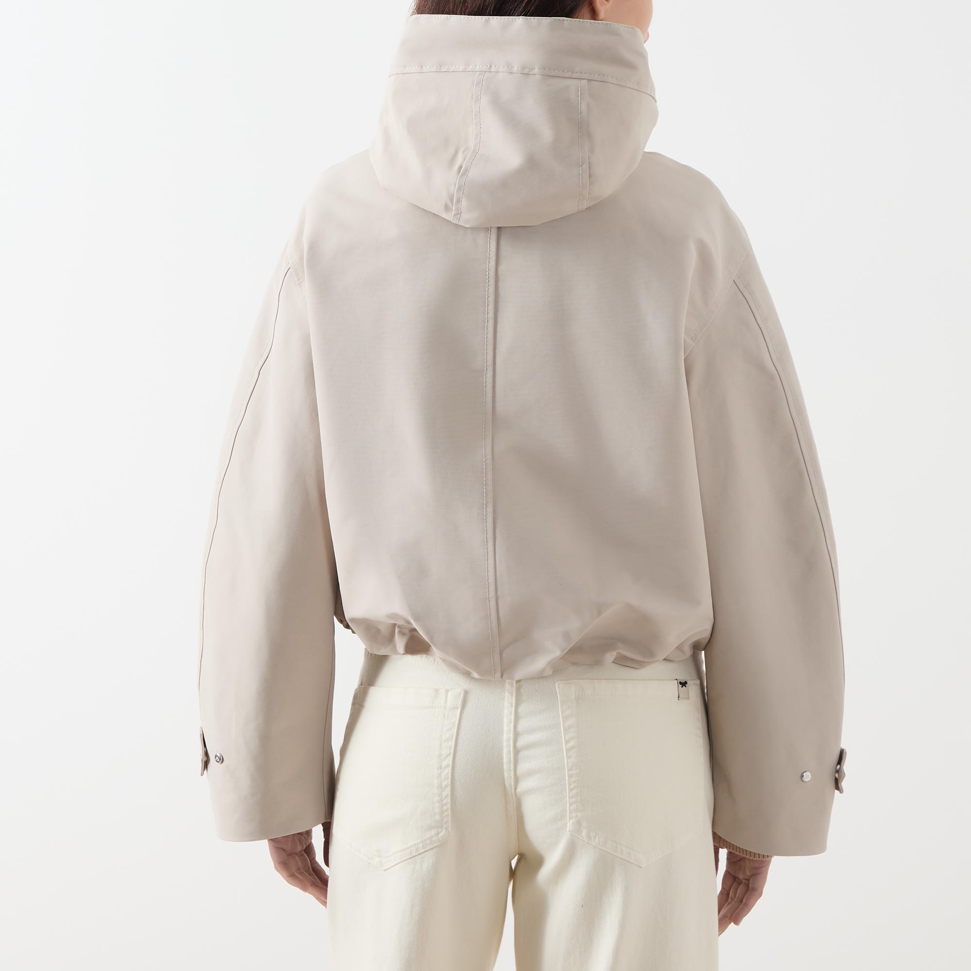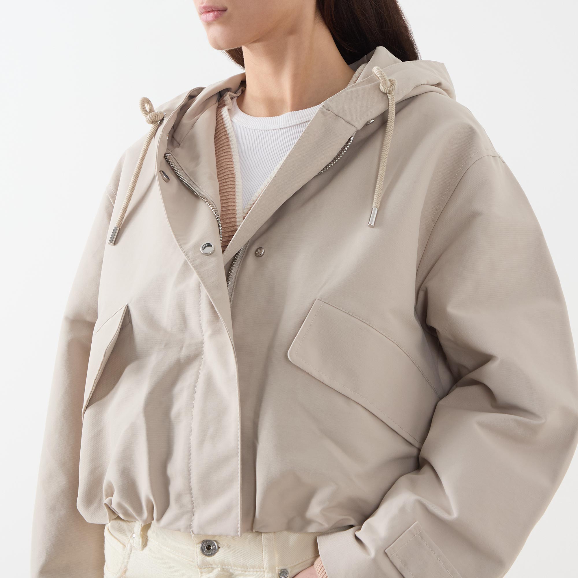 - Hood with adjustable fit, snap button and concealed zip fastening, tab adjustable cuffs, side entry pockets, drawstring adjustable hemline, fully lined