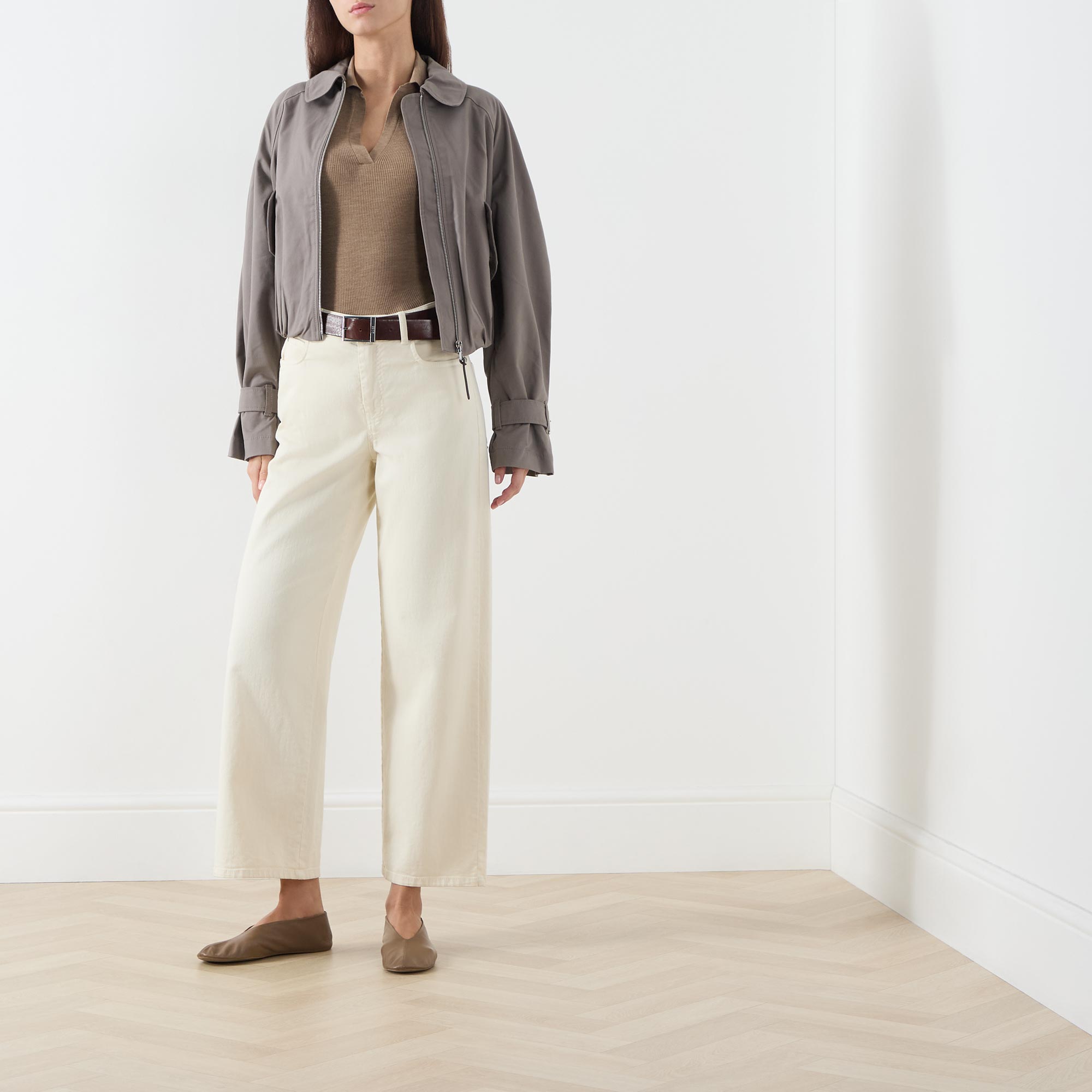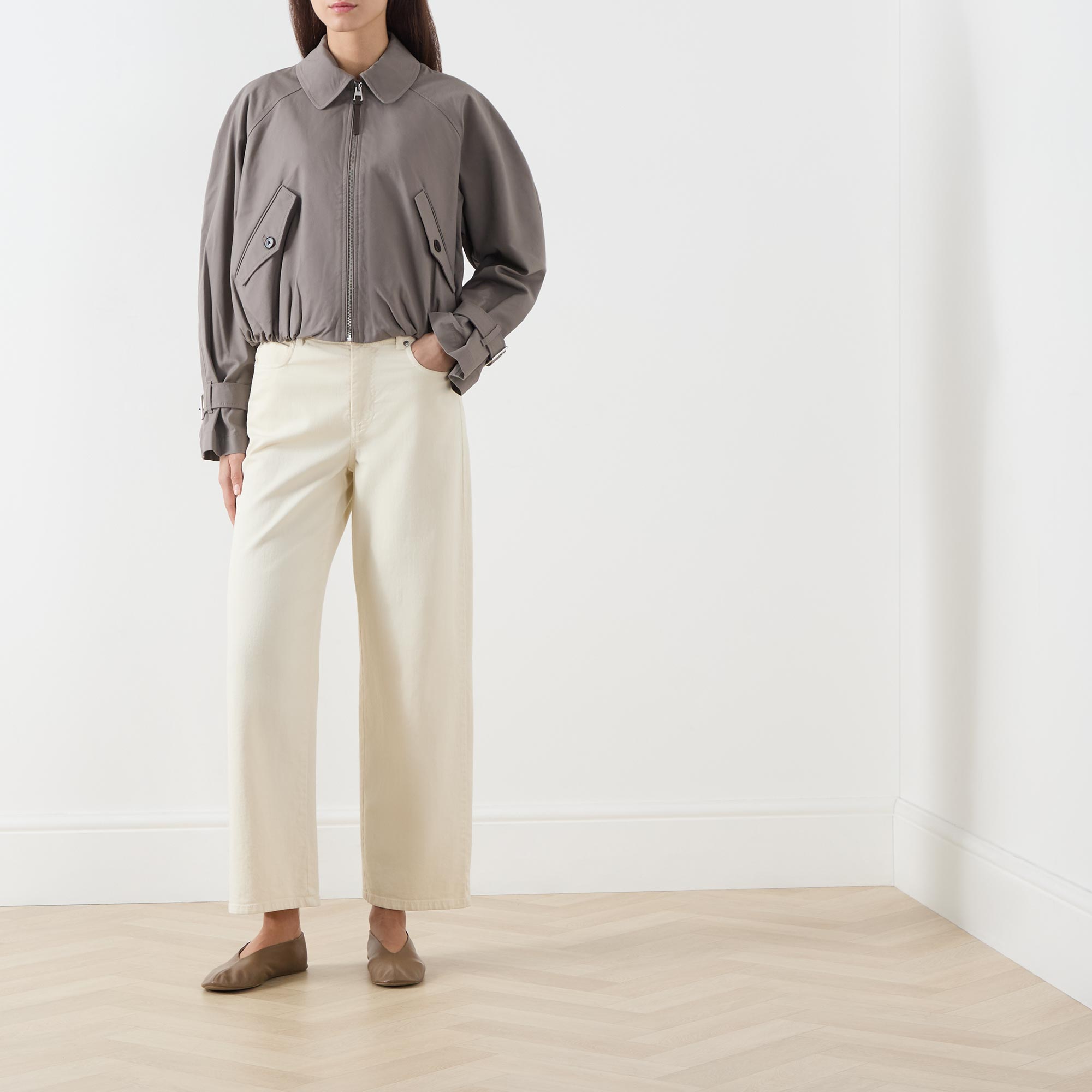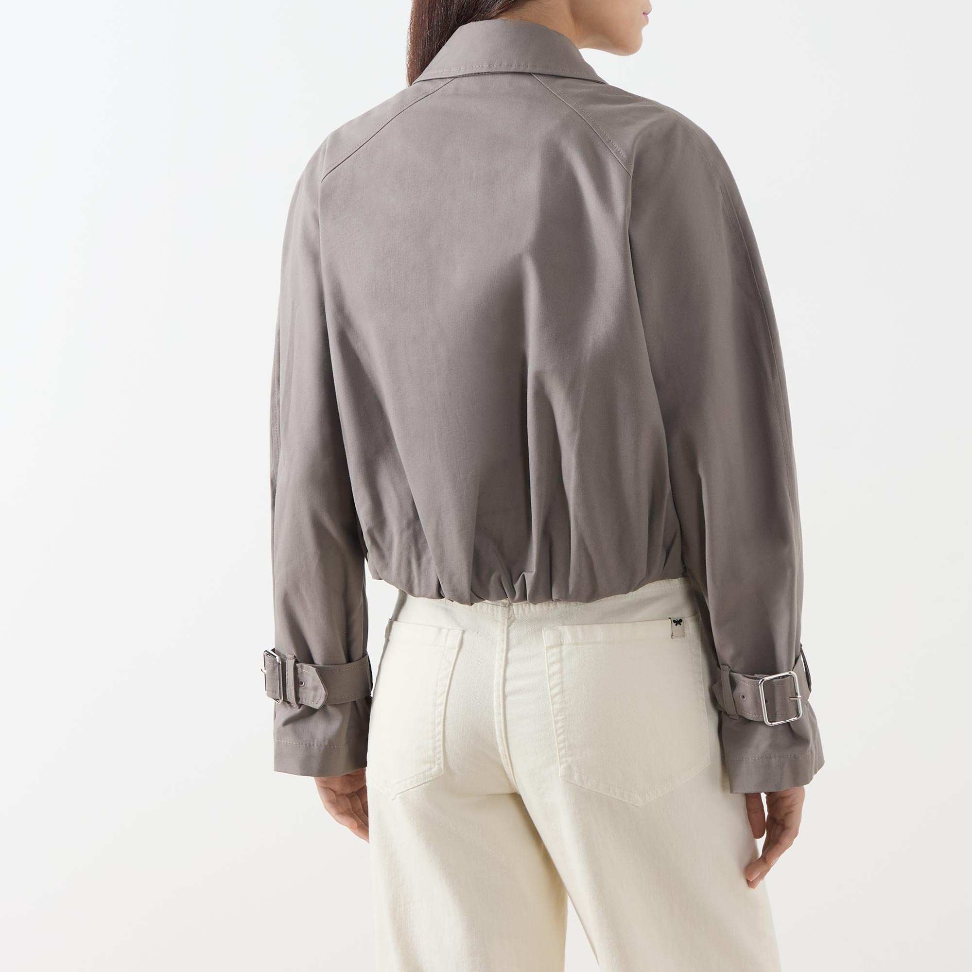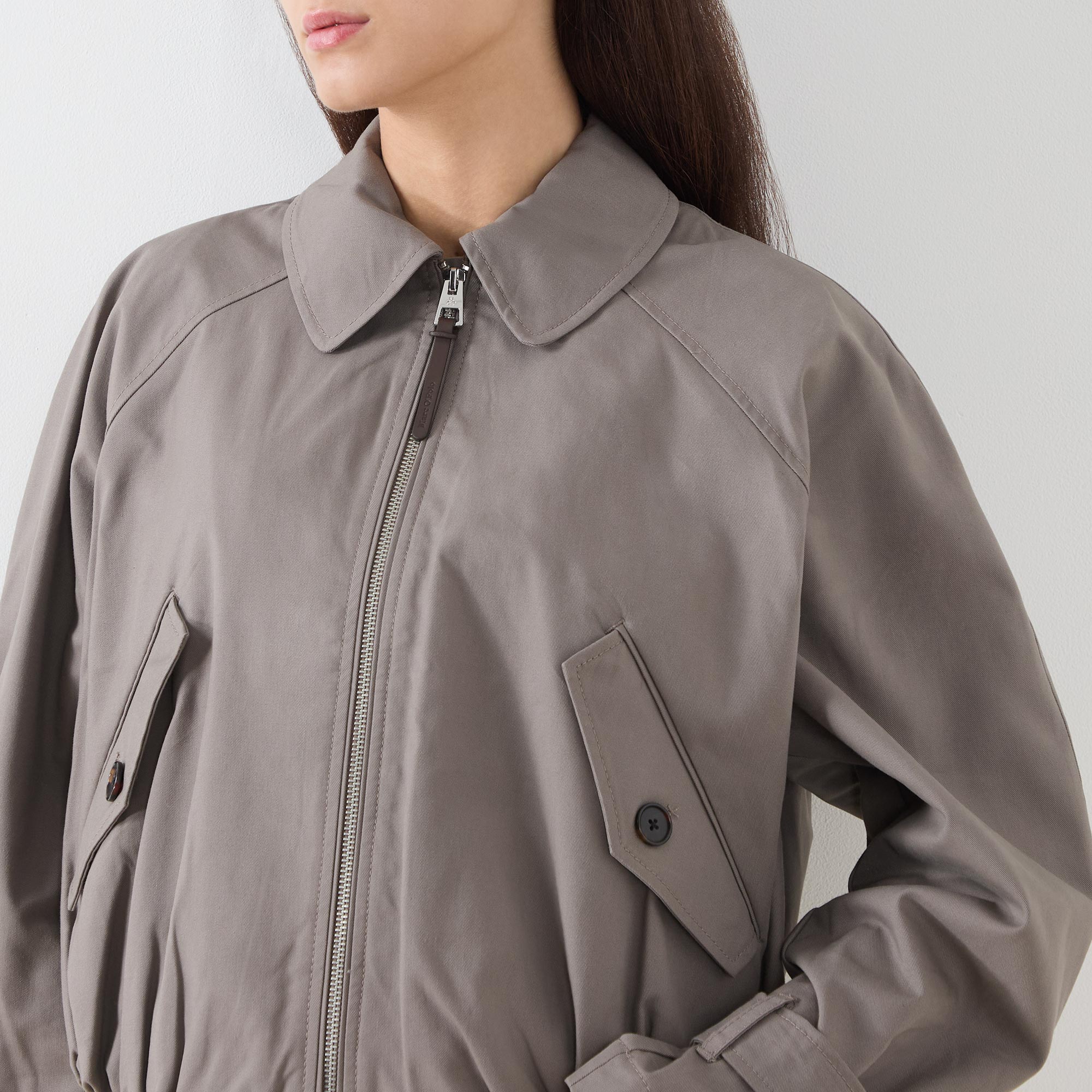 - Turn-down collar, raglan sleeves, tab adjustable cuffs, side entry pockets, zip fastening with leather pendant, elasticated hem, fully lined