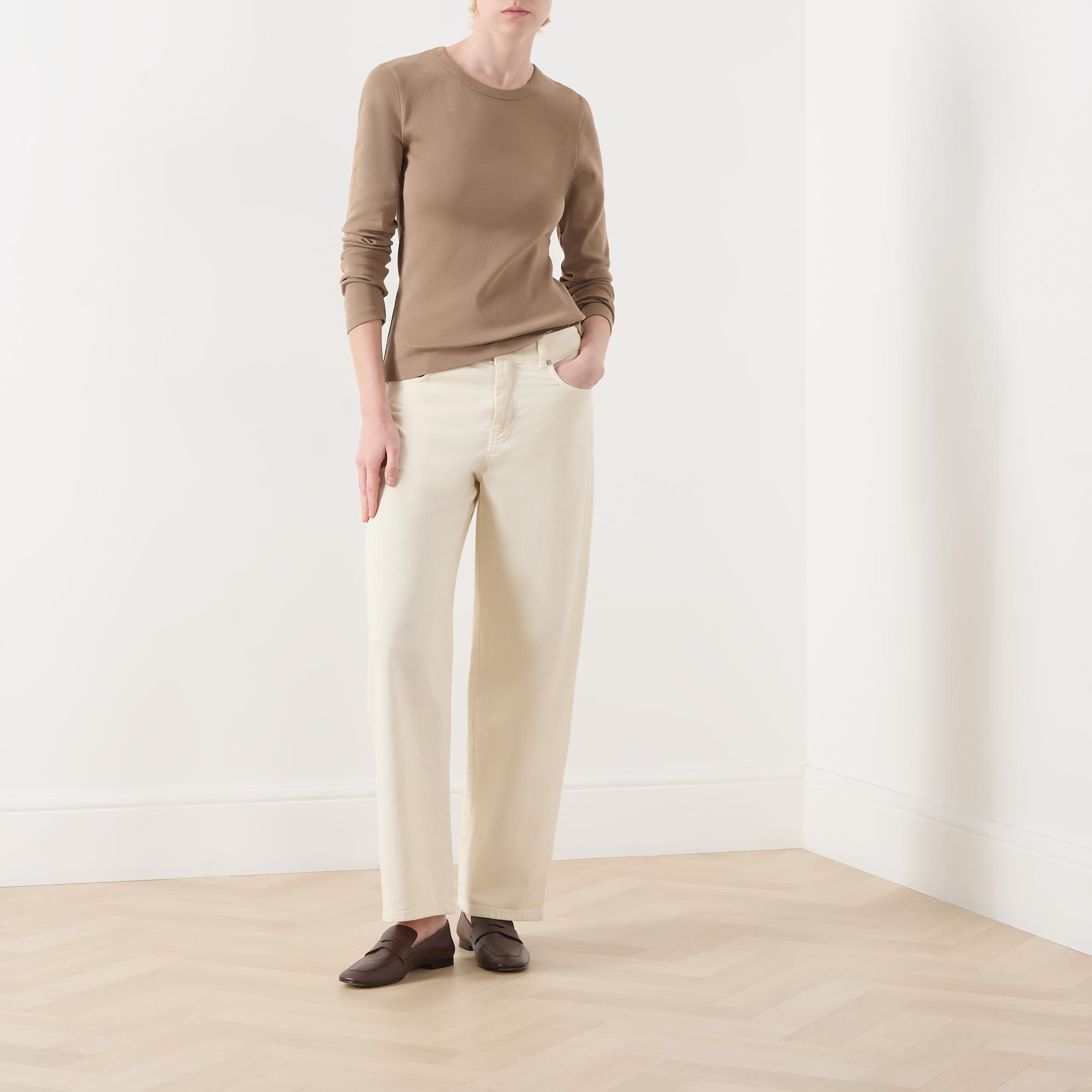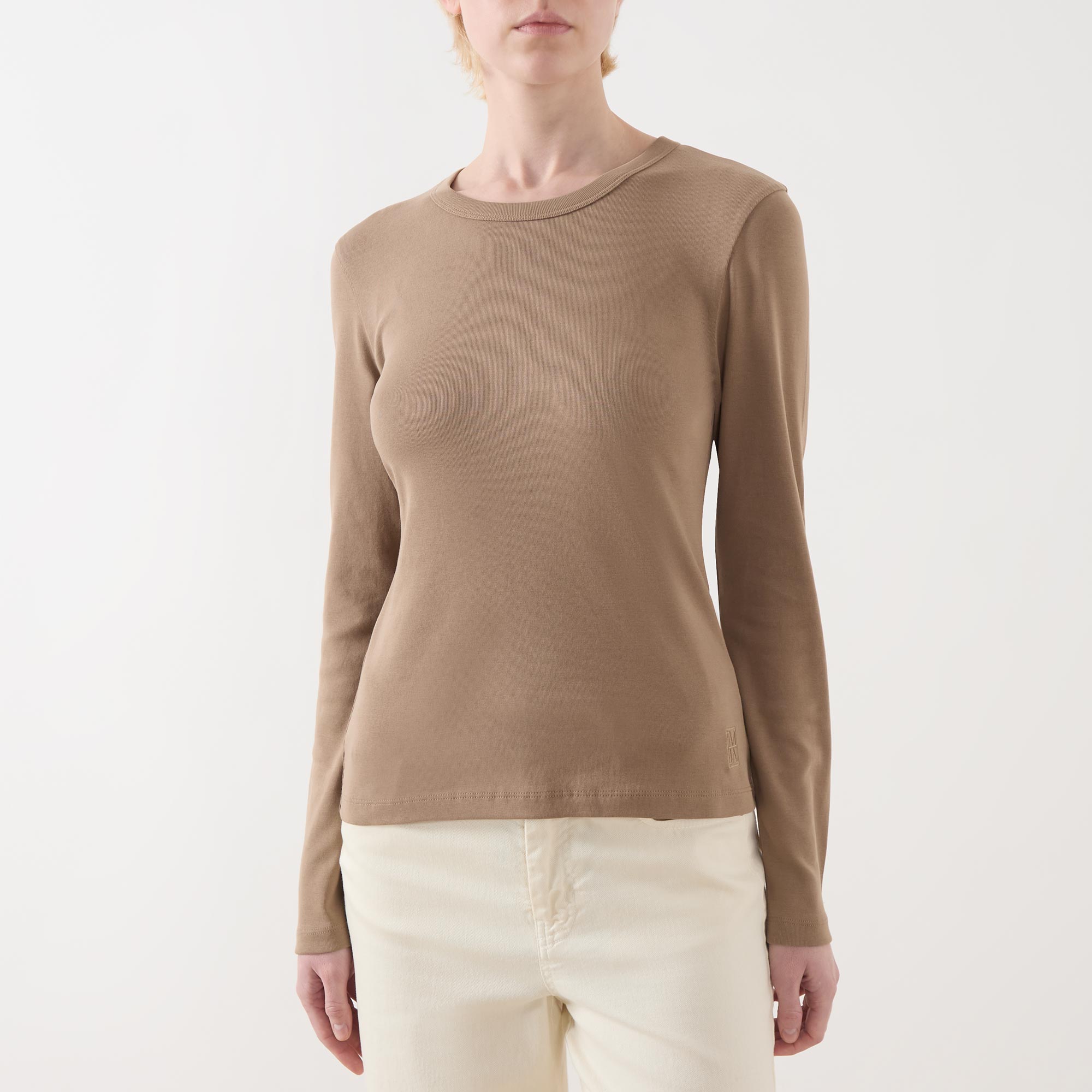 - Round neckline, long sleeves, logo detail, straight hemline, tonal stitching, smooth fabric